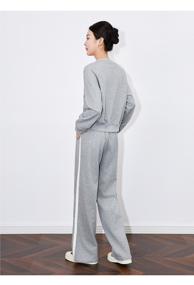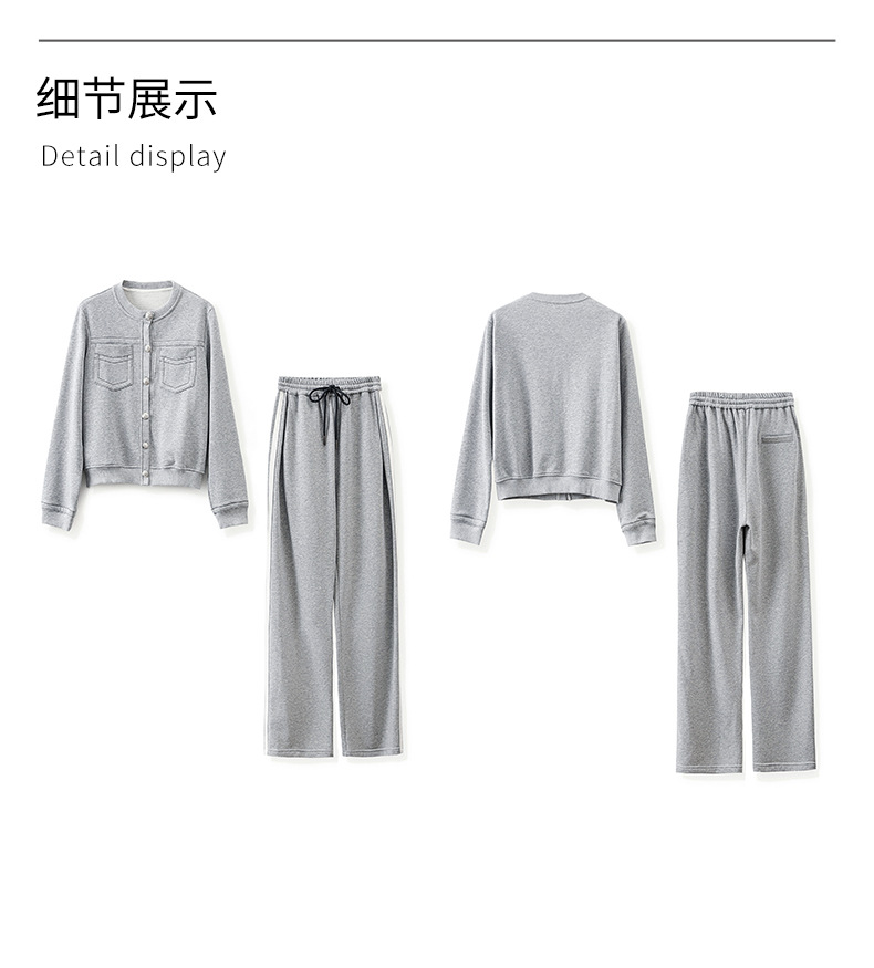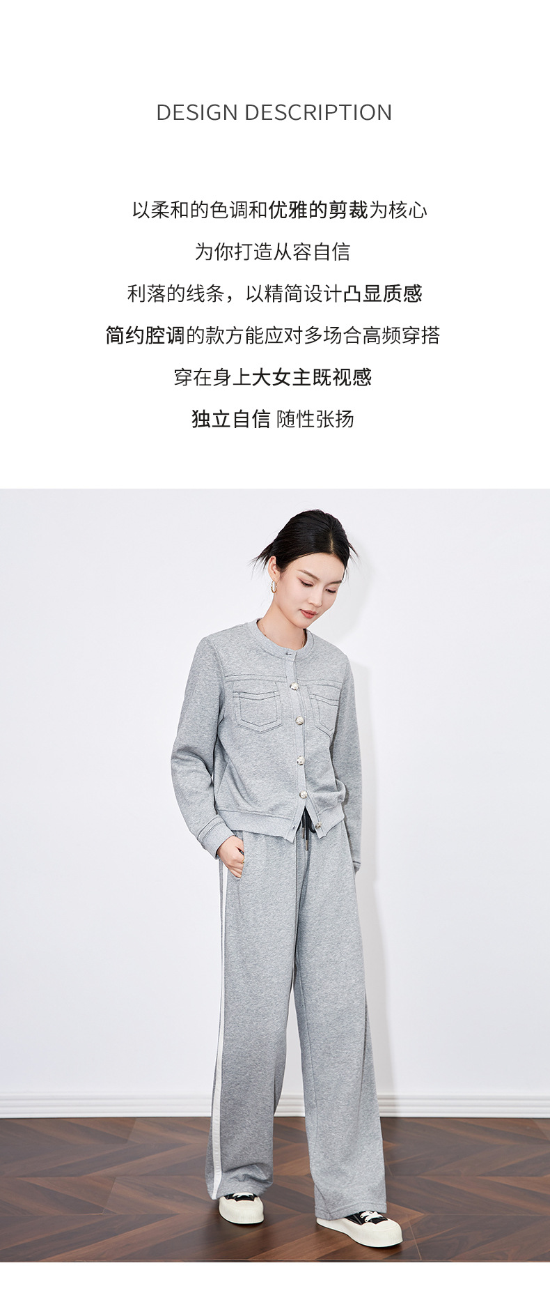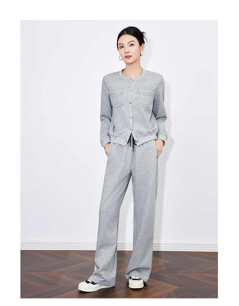 【高货wl】全新升级【铂金会员330/天猫439/差价109】(55008) 洛诗琳秋冬休闲时尚明线双口袋短款外套时髦休闲裤两件套