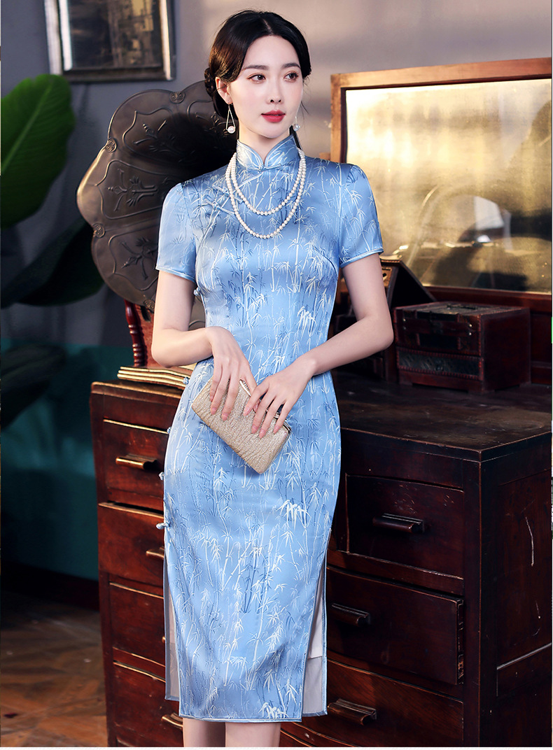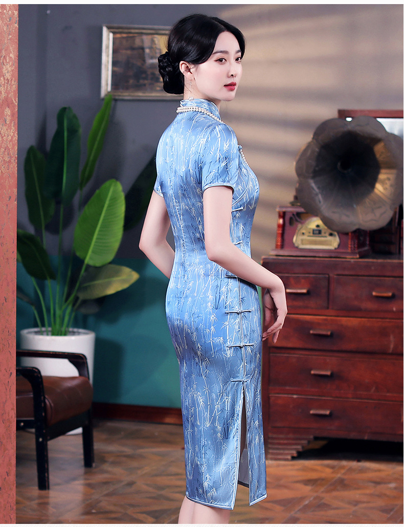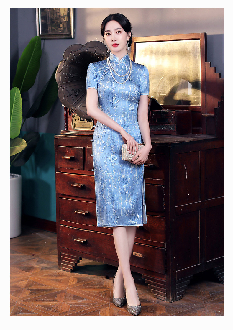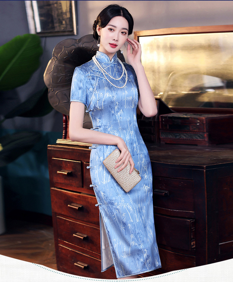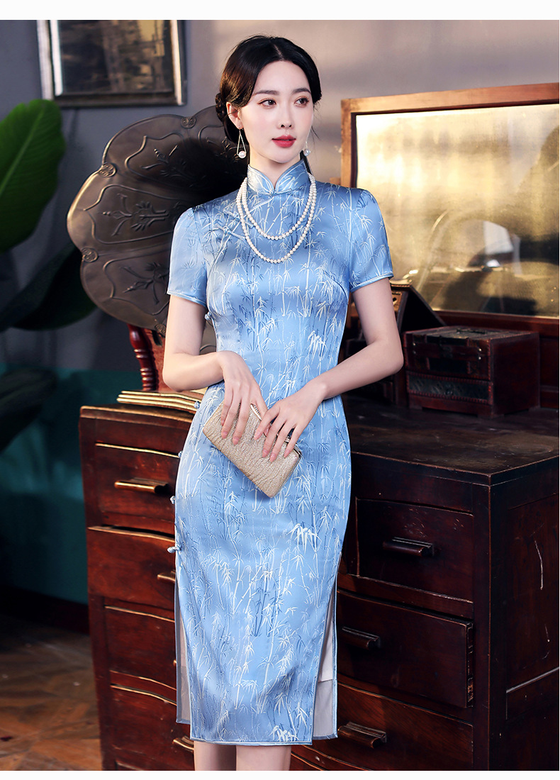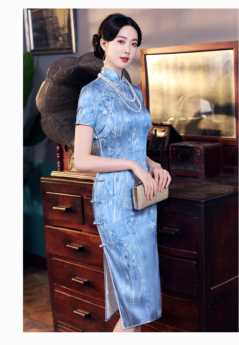 WX-2210新款改良版年轻款复古旗袍礼服连衣裙