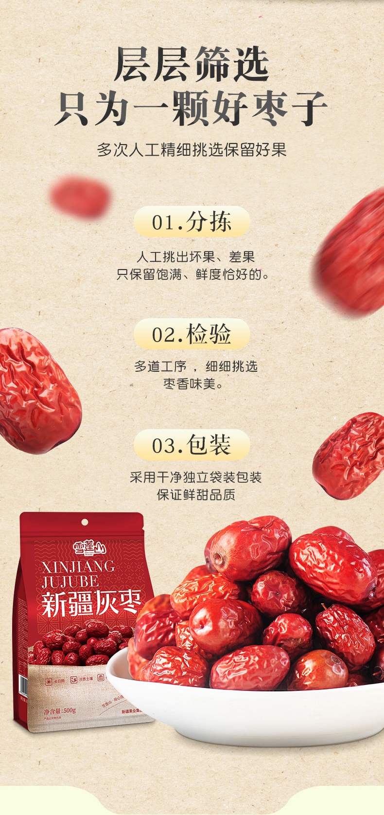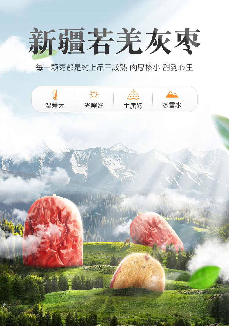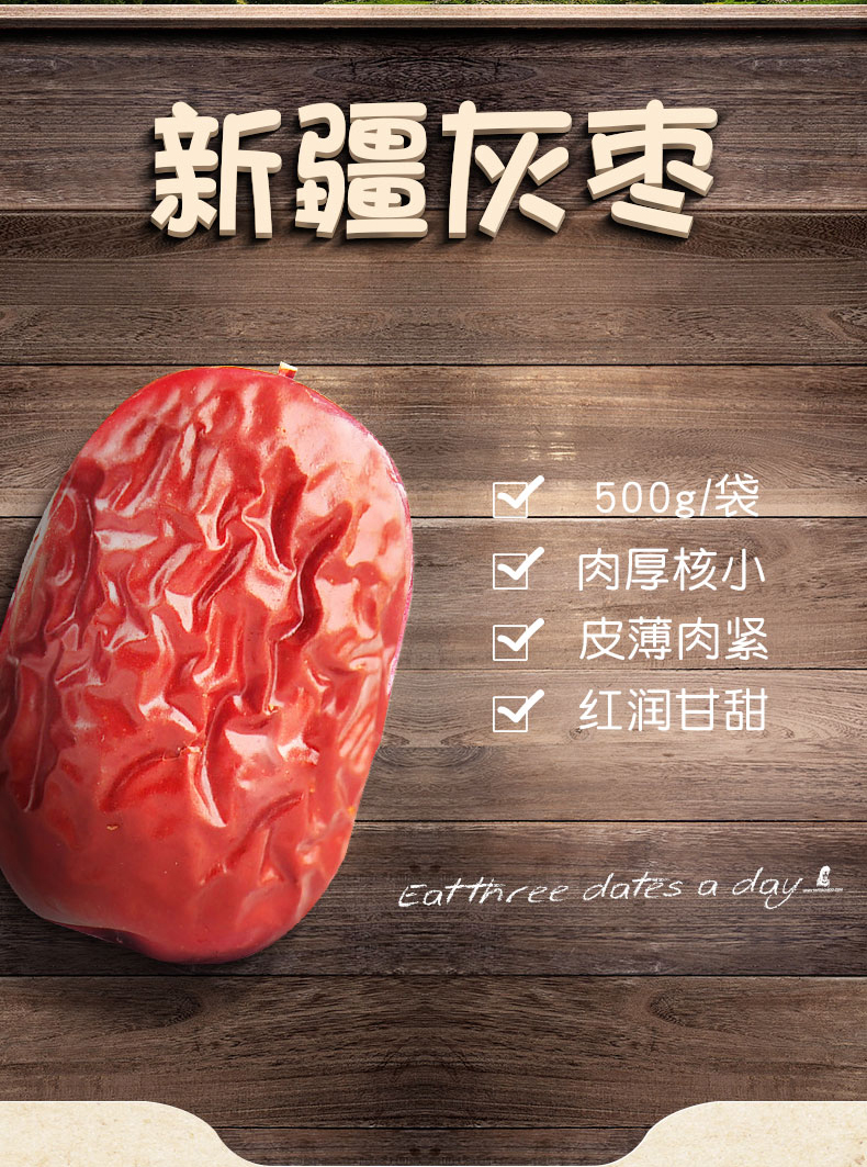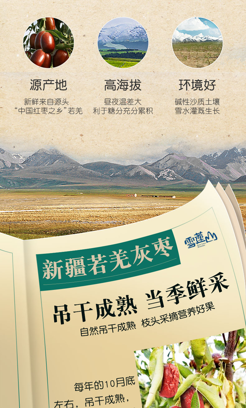 雪莲山·新疆灰枣·500g*2(一级枣) 肉厚核小日 皮薄肉紧 红润甘甜