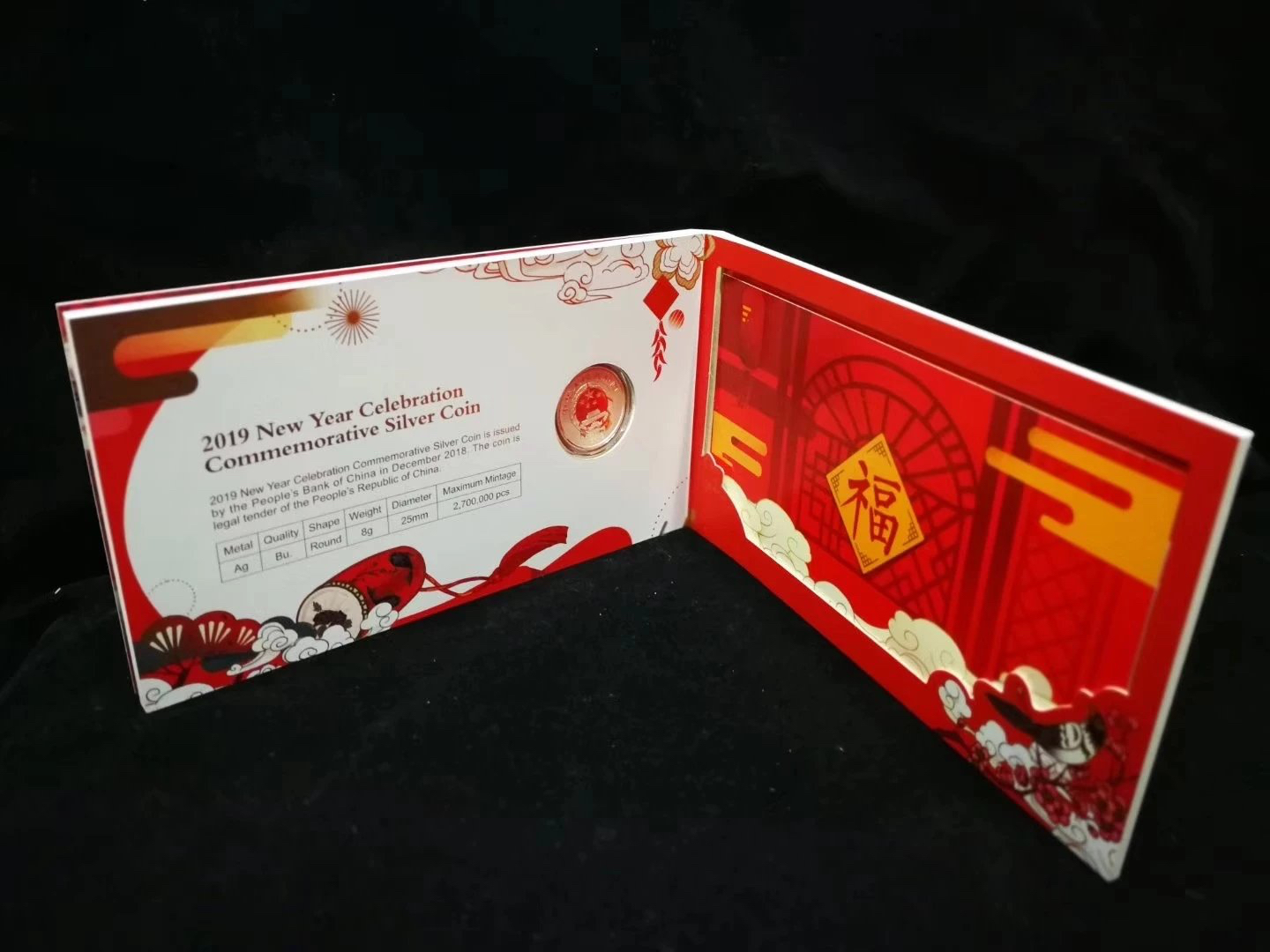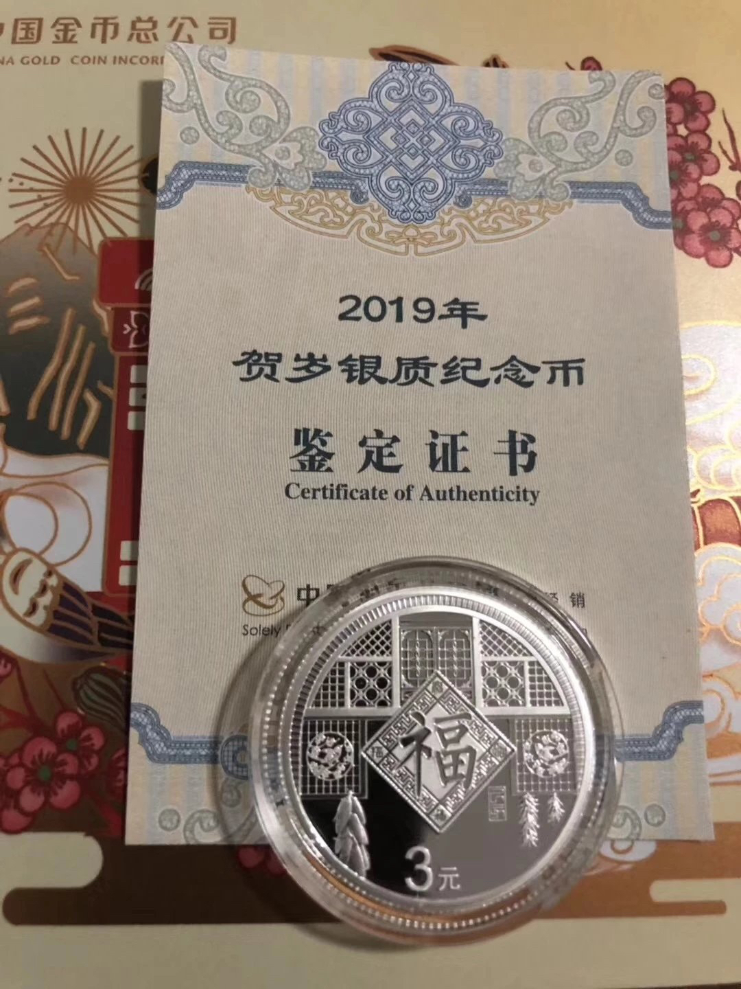 2019年贺岁福字银币(带原装卡册和证书)