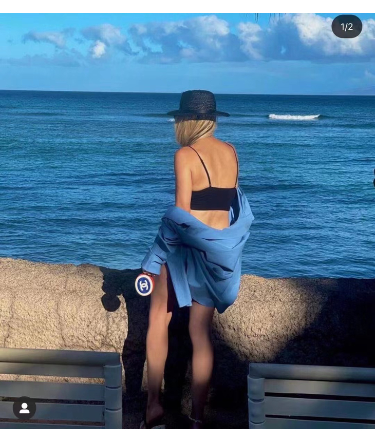 淡漠蓝、是带点灰调的蓝色,很像是在克莱因蓝里加了笔莫奈的灰,低饱和的色调穿上身,一下子就给炎热的夏天带来一份清凉,妥妥的降温look,上身既清新质感又优雅大气。