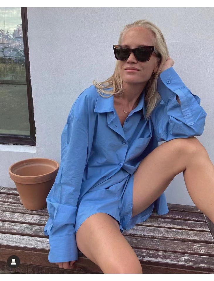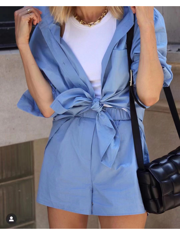 【à perles】丝光棉经典套装,方领衬衫➕腰头橡筋短裤(可单买),舒适时髦【清仓,不退不换】