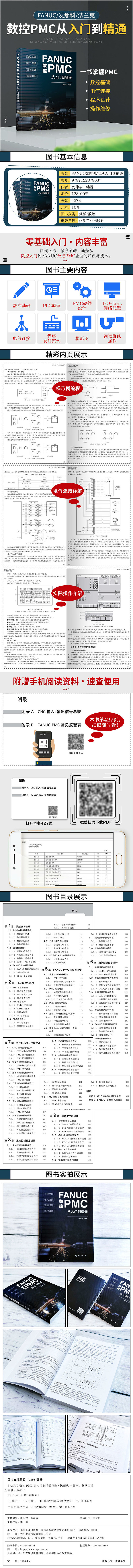 第5~8章为FANUC数控系统集成PMC的程序设计及示例。本部分对FANUC数控PMC编程指令的格式与要求进行了全部阐述,对数控系统操作面板及数控机床自动换刀、主轴控制的PMC程序设计要求进行详尽说明,并提供了完整的PMC程序设计示例。