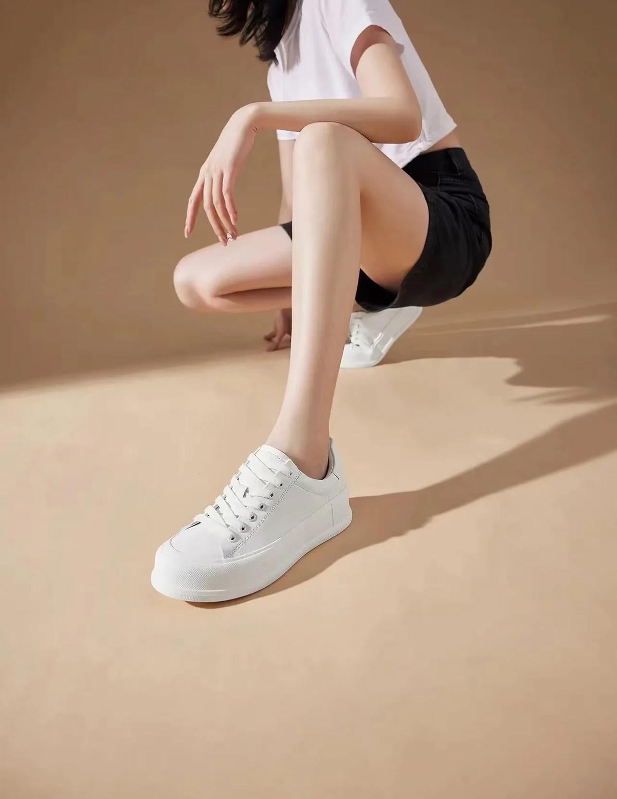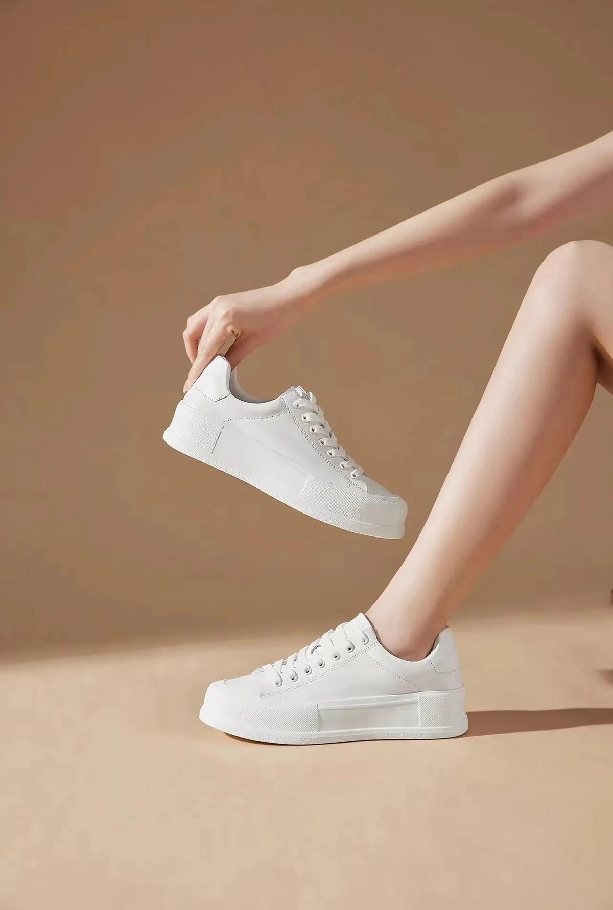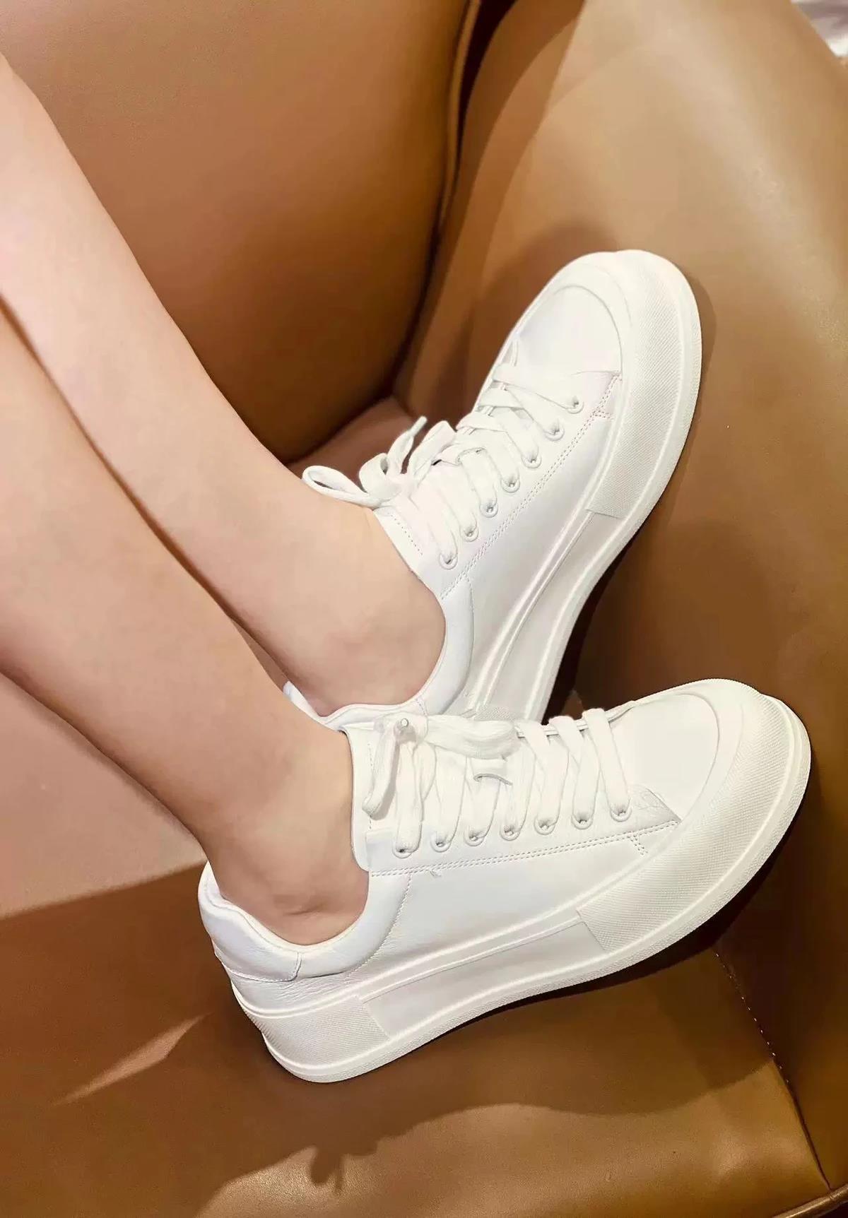 洛诗琳夏季新款进口意大利小牛皮舒适厚底牛皮小白鞋0153