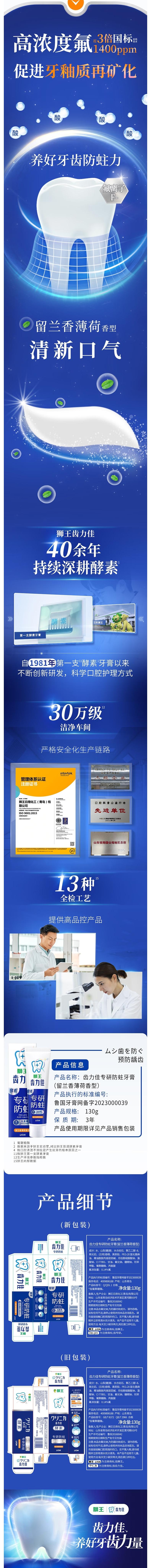 Lion狮王 齿力佳专研防蛀牙膏(留兰香薄荷香型)130g LMSW001