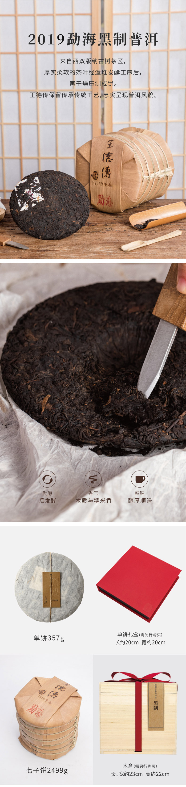 [普洱熟茶]2019年勐海黑制七子饼2499g