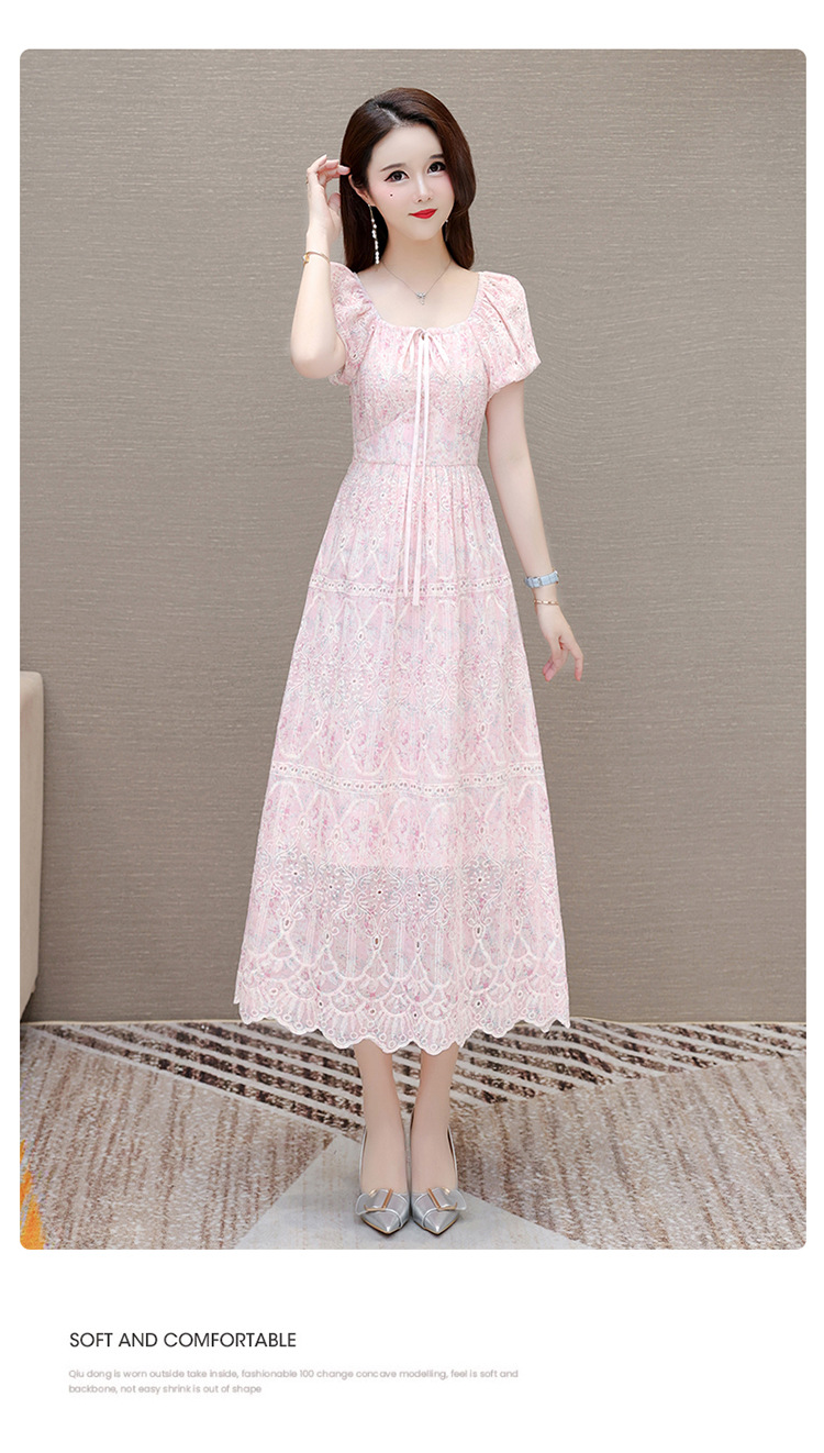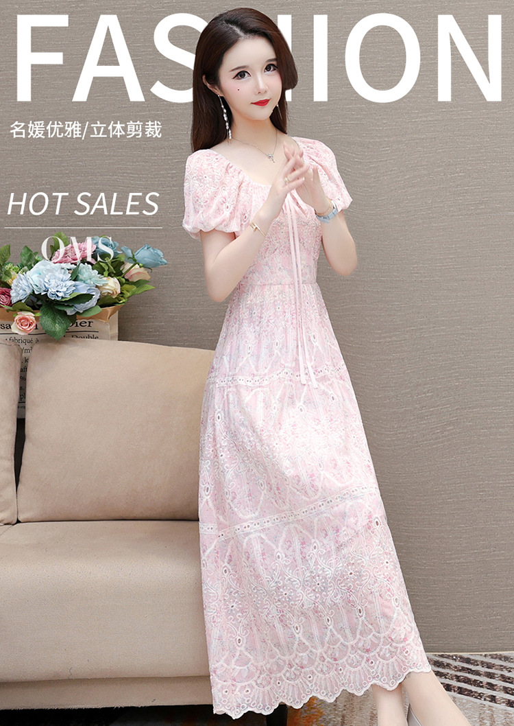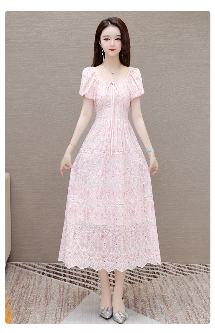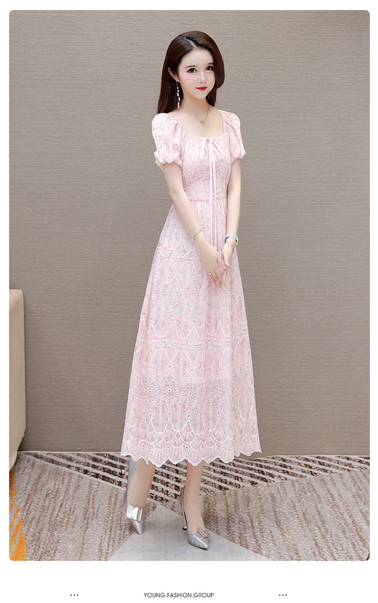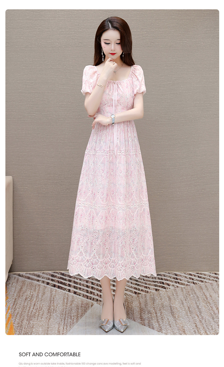 U字领泡泡袖,时尚小清新A字裙QYM-OMS-ZXA4169-L
