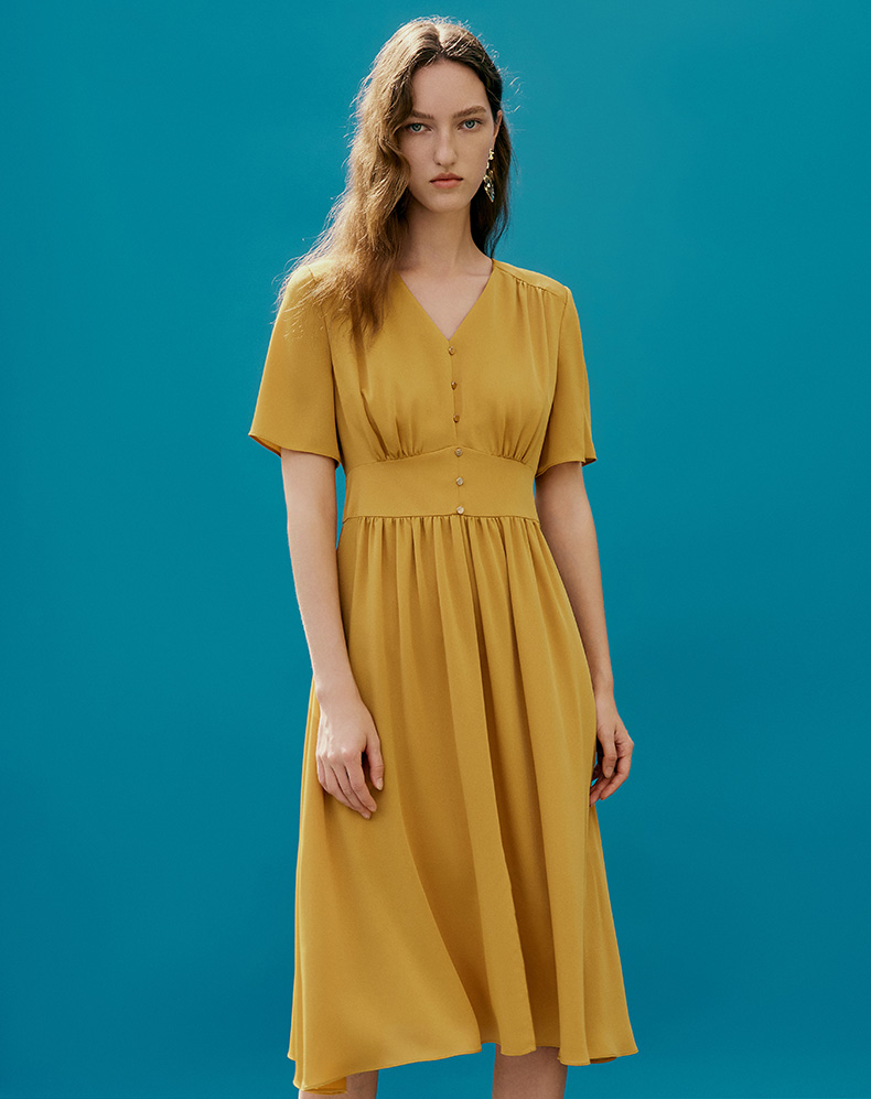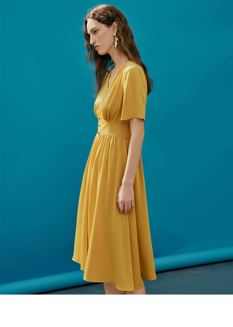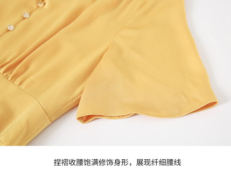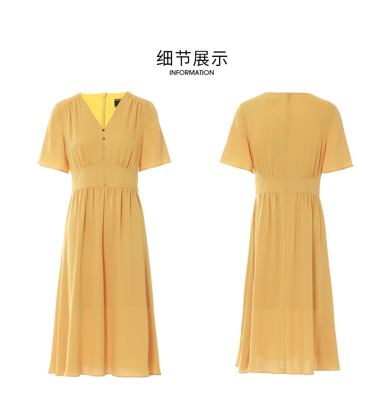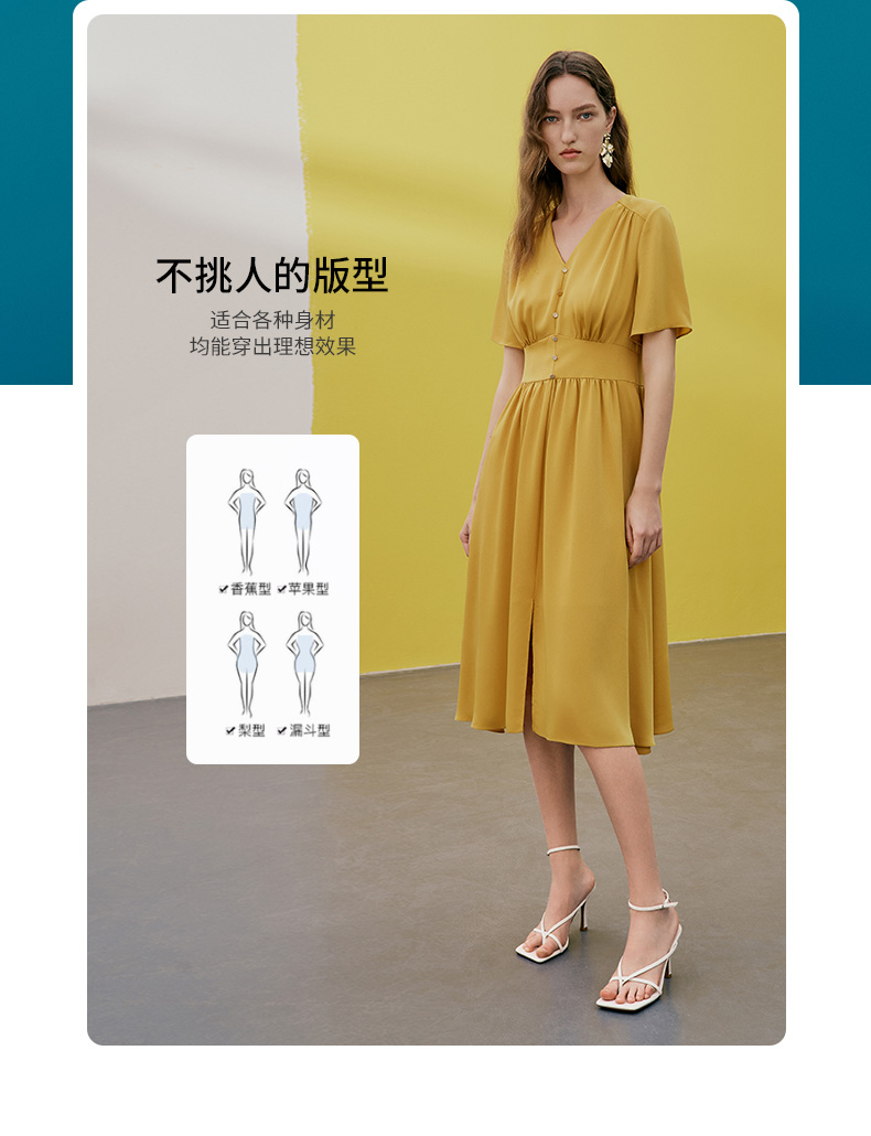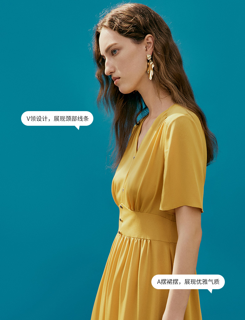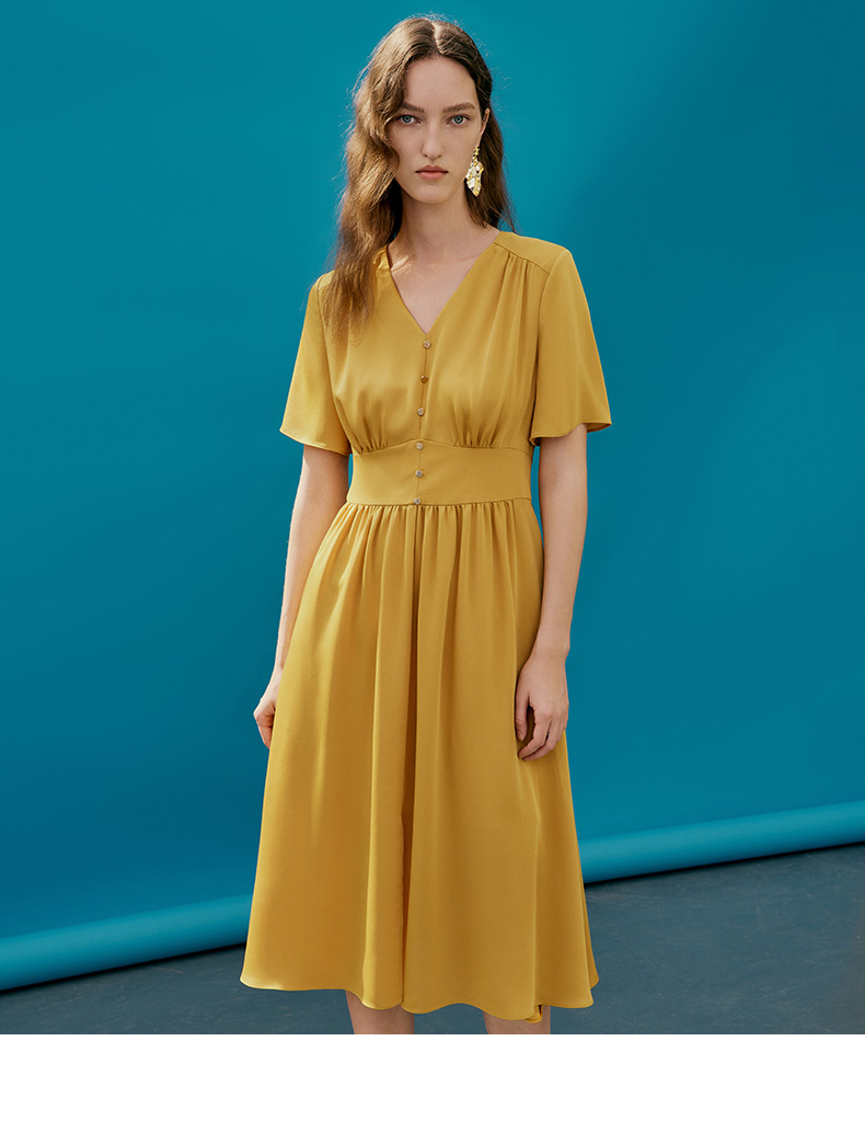 EITIE爱特爱夏季新款V领显瘦纯色百搭洋气收腰连衣裙7407146