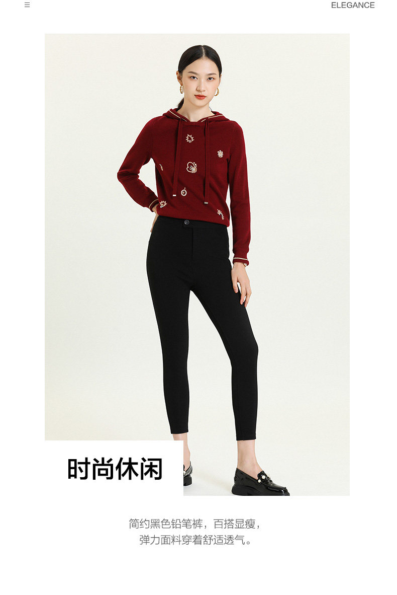 乔万尼秋冬新款加绒加厚高弹力显瘦舒适百搭保暖发热休闲打底裤黑ES4F342