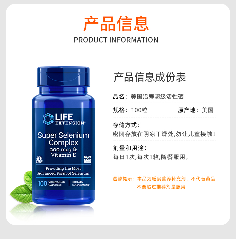 【LIFE EXTENSION】美国沿寿 超级硒Super Selenium Complex100粒