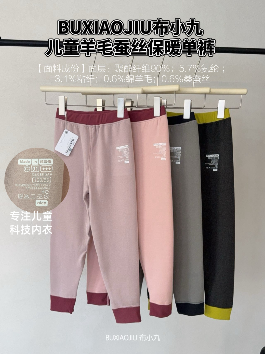 品牌:BU*XIAOJIU 布*小九zheng品‼️!儿童羊毛蚕丝保暖单裤【BU*XIAOJIU布*小九儿童羊毛蚕丝保暖单裤】冬天想给娃穿得暖又不臃肿?选这款布小九儿童保暖内衣就对了! 高腰护肚+亲肤绒感90%聚酯纤维 保暖力很在线,温柔粉调还特别显乖巧~打底裤穿着感好不好 用料和做工细节非常的重❤️ 看下每条裤子的做工走线都是无可挑。面料也是带点磨毛质感的 下周降温了收到就能穿❤️ 四个色都是百搭。给娃挑冬天的裤子不用愁啦~ 布小九这款“一触即暖”保暖裤 软绒绒的触感,多色可选能搭不同上衣 高腰设计护住小肚子,娃活动起来也舒服~冬天给娃囤的“暖乎乎神器”到啦~粉灰黑黄几个颜色都好看 高腰护肚+撞色脚口,娃穿上跑跳都不冷~真的超级推荐,巨巨巨好看。超柔软亲肤,日常搭配必备,胖瘦都好穿 校服打底神裤!羊毛蚕丝徳绒面料超给力!经典版型颜色超好看百搭不挑人!弹力亲肤,超柔软舒适。相信每个宝宝的衣柜里都少不了几条打底裤。打底裤简直是最让妈妈省心的单品!🔥这件羊毛蚕丝打底裤。既是外出时抗寒的好帮手。又高弹柔软也可以当居家裤。面料特别柔软,舒适保暖,轻便百搭,小宝必备单品!