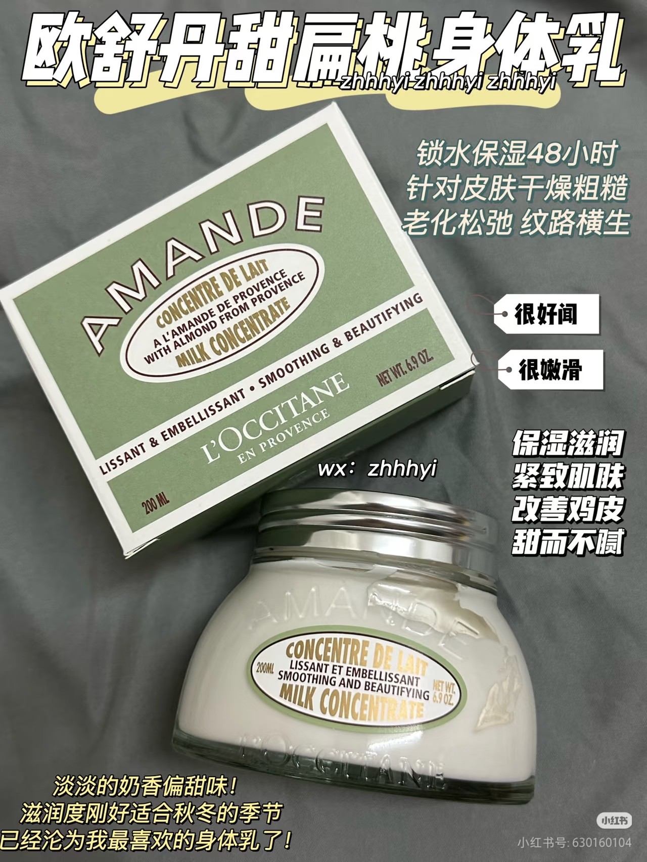 杏仁紧肤,滋养、深润干燥肌肤蕴含丰富杏仁油及杏仁奶的身体乳霜,为肌肤带来滋养作用,令肌肤丝般光滑。