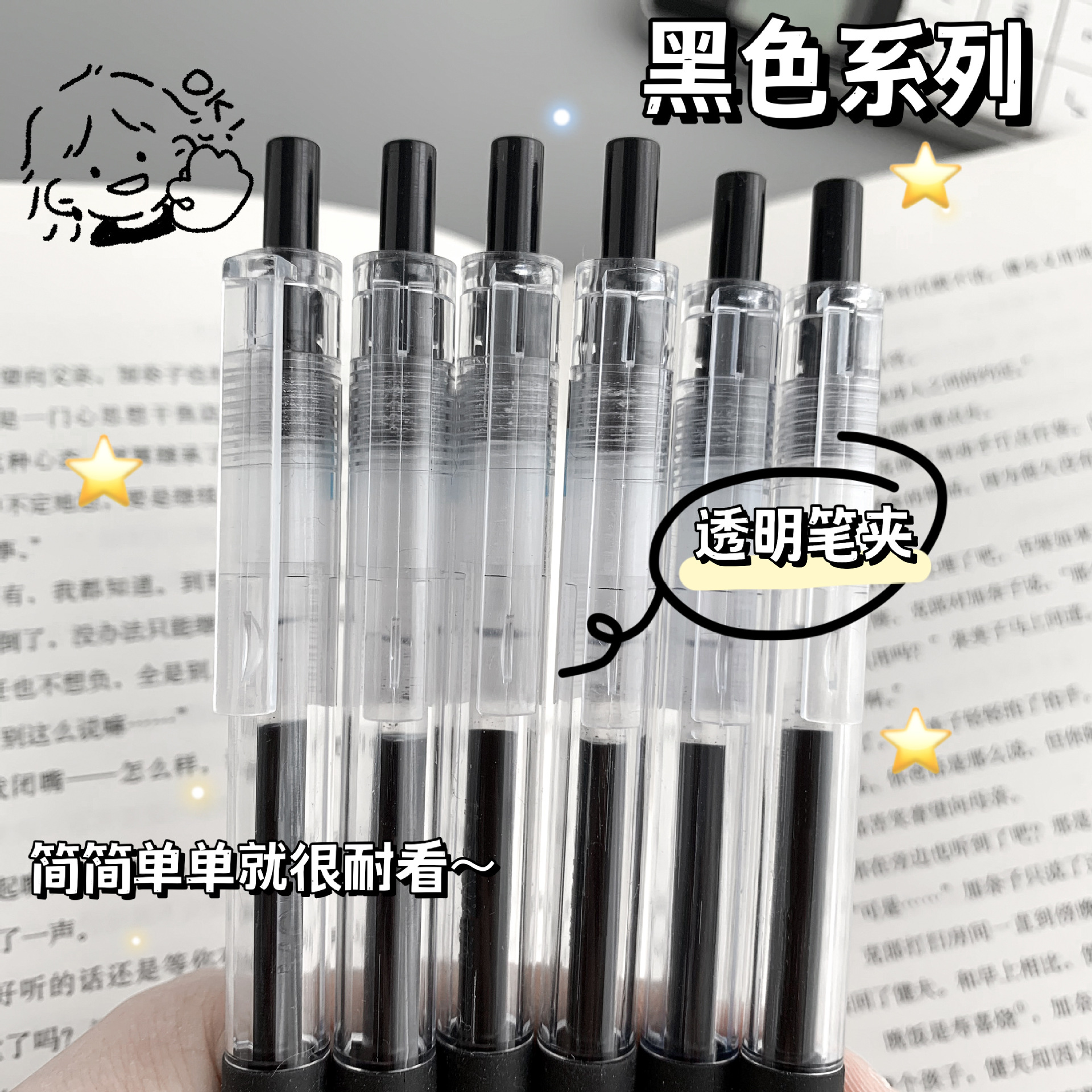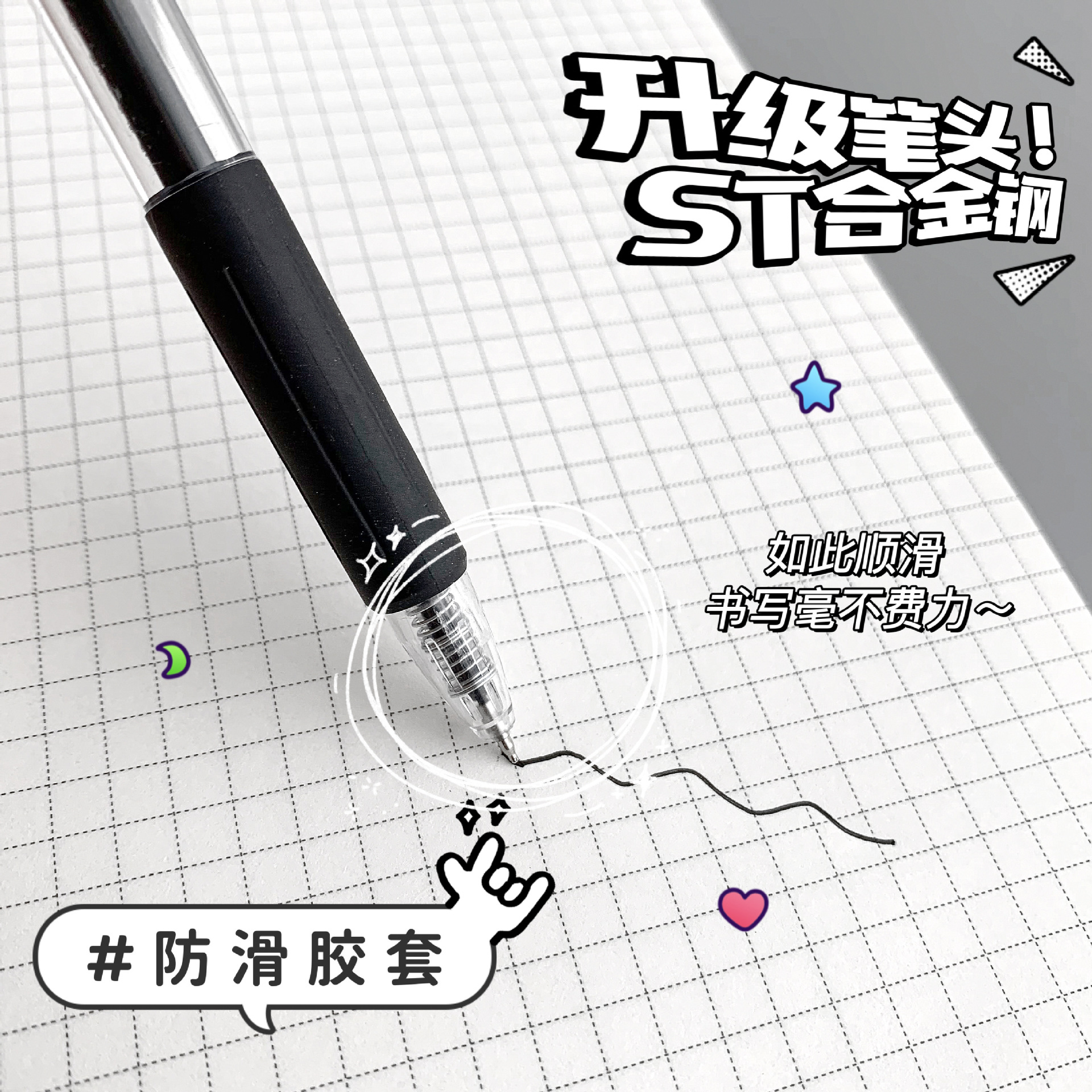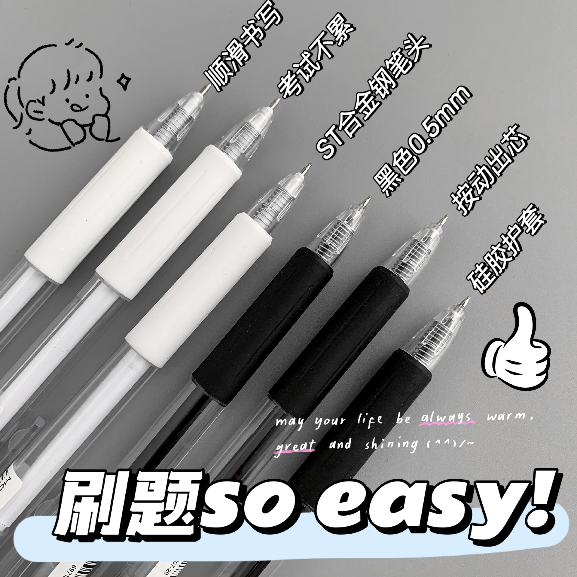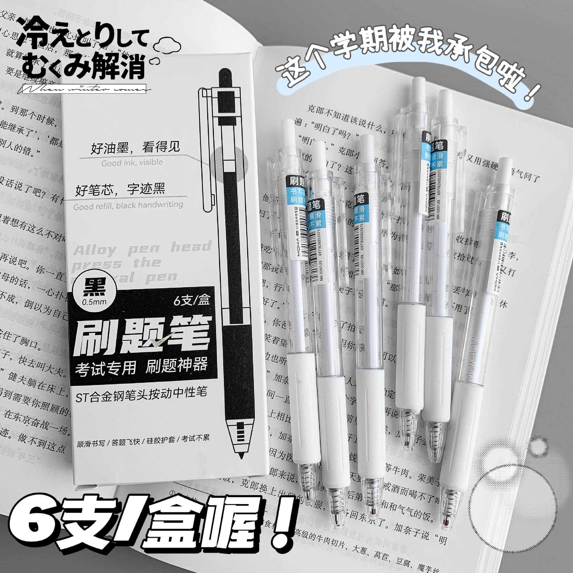 【智慧优选】「拍1发6!9.9到手6支」ins风日系ST头刷题笔 简约颜值按动式中性笔黑色0.5签字笔