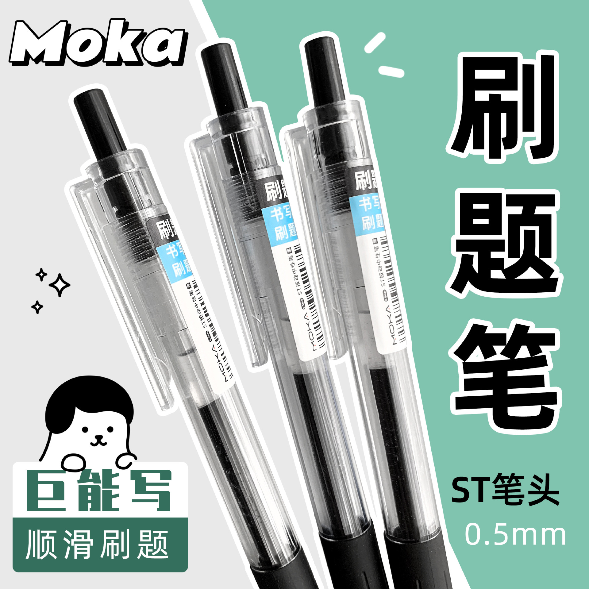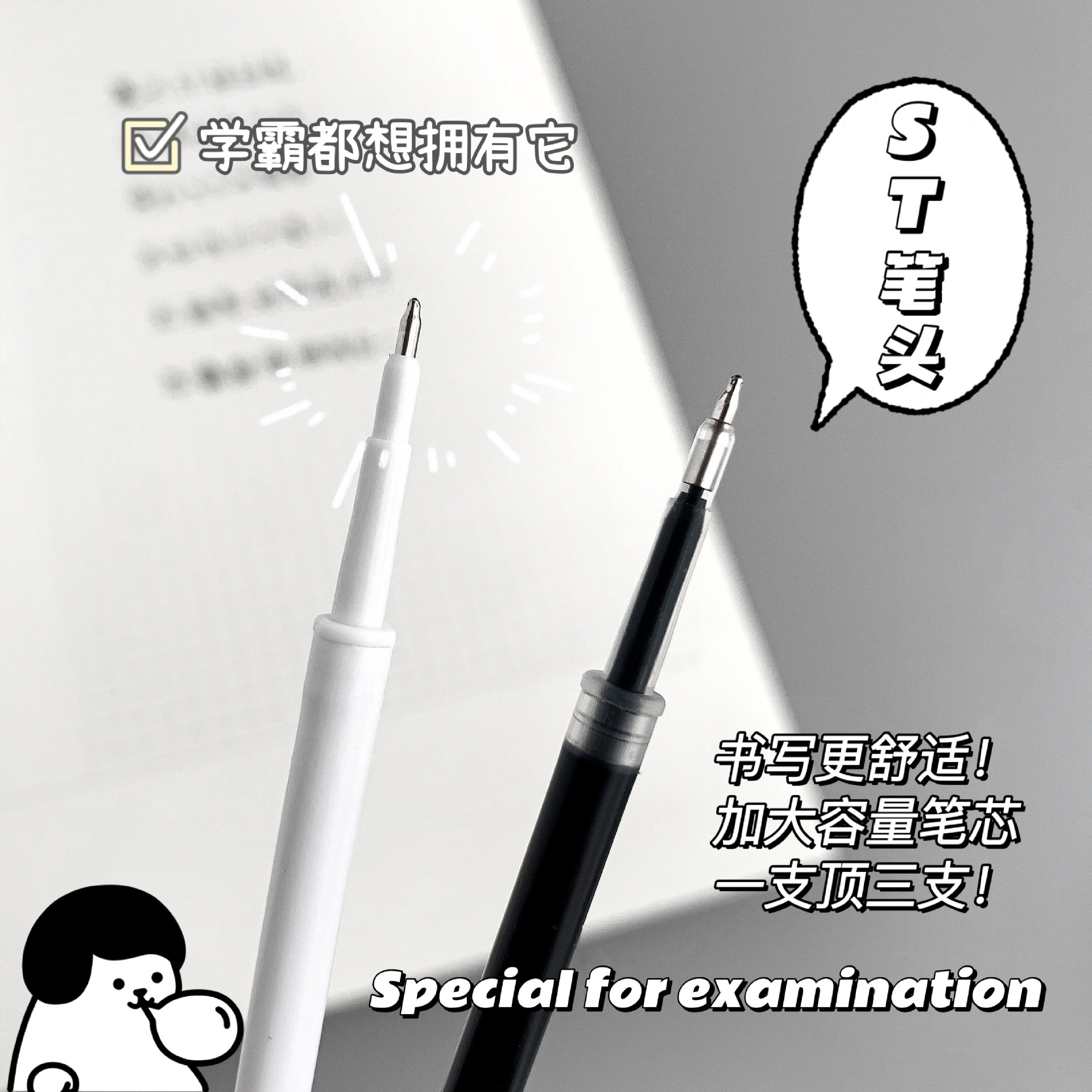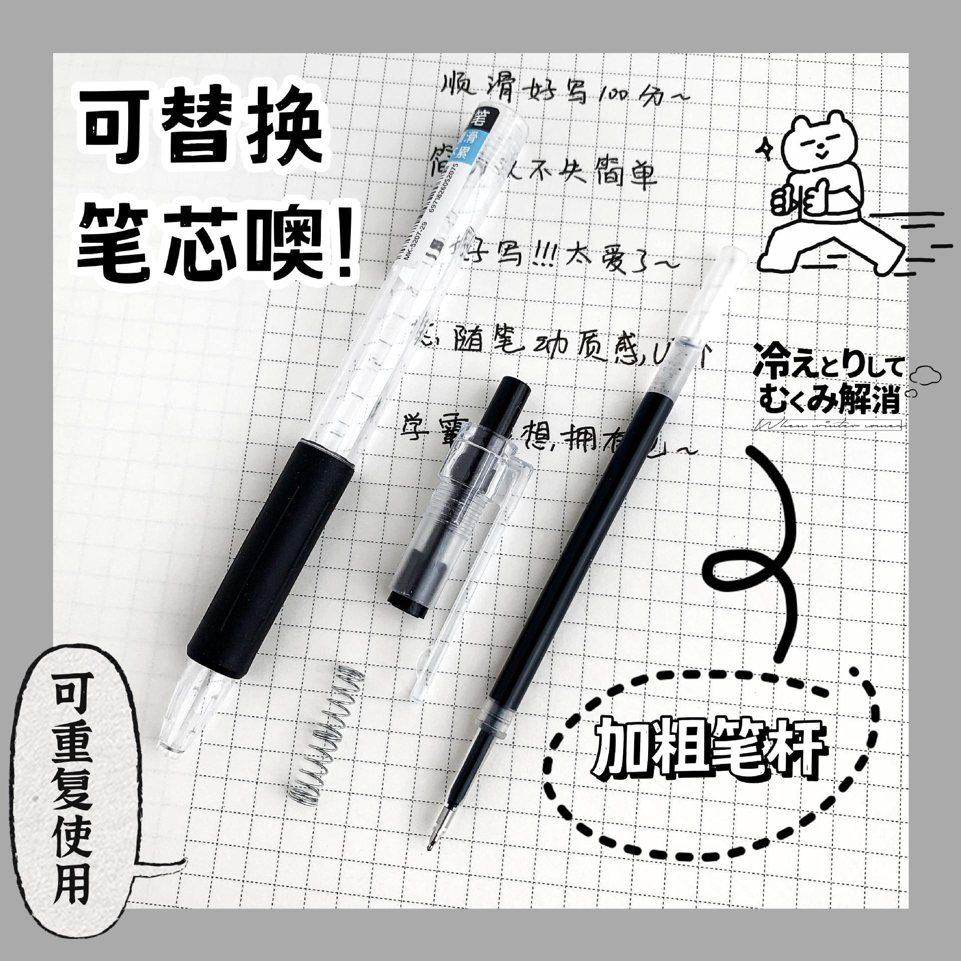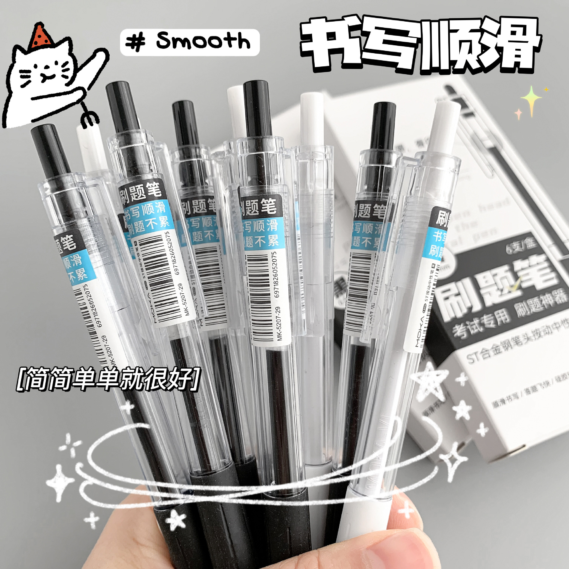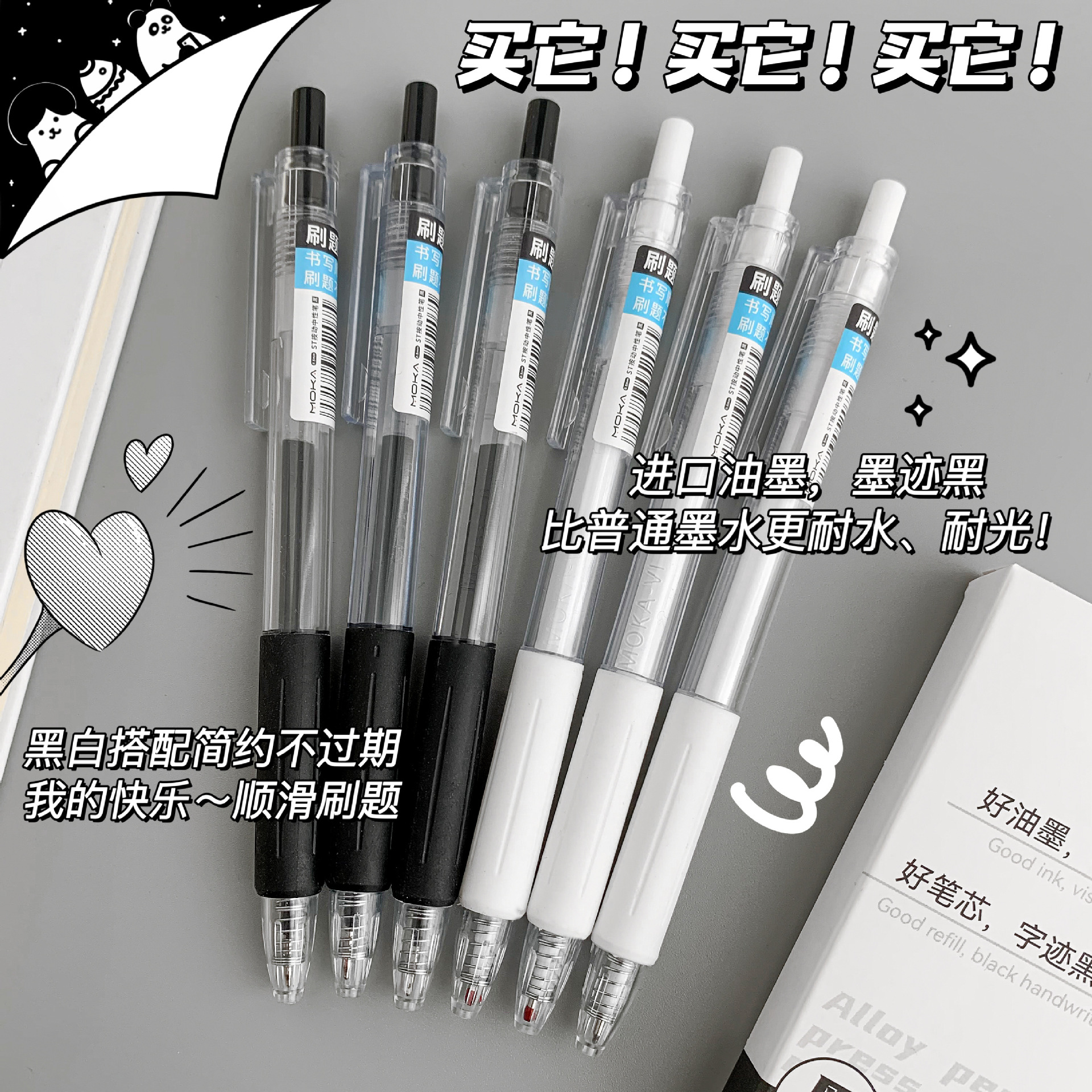 【智慧优选】「拍1发6!9.9到手6支」ins风日系ST头刷题笔 简约颜值按动式中性笔黑色0.5签字笔