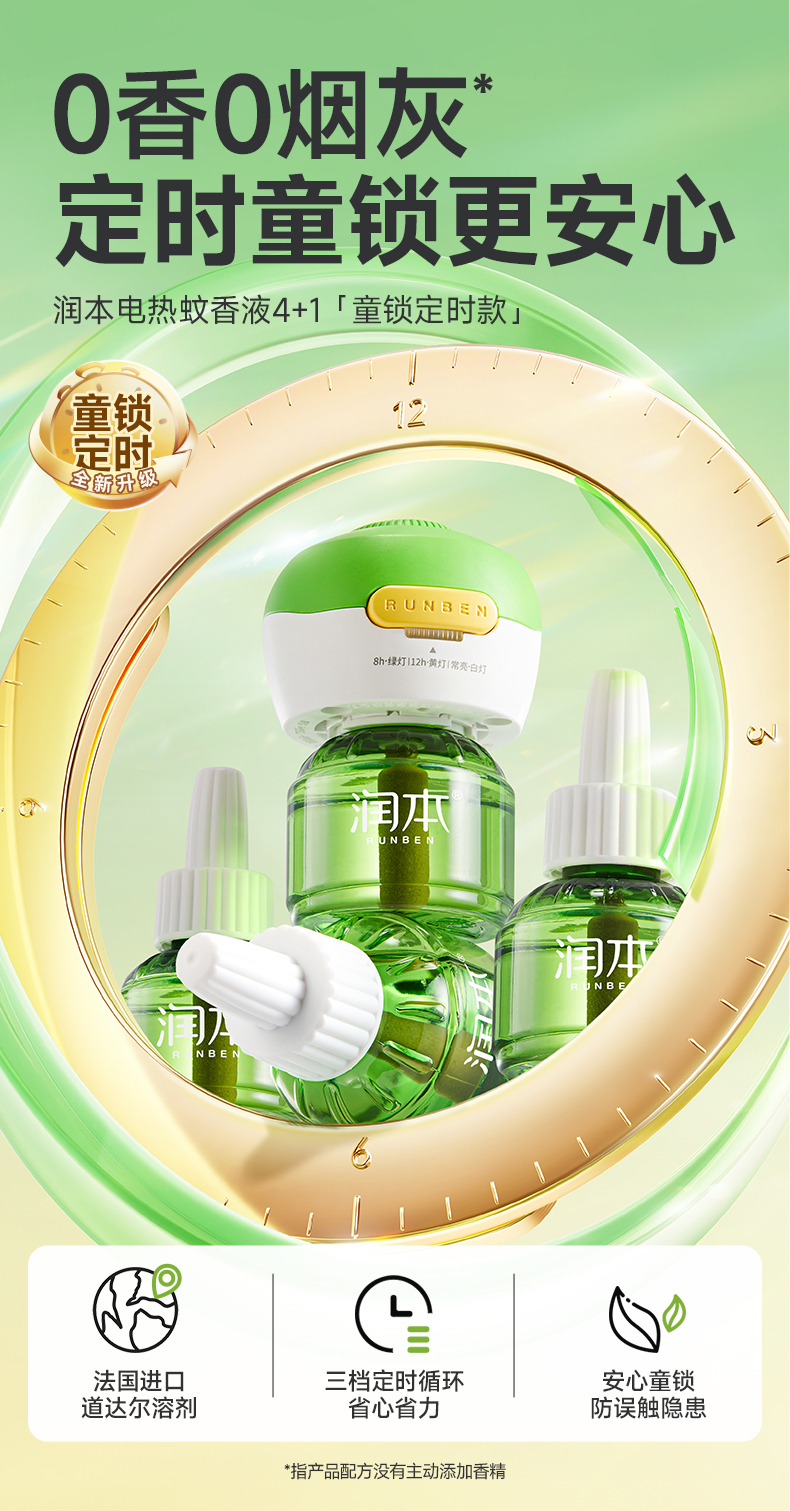 【长轻专属】润本蚊香液 定时童锁款 家用驱蚊液