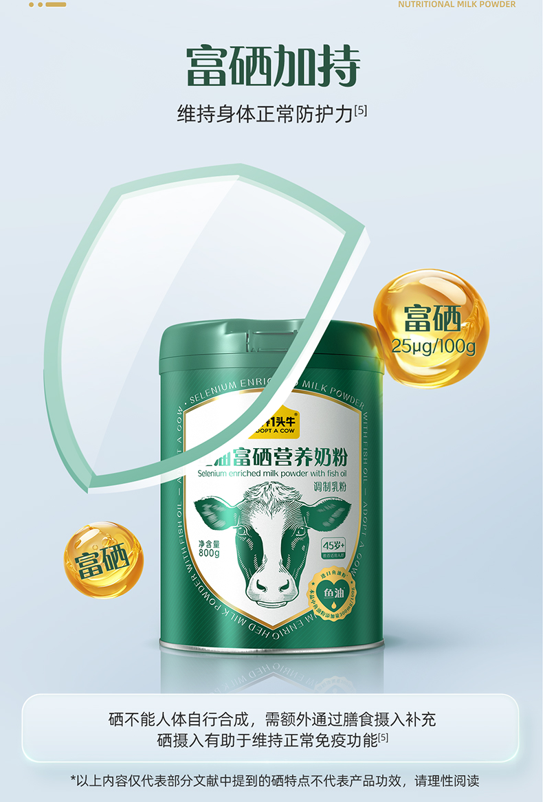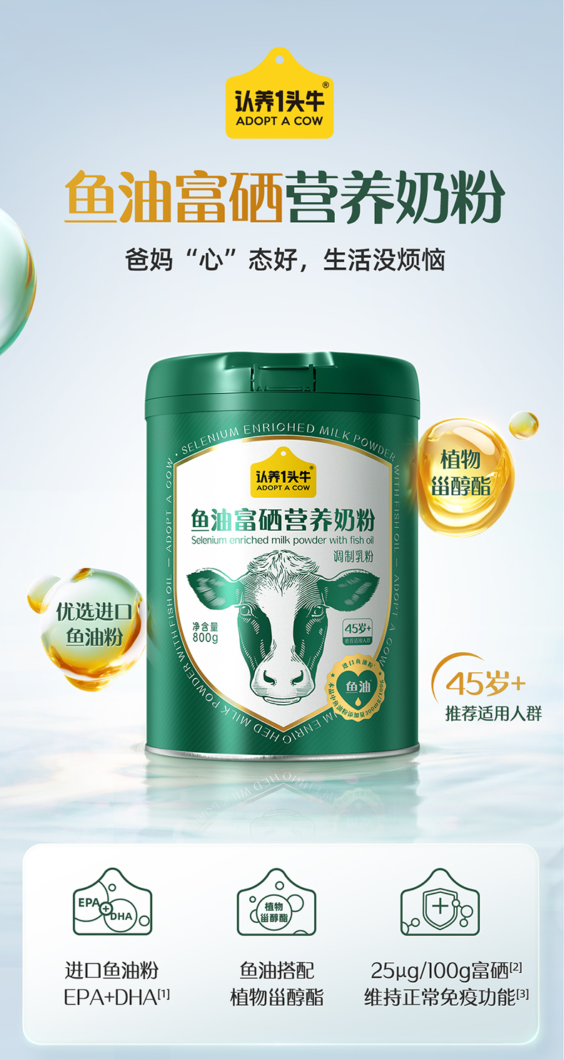 【中秋分销团购爆款推荐】认养一头牛鱼油富硒营养奶粉800*2罐(礼盒装)