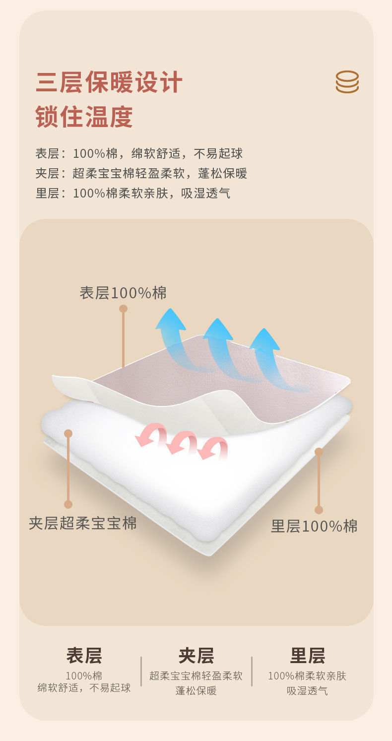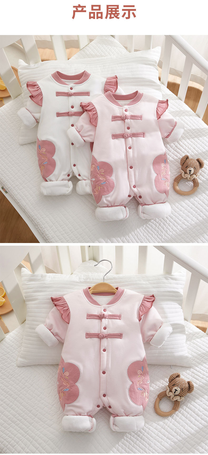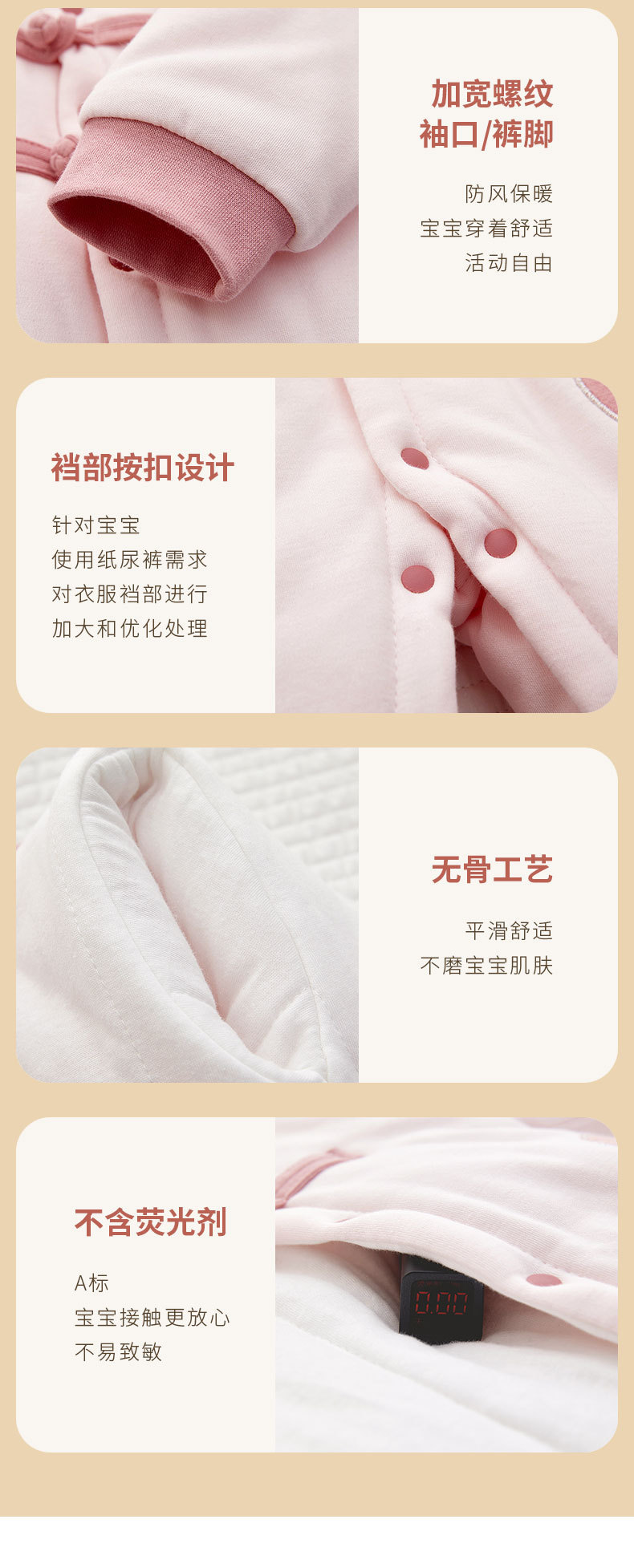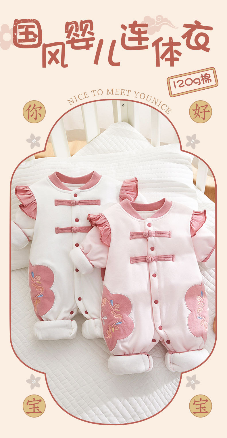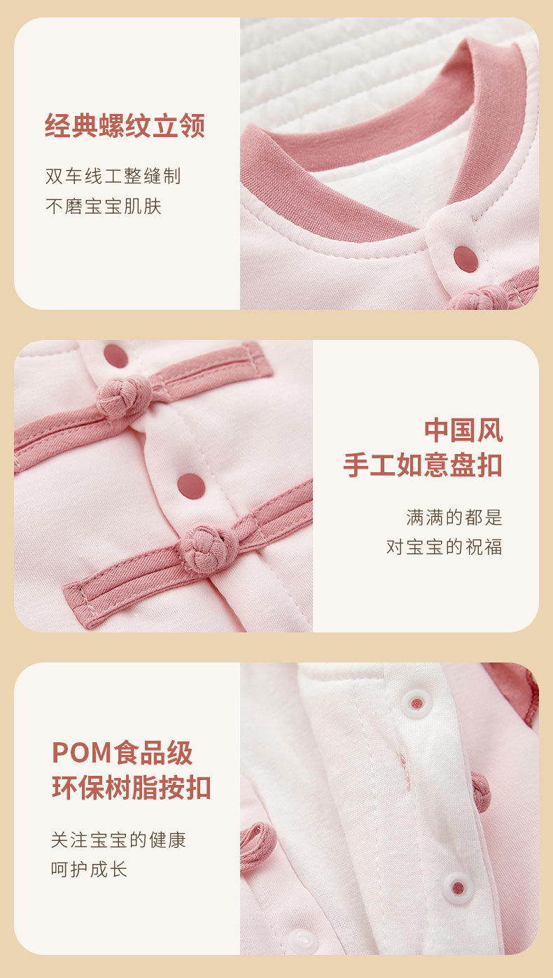 【A类三层保暖!不含荧光更健康】国风秋冬婴儿连体衣加厚夹棉男女宝宝棉衣棉服120g纯棉新生儿哈衣。hb