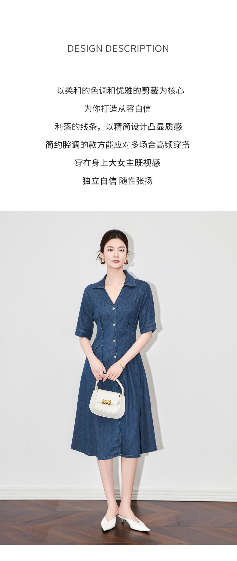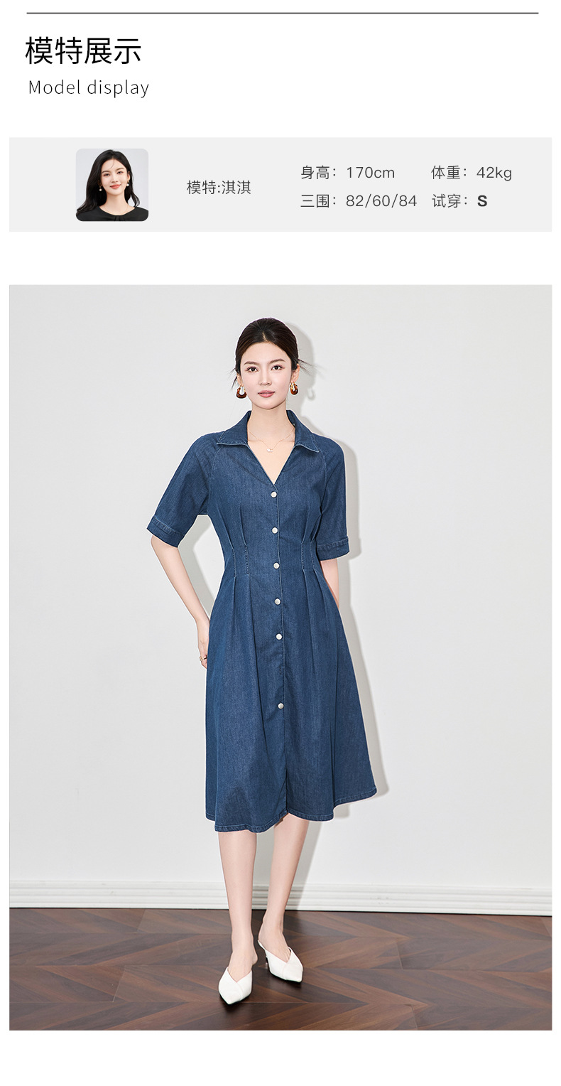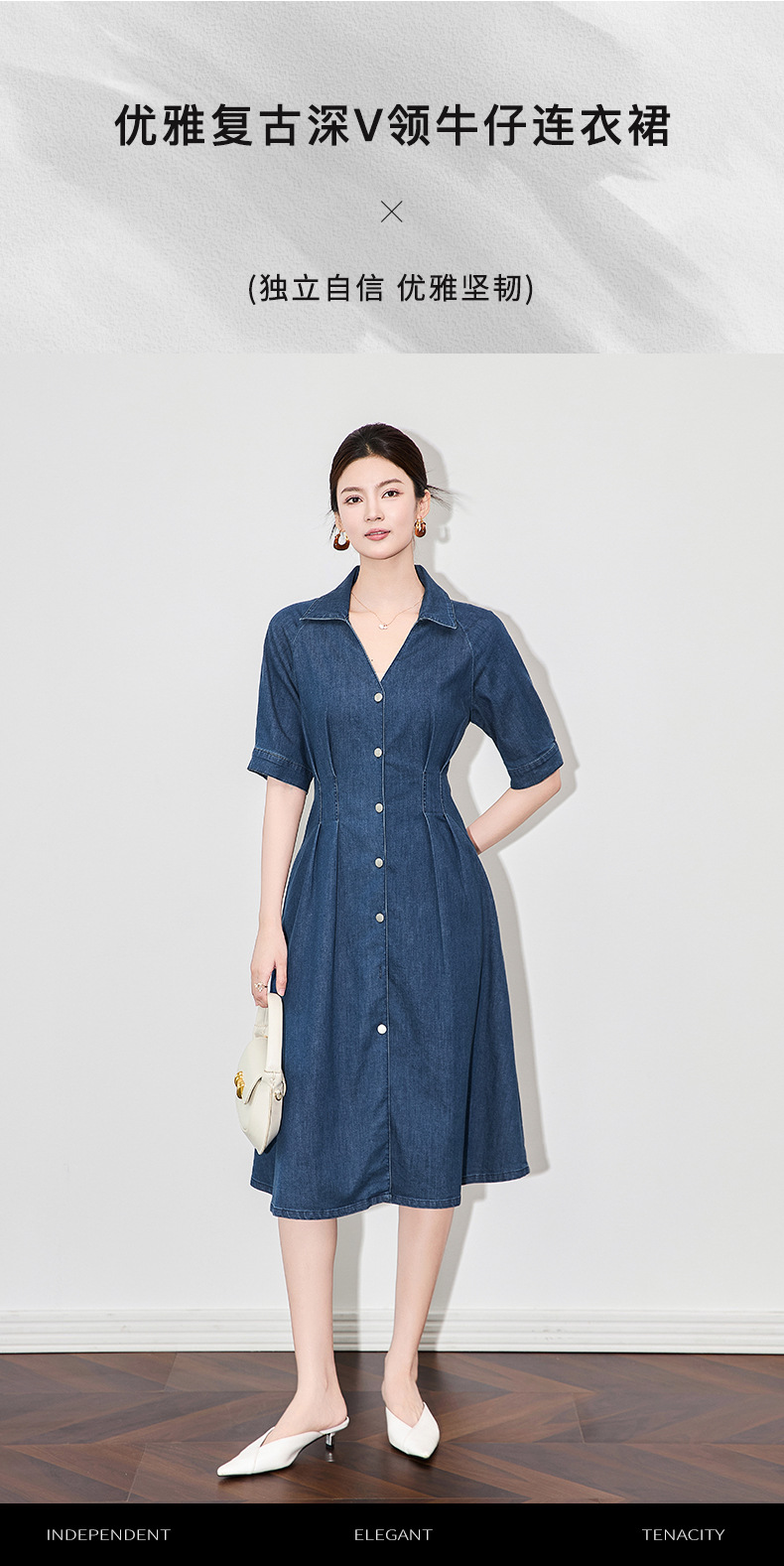 「高货wl」全新升级【铂金会员349/天猫469/差价120】(51757)洛诗琳优雅气质复古连衣裙2025夏季收腰V领莱赛尔牛仔裙女