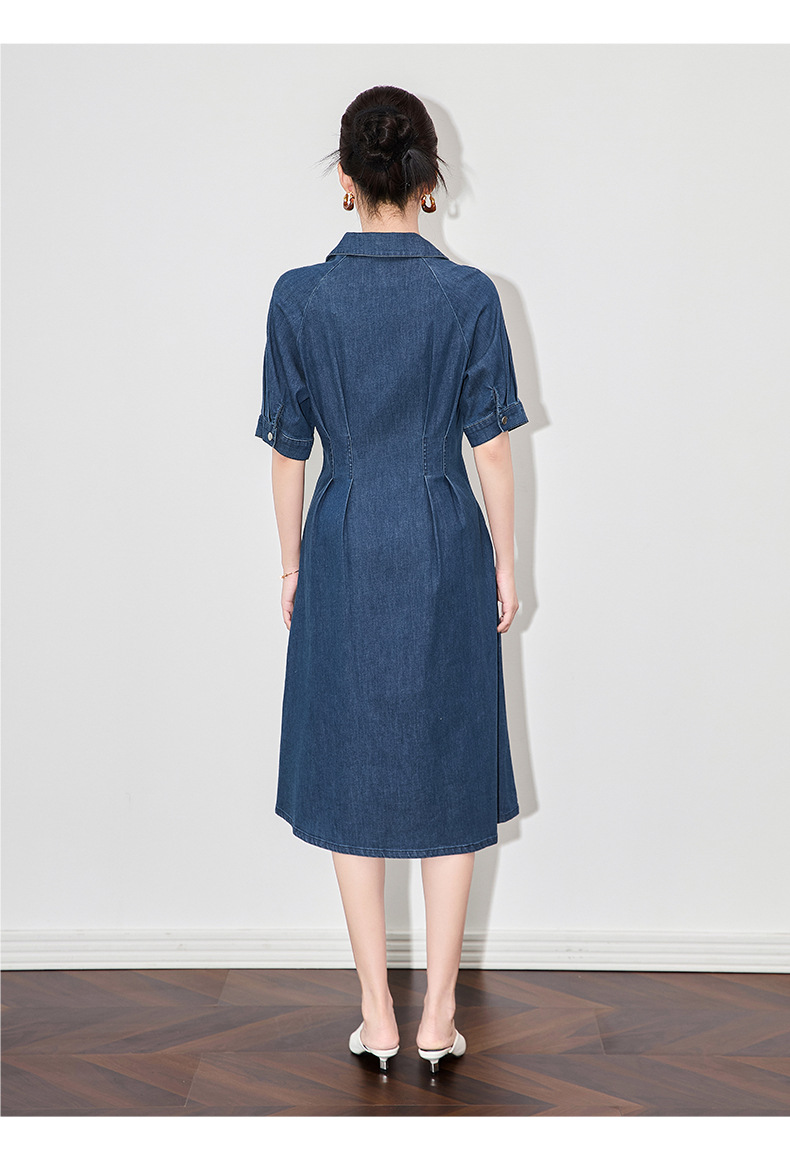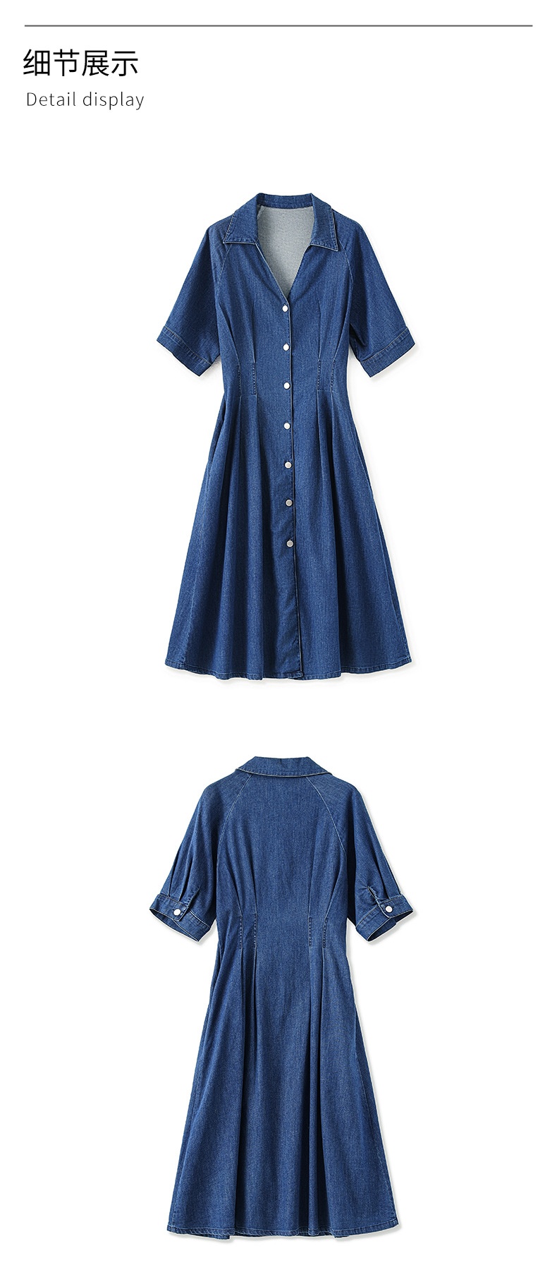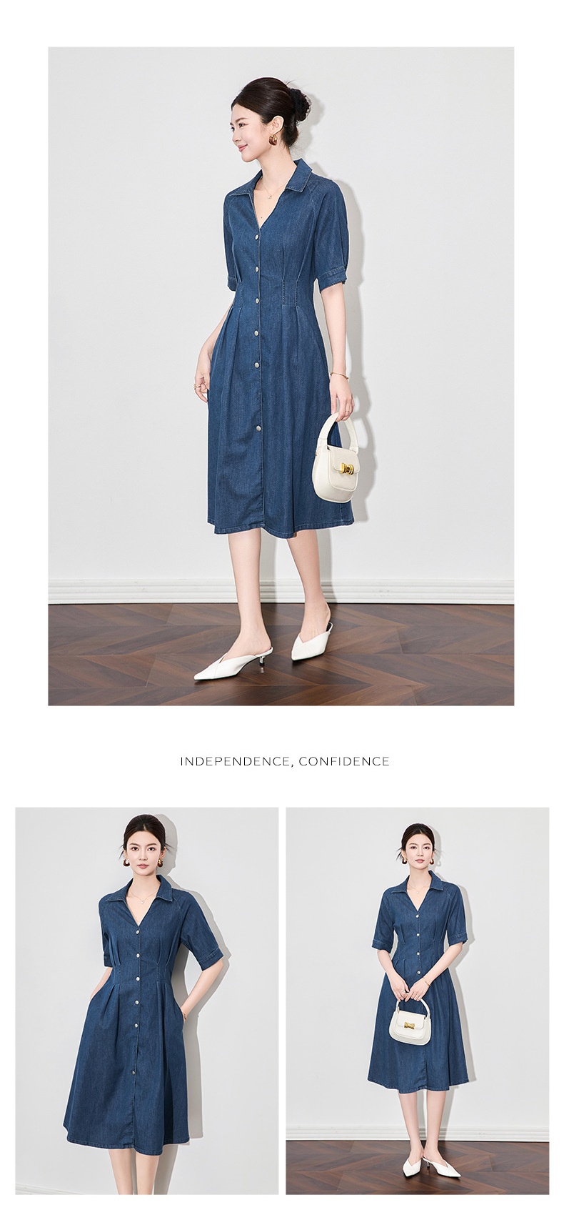 「高货wl」全新升级【铂金会员349/天猫469/差价120】(51757)洛诗琳优雅气质复古连衣裙2025夏季收腰V领莱赛尔牛仔裙女