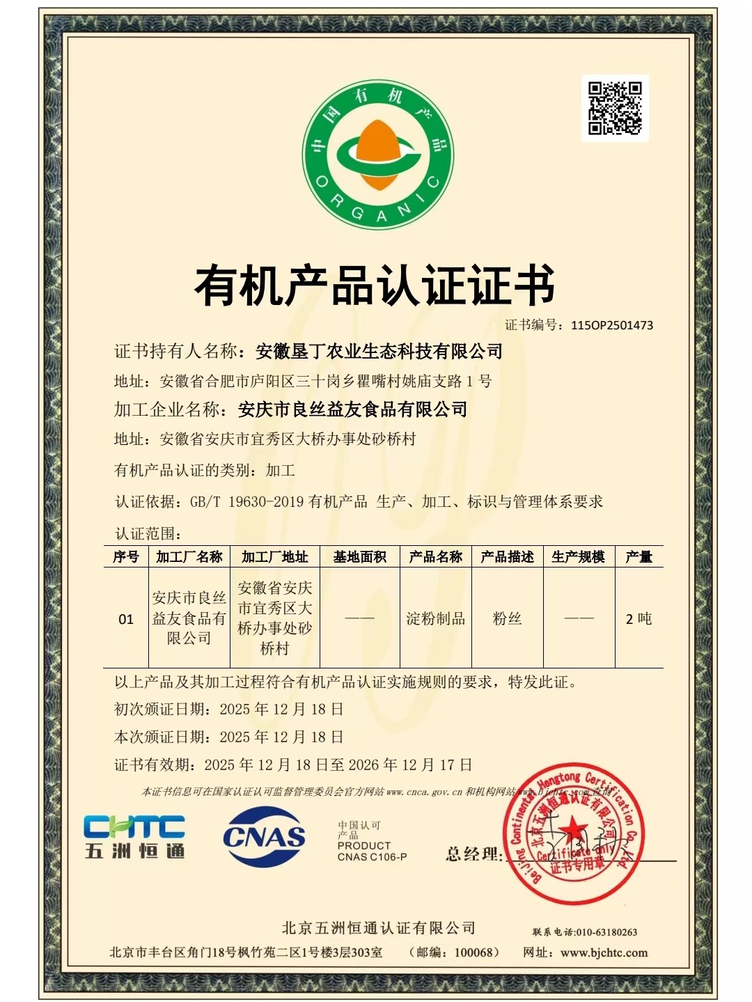做粉丝有机认证除了要检测红薯,工厂的生产环境、卫生状况、工人健康、生产用水状况等项目也会进行检测,以确保我们粉丝的安全、合规与品质稳定。