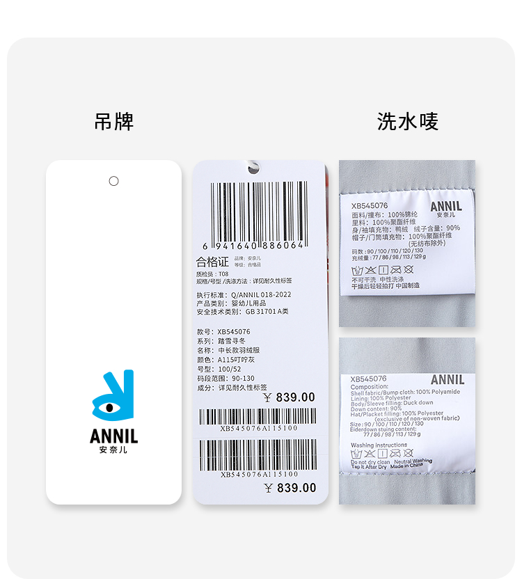 【实体店同款】男童中长款羽绒服冬季新款安奈儿童装XB545076