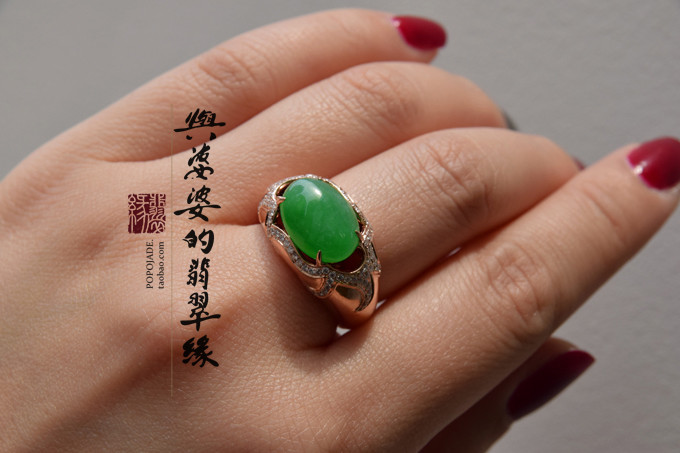 18K玫瑰金翡翠绿蛋戒指