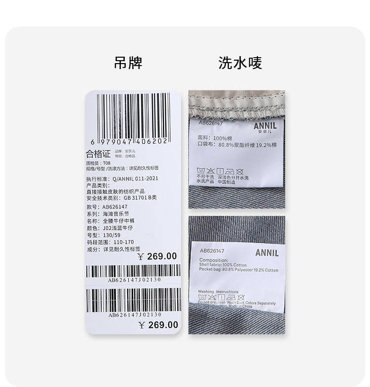 【实体店同款】男童全腰牛仔中裤夏季新款安奈儿童装AB626147