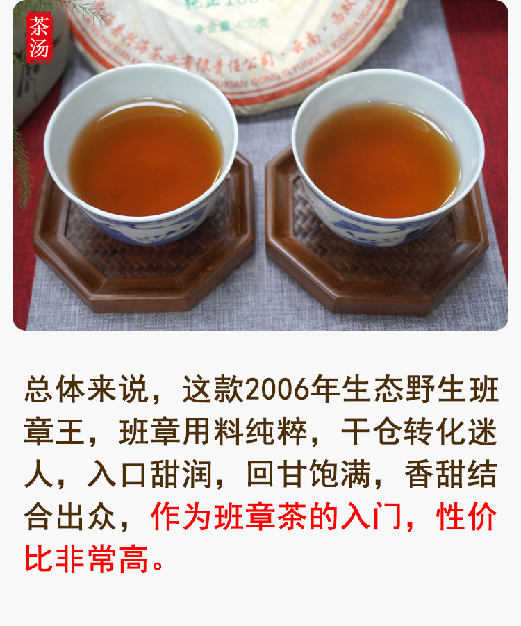 2006年兴海茶厂早期TM版批次野生班章王老生茶 一片400克性价比高 野生班章王干仓真品
