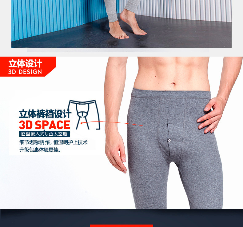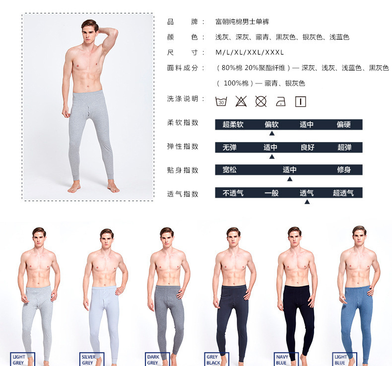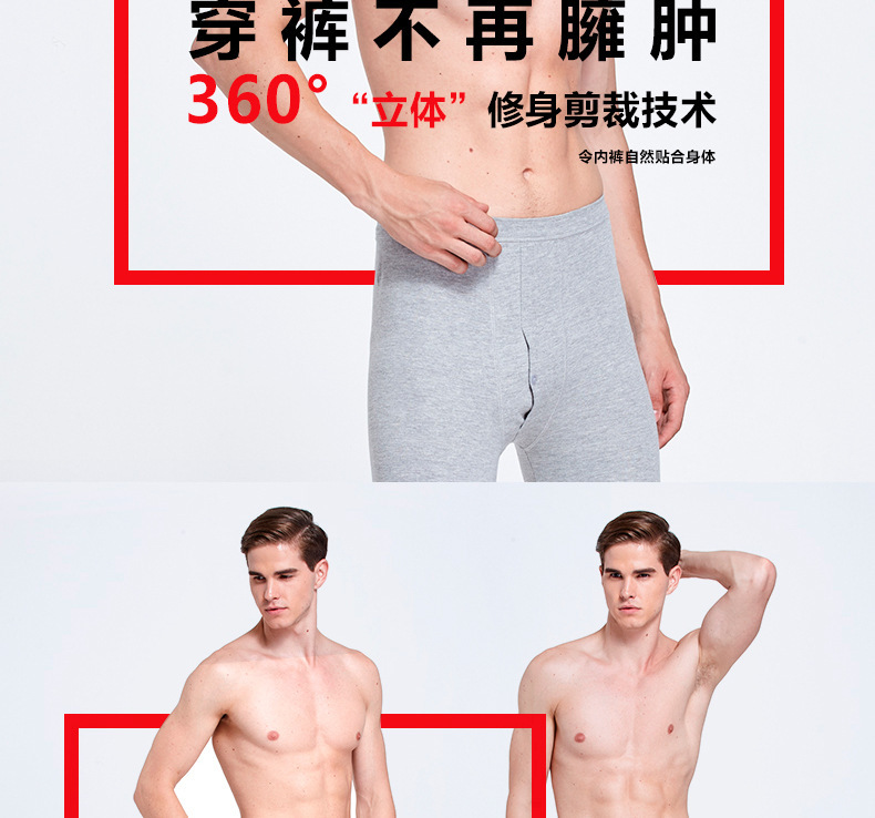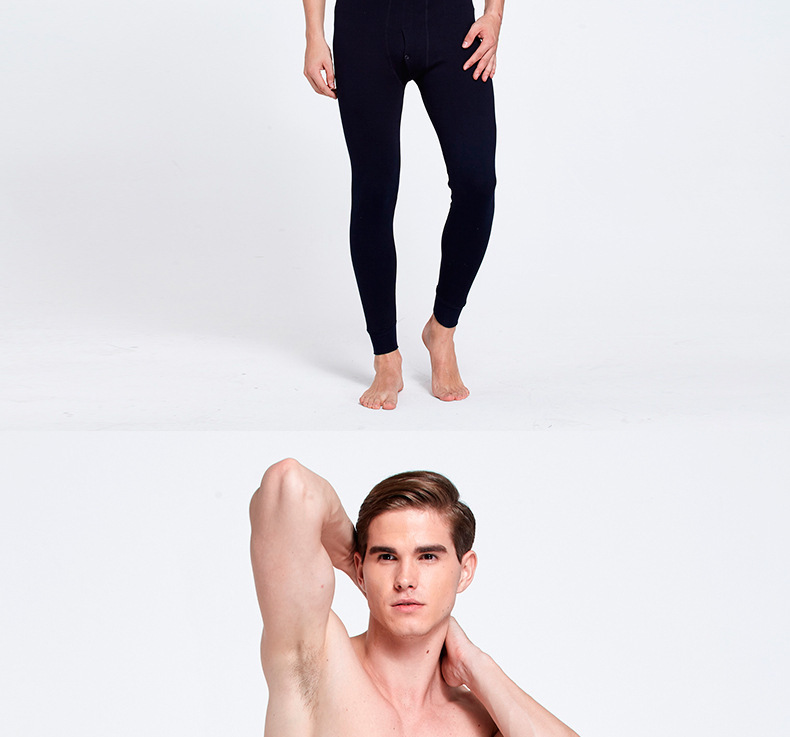 雀说 【2条装】男士秋裤纯棉修身纯色保暖裤薄款棉毛裤