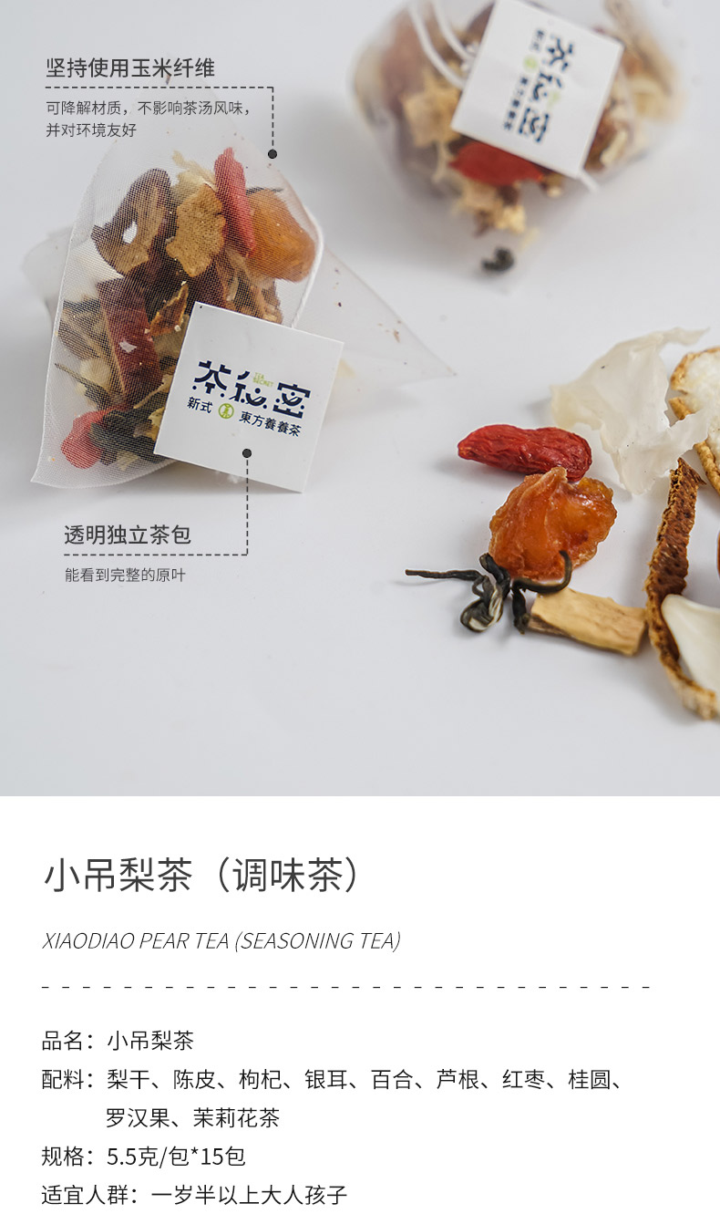 茶秘密 小吊梨茶 5.5克*15包 I 古法润喉配方 0糖0香精0添加 独立小袋方便冲泡 居家办公室常备