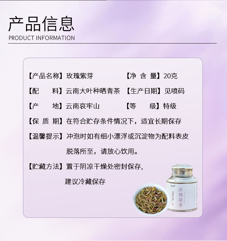【甄选】玫瑰紫芽云南古树高山紫茶自带甜感采摘期短入口回甘20g/1罐