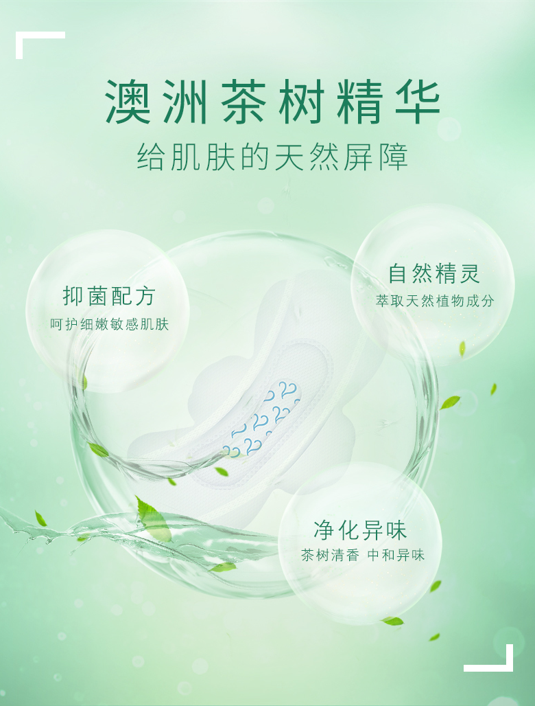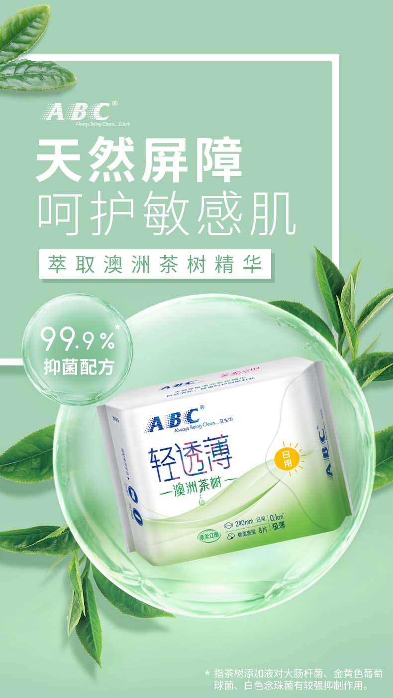(直播)ABC日用卫生巾澳洲茶树0.1超薄棉柔透气240mm少女姨妈巾正品抑菌