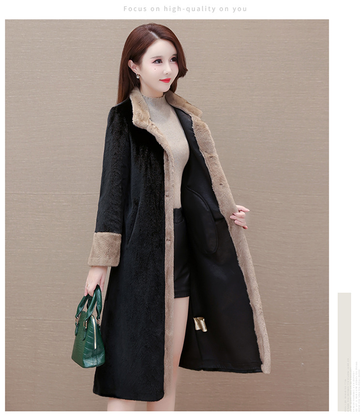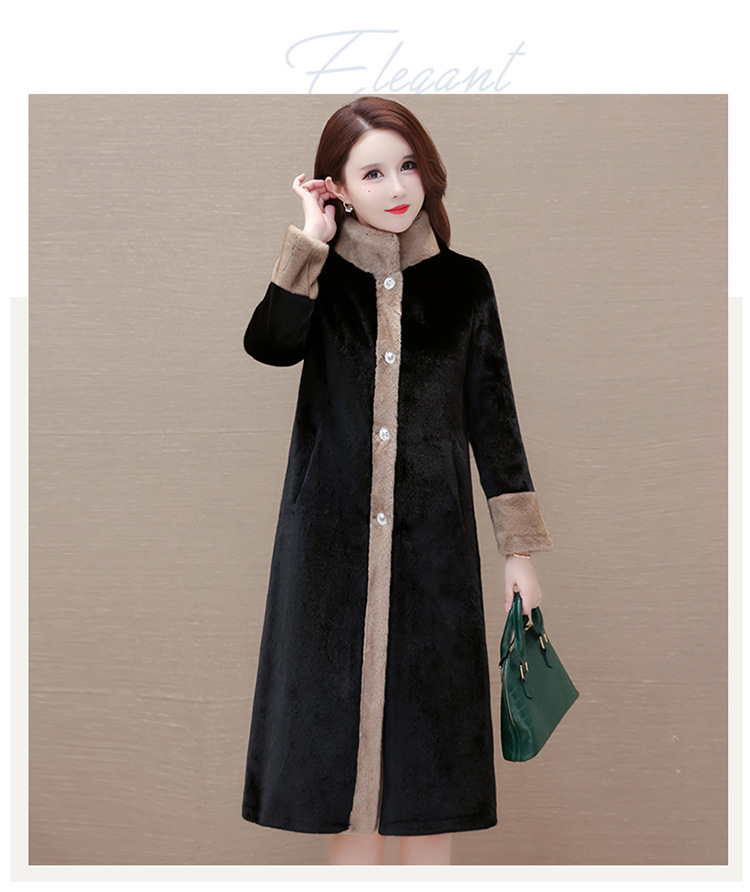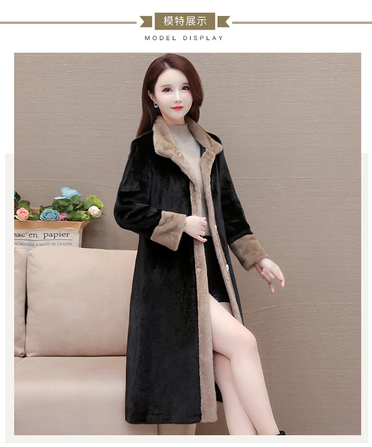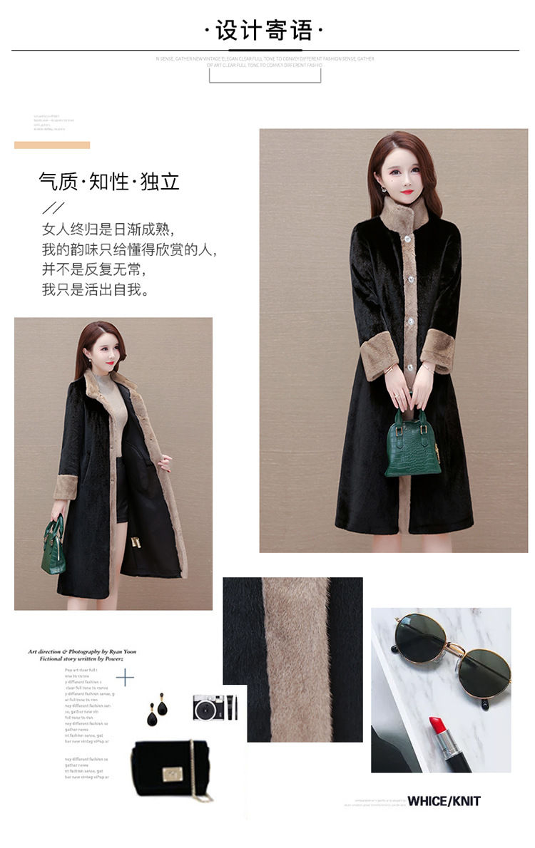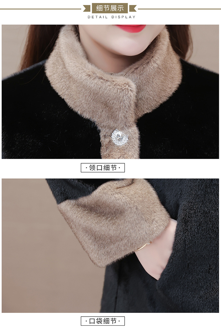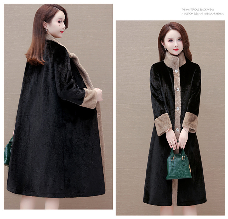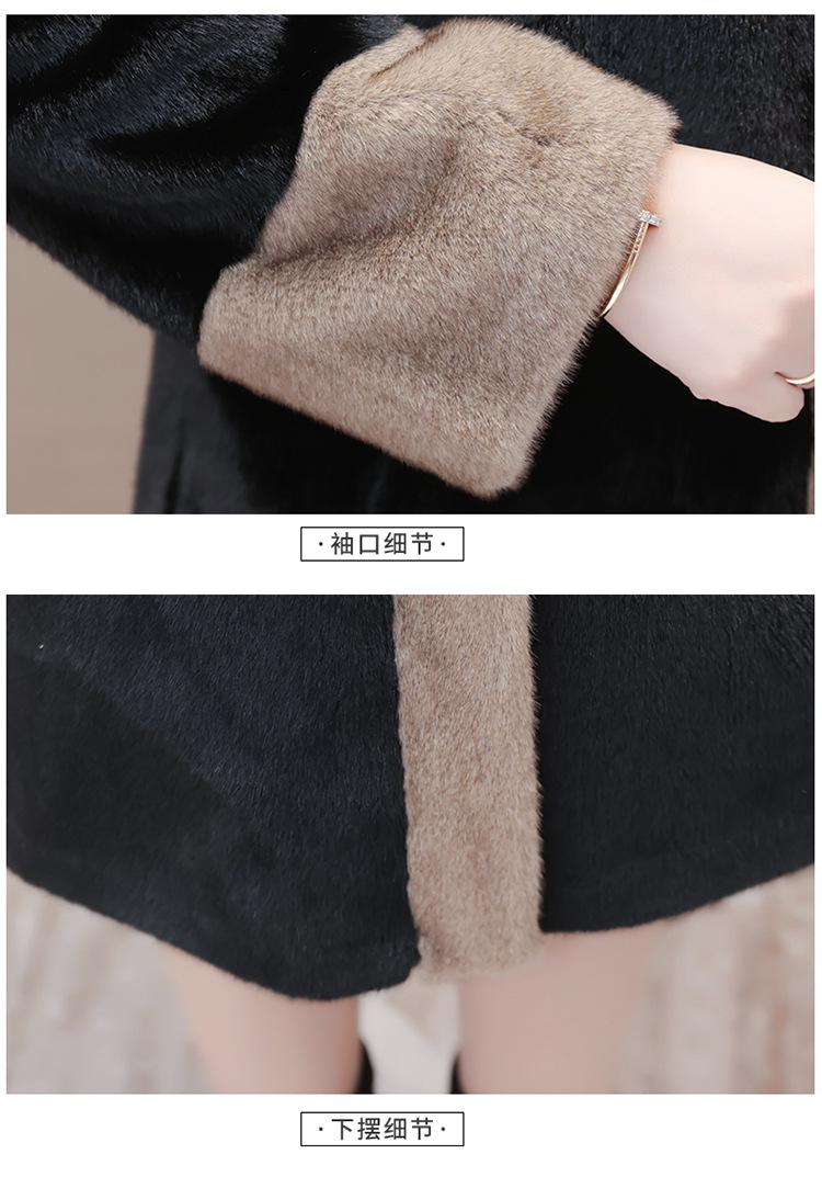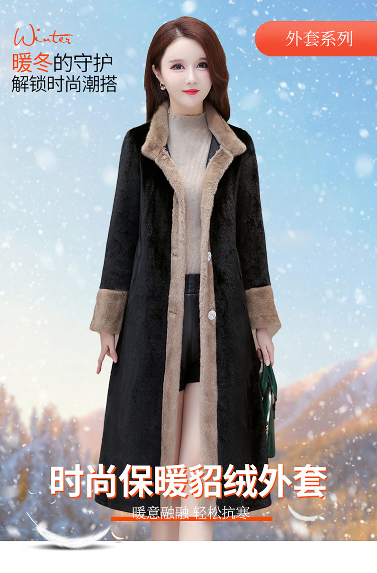 QYM-CR-YP2099-L长款加厚时尚保暖貂绒外套23年冬款长袖简约拼色修身洋气毛呢大衣