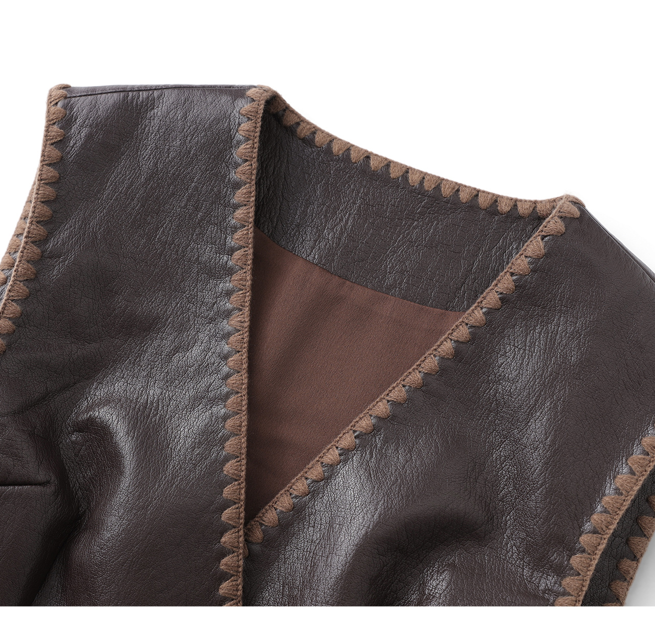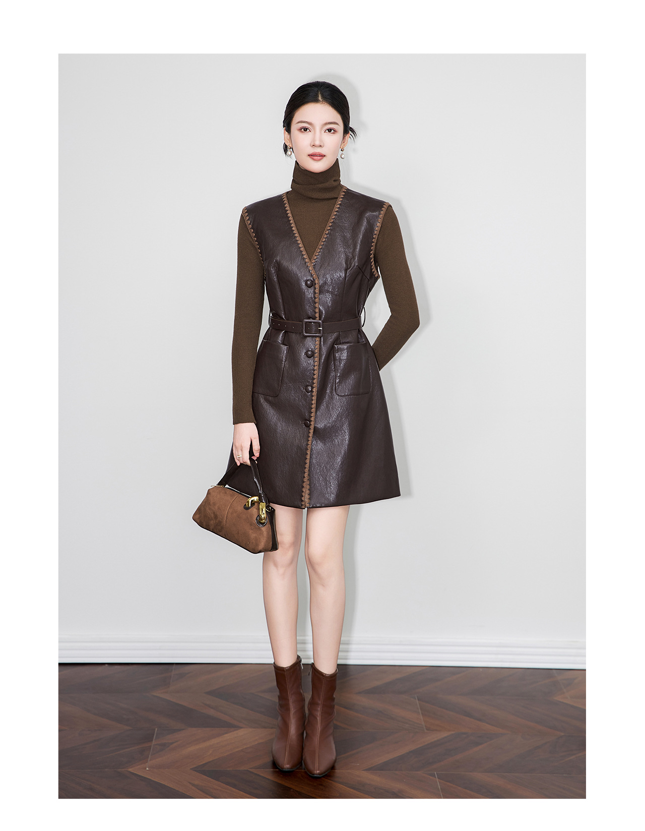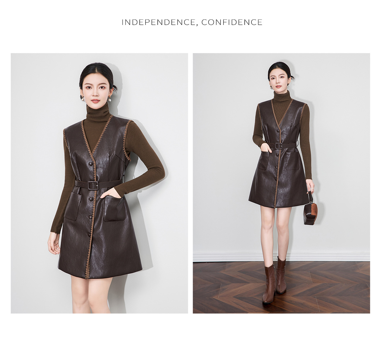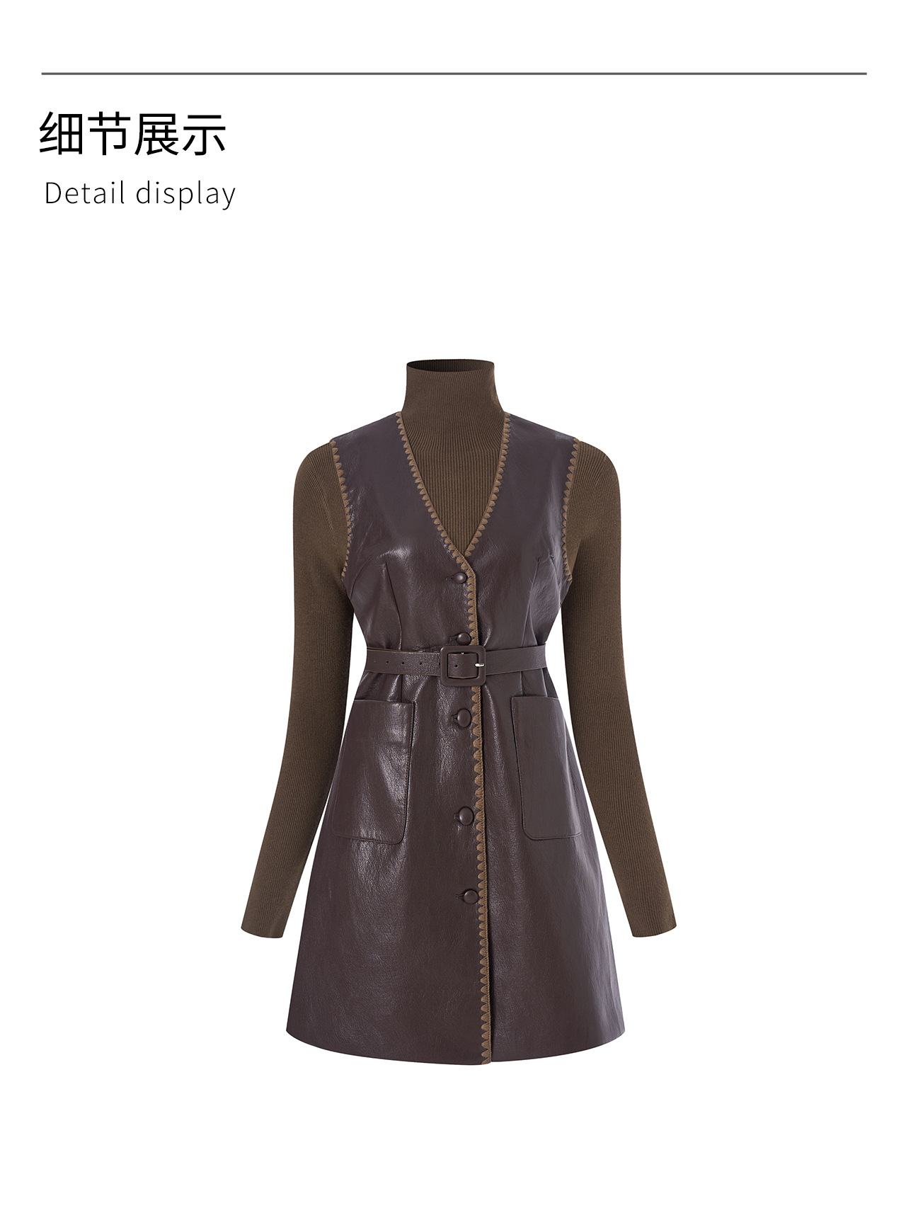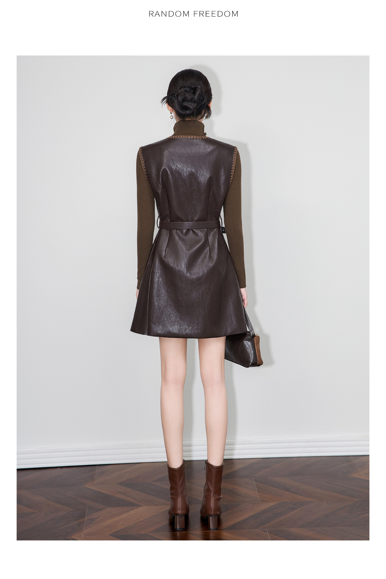「高货wl」全新升级【铂金会员413/天猫559/差价146】(95149)洛诗琳2025秋冬法式蛋白皮无袖连衣裙针织打底衫两件套