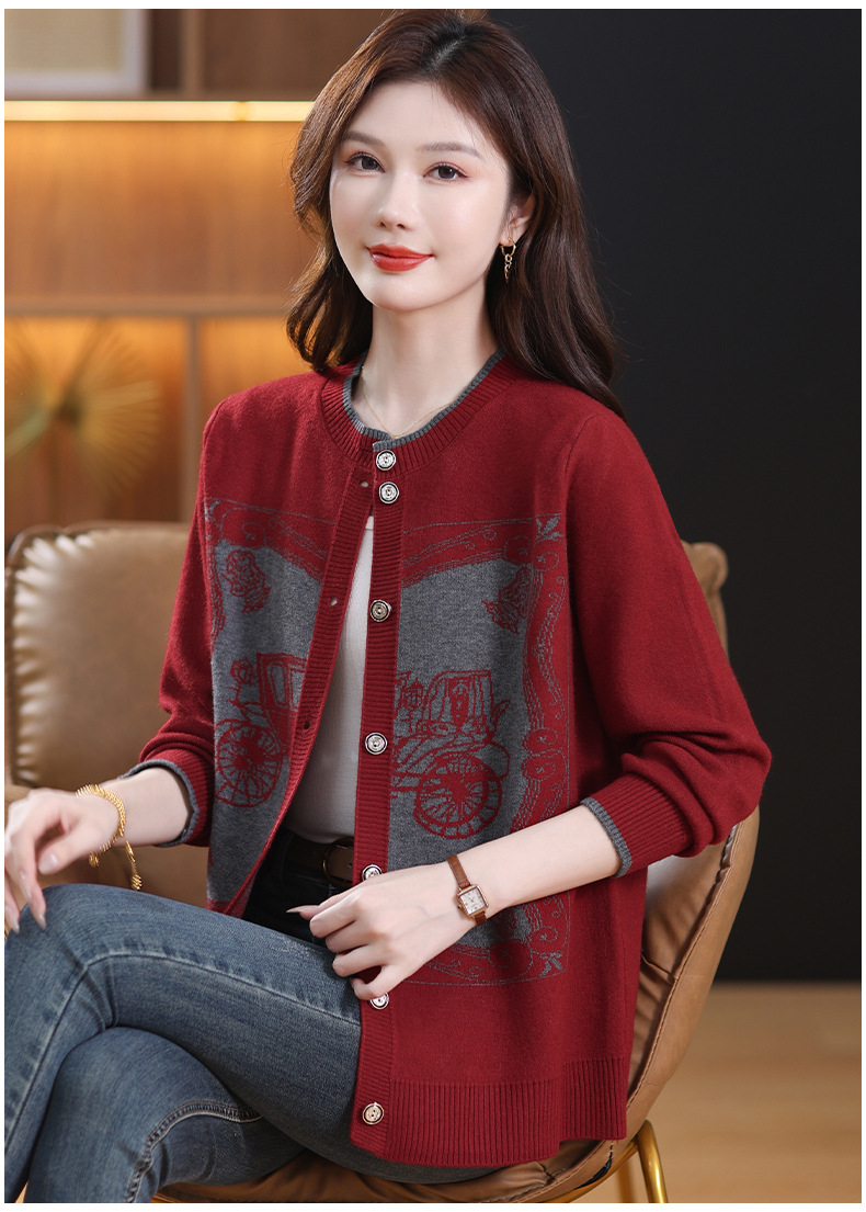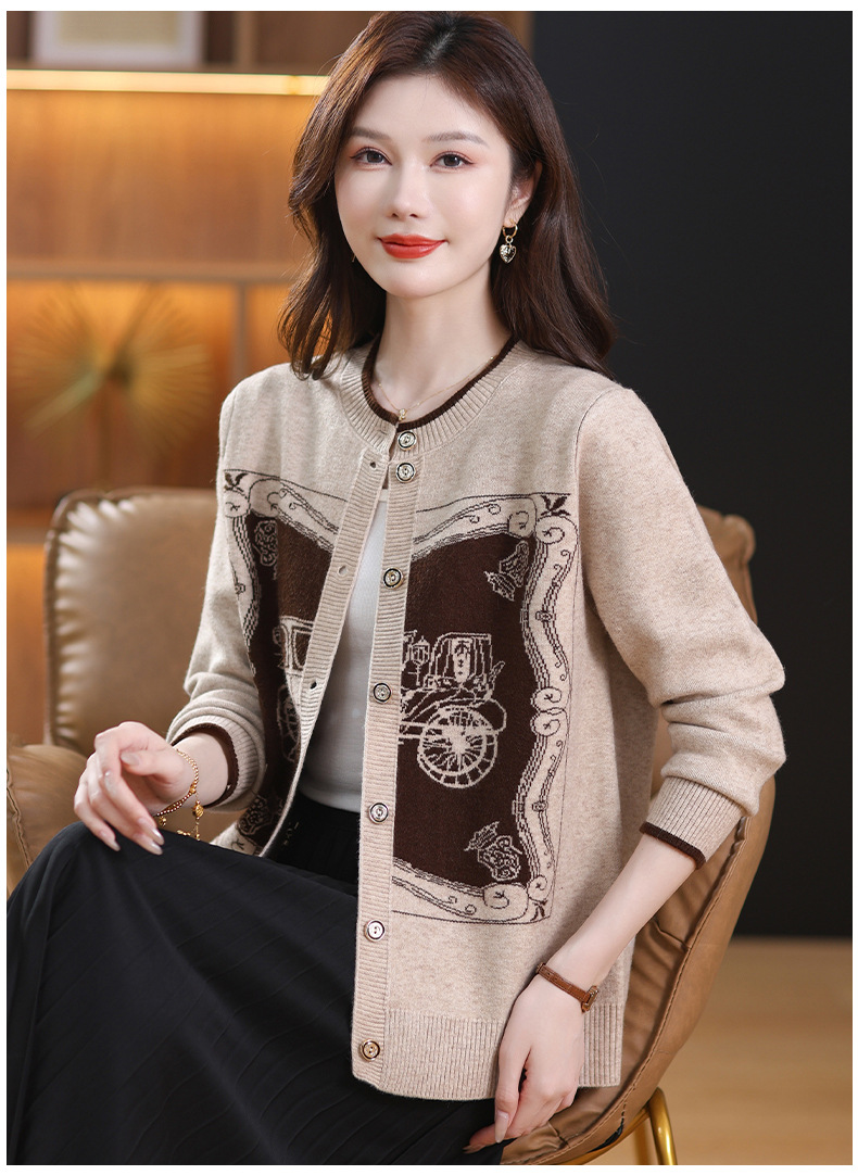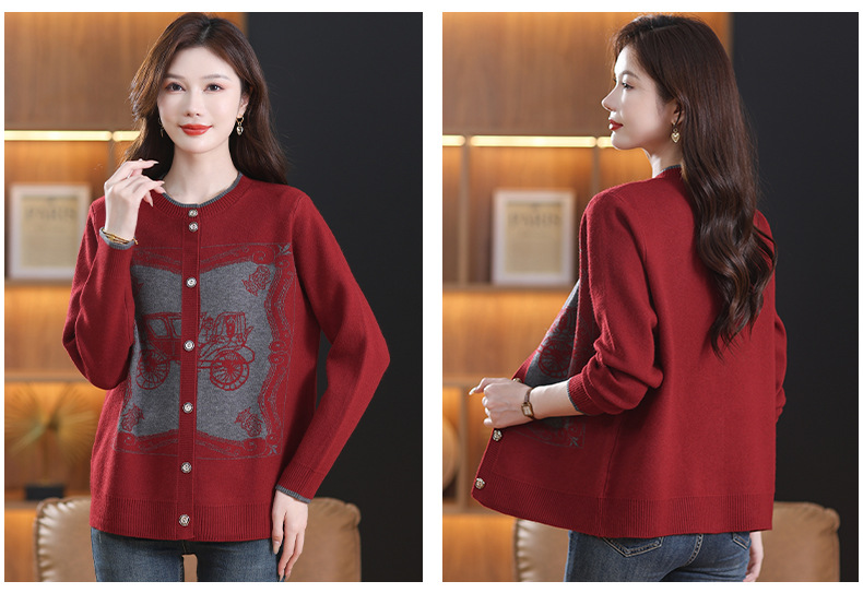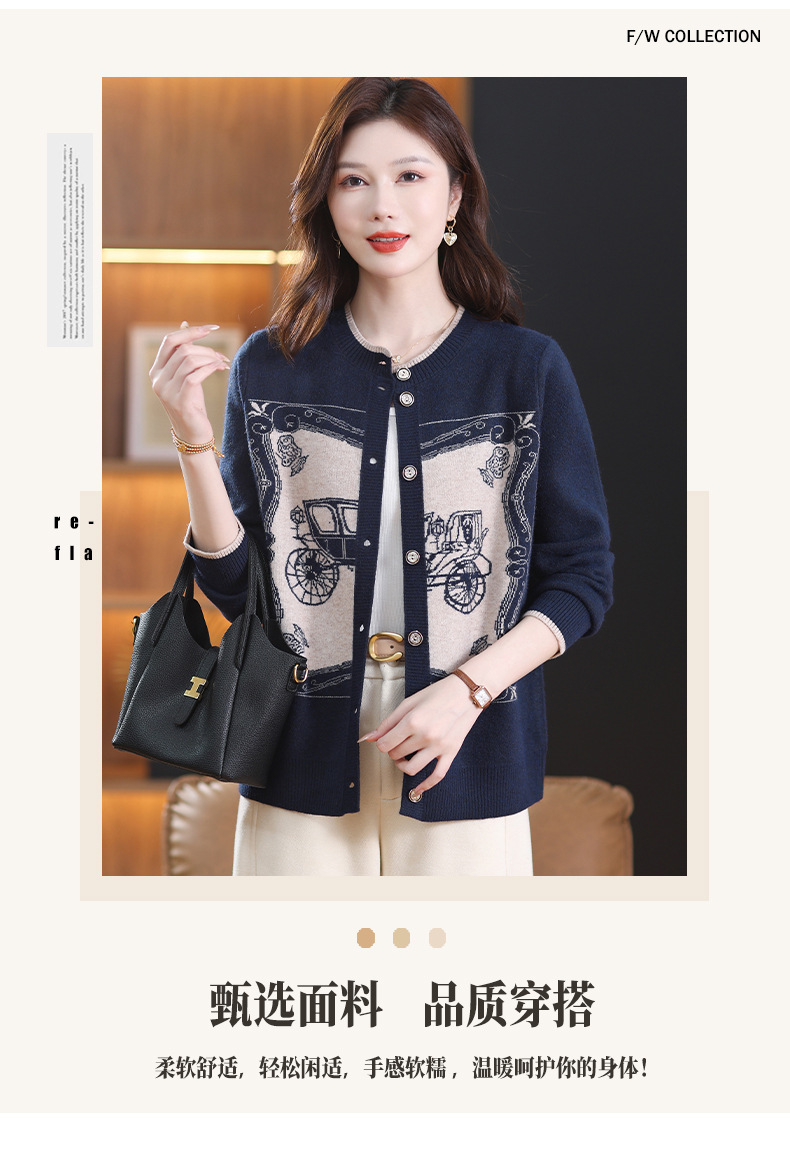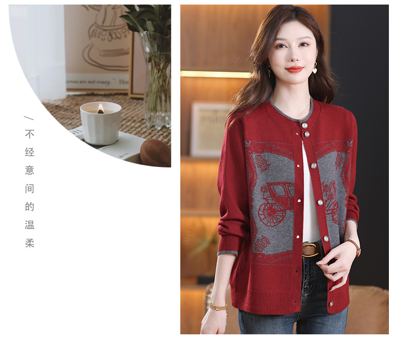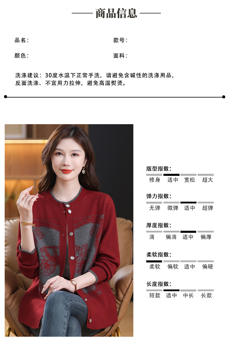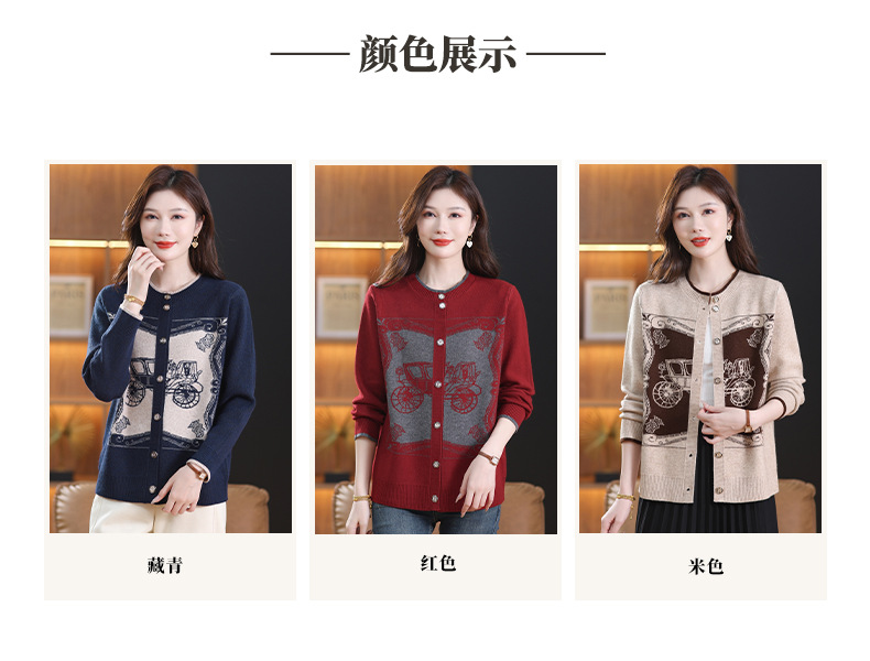 CC21-811针织开衫女士短款秋季2025新款春秋中年妈妈宽松洋气外搭毛衣外套