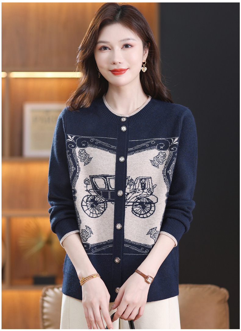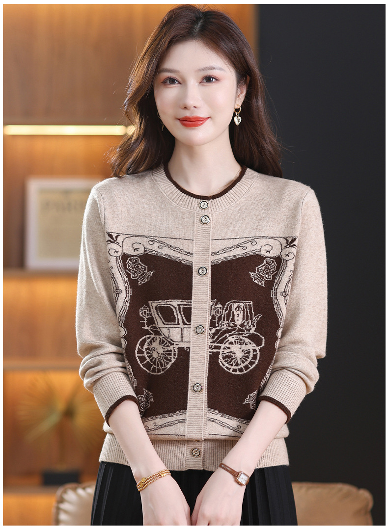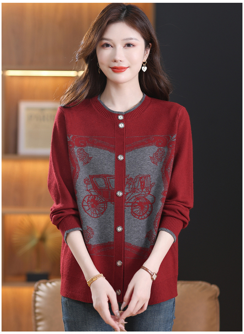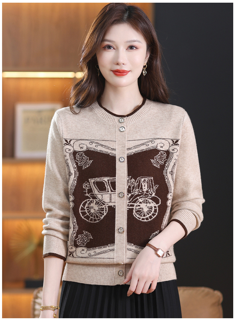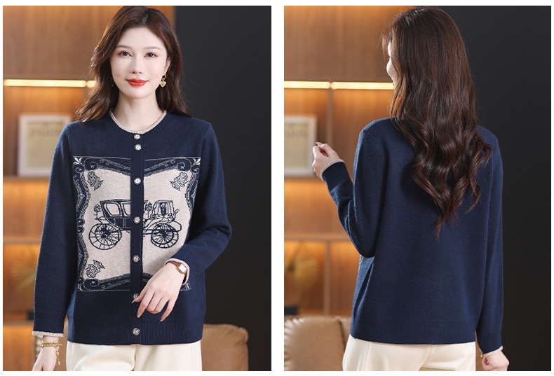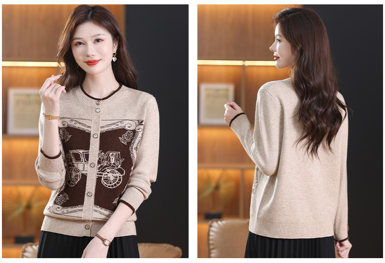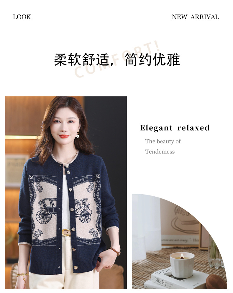 CC21-811针织开衫女士短款秋季2025新款春秋中年妈妈宽松洋气外搭毛衣外套