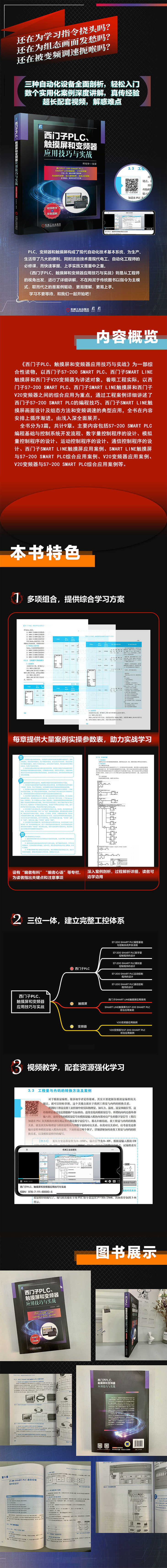 4)对西门子S7-200SMART PLC、西门子SMART LINE触摸屏和西门子V20变频器之间的综合应用,方法讲述系统,过程解析详细,便于读者模仿,可解决读者设计经验不足的难题。