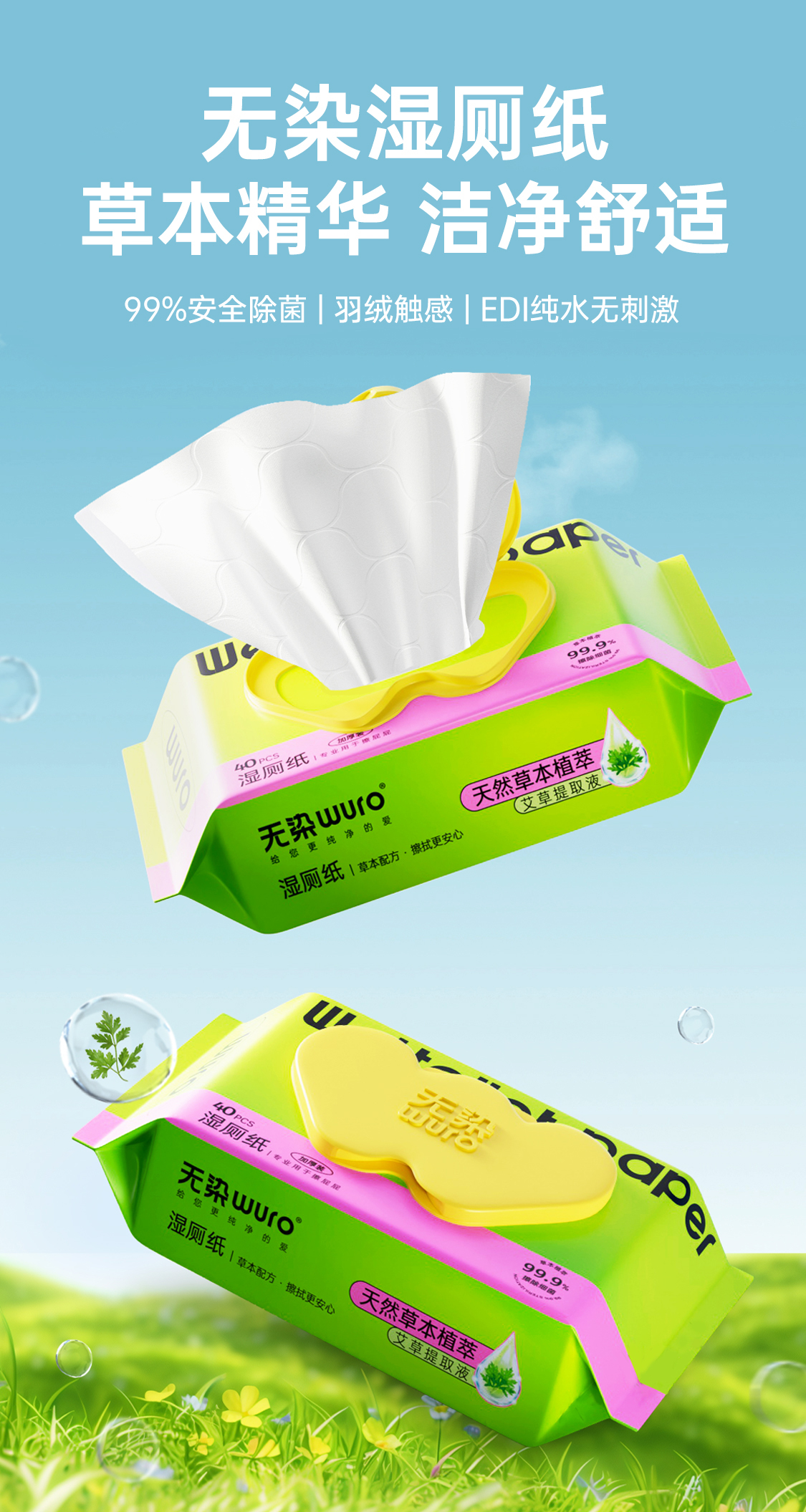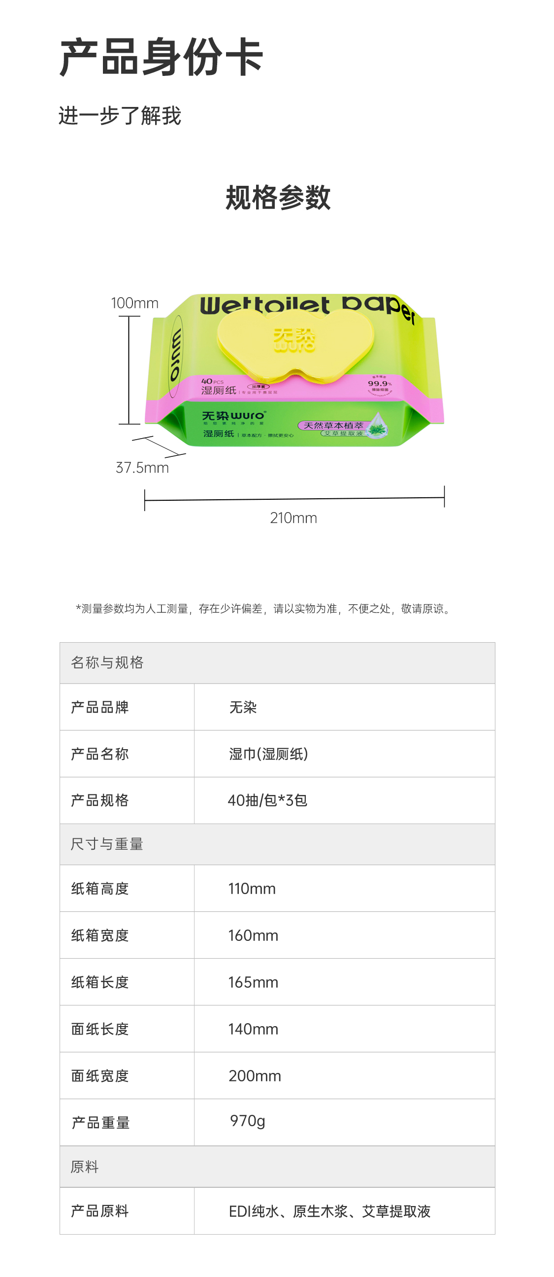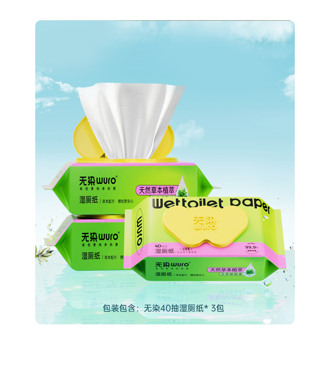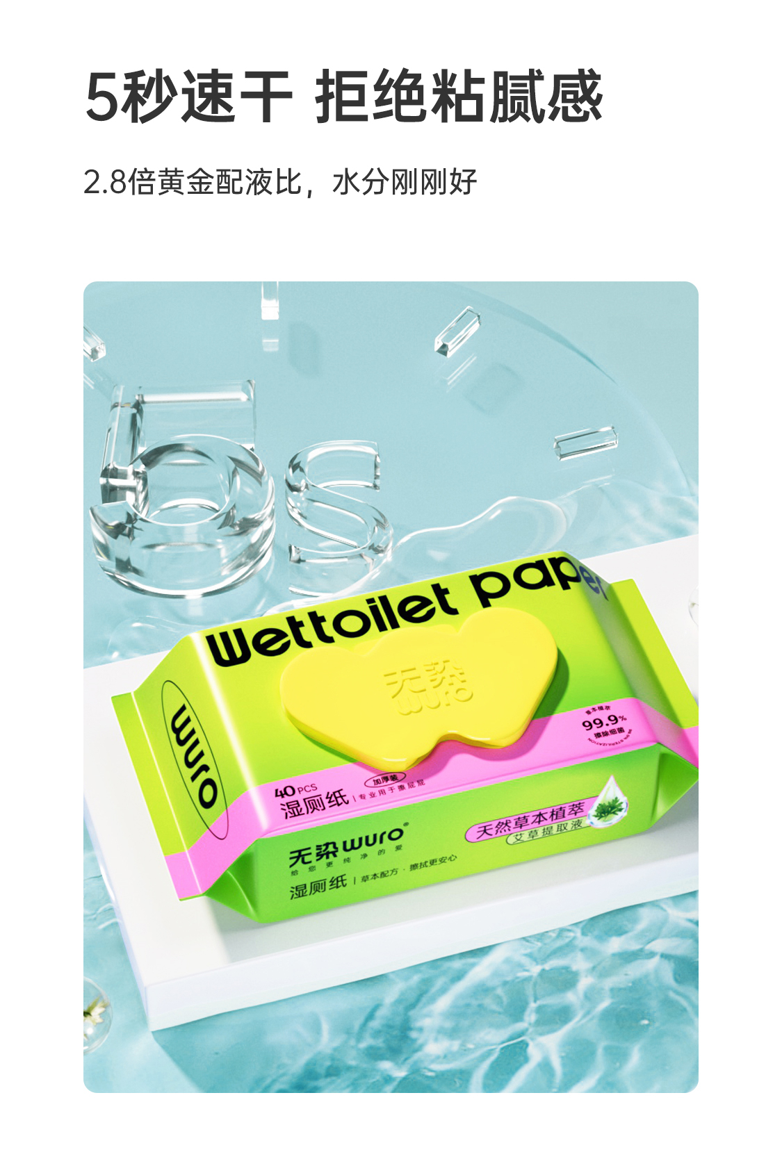 无染湿厕纸卫生湿巾可冲水40抽3包/6包