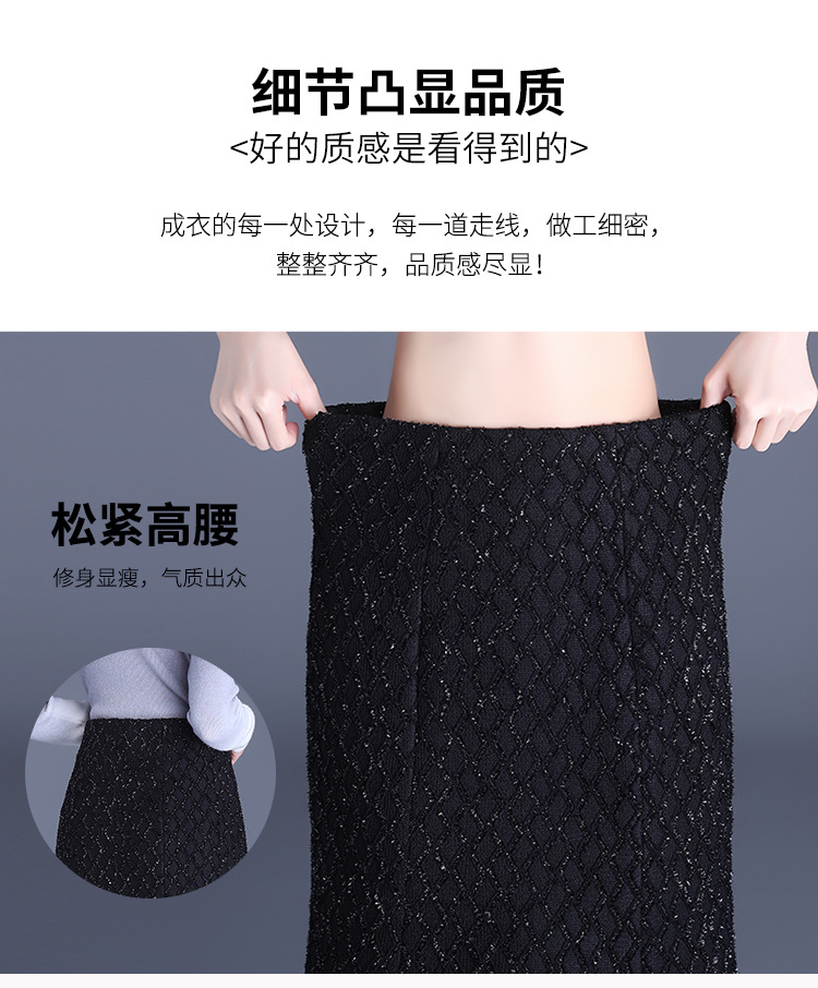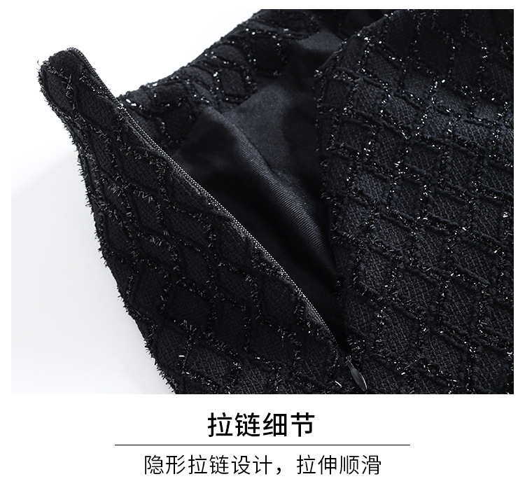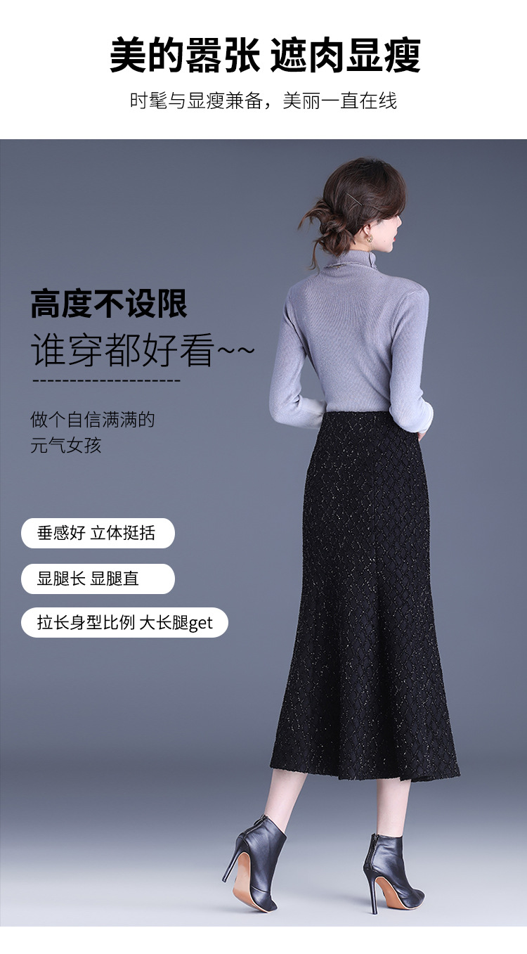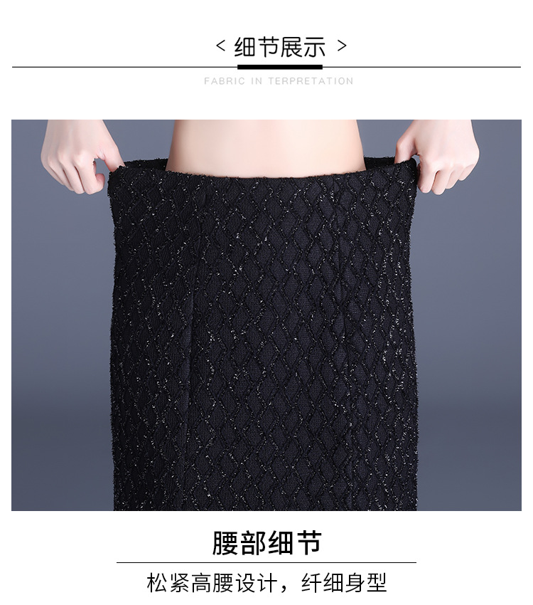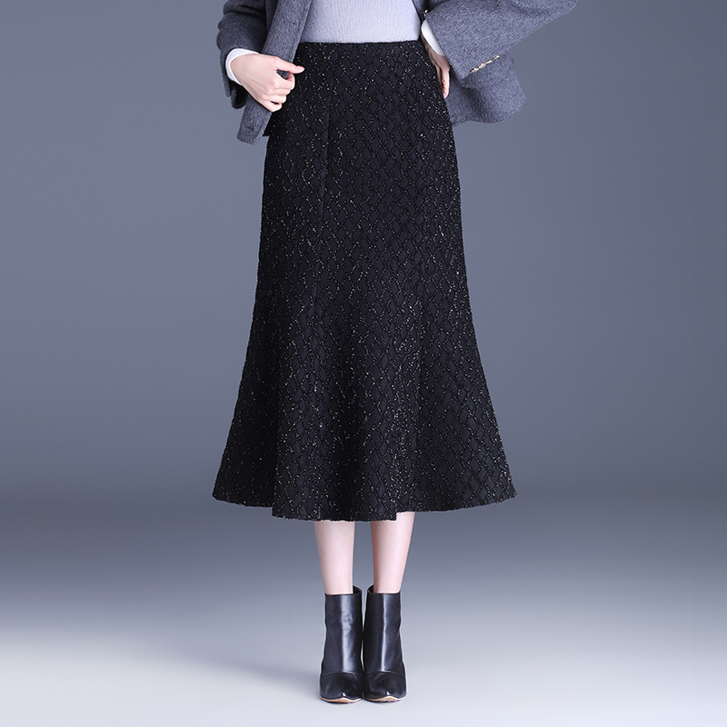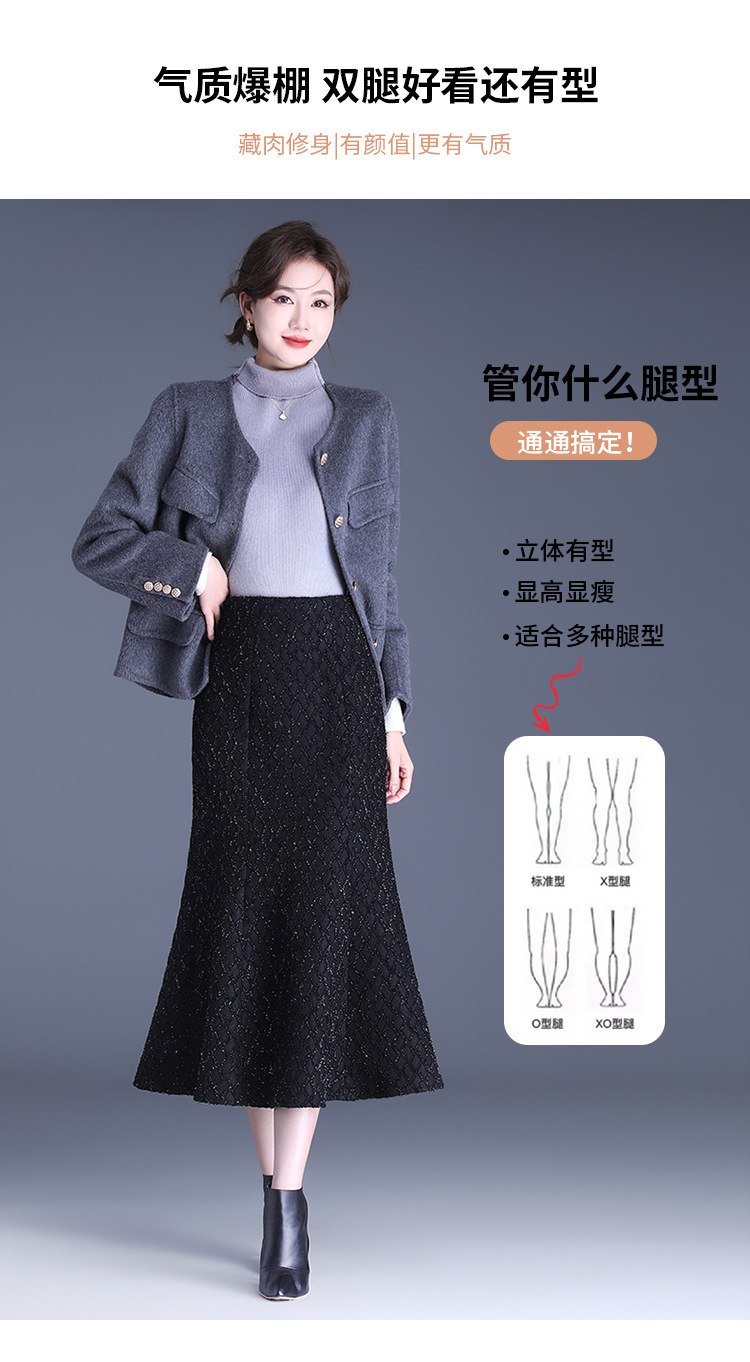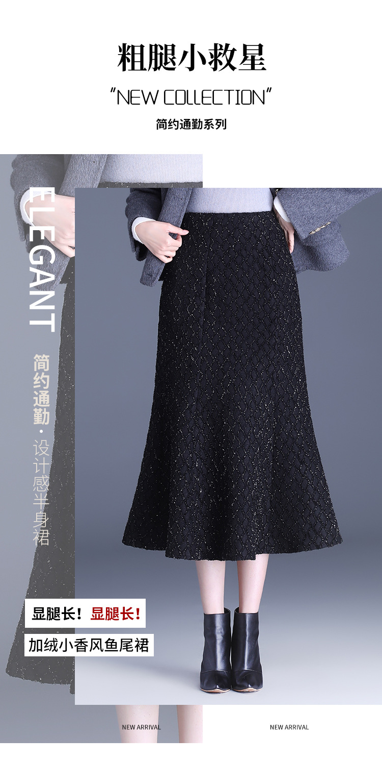 加绒小香风鱼尾裙,亮丝格纹中长款厚款半身裙MYX-MTYR-2386-Y
