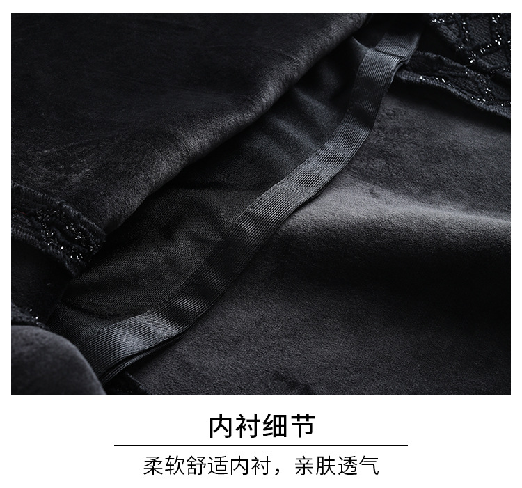 韩国绒印花长款修身长袖旗袍,复古中国风中老年女士旗袍SYK179402