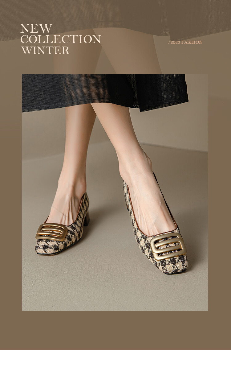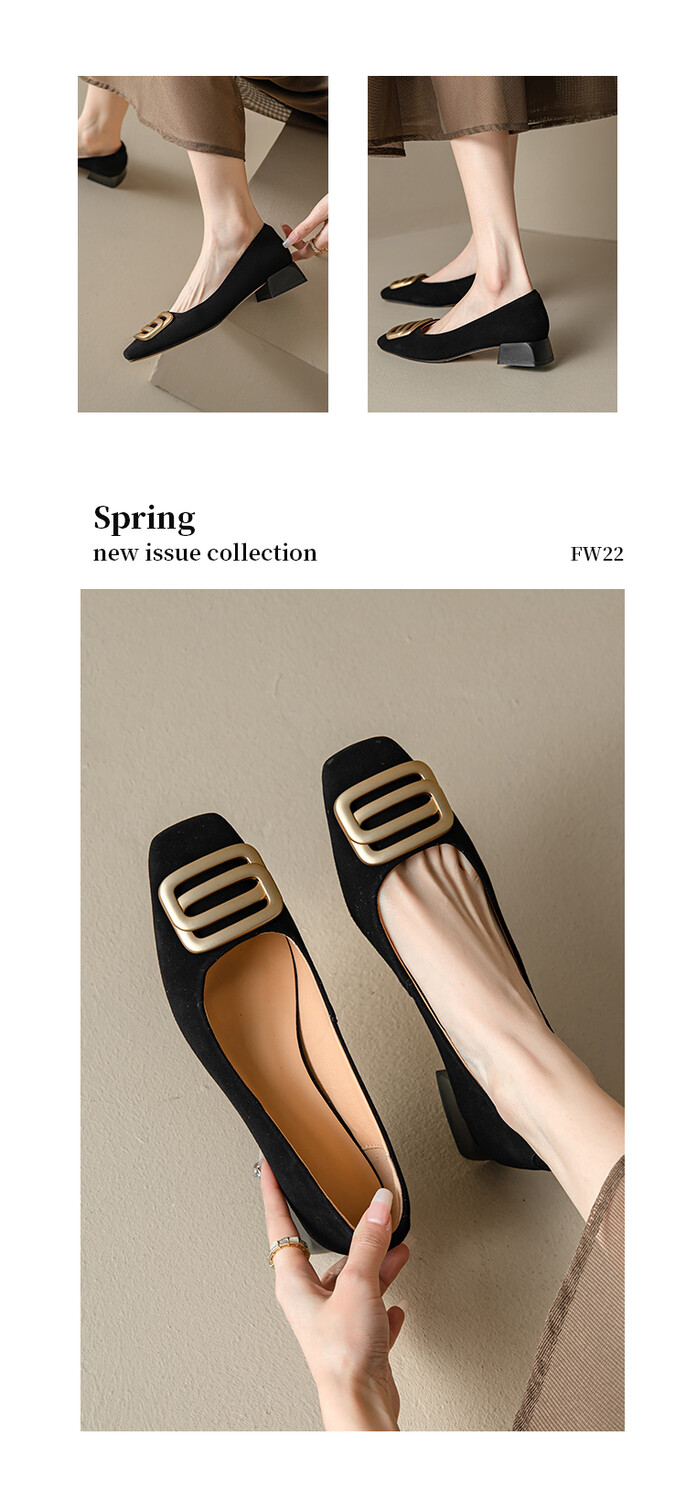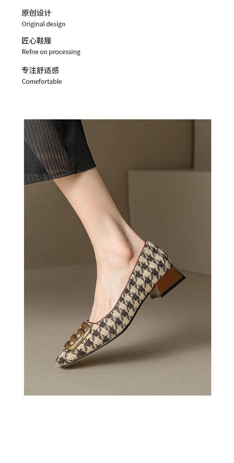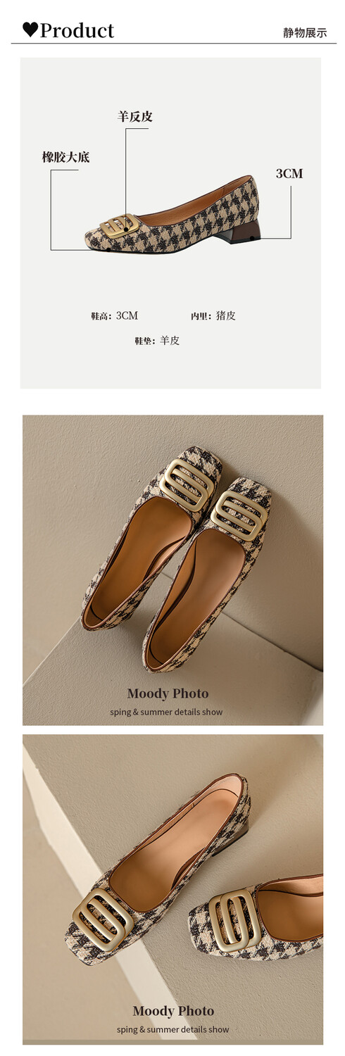 【预售5天】法式复古小香风单鞋女新款夏浅口方头舒适中跟粗跟高跟鞋MM&6015