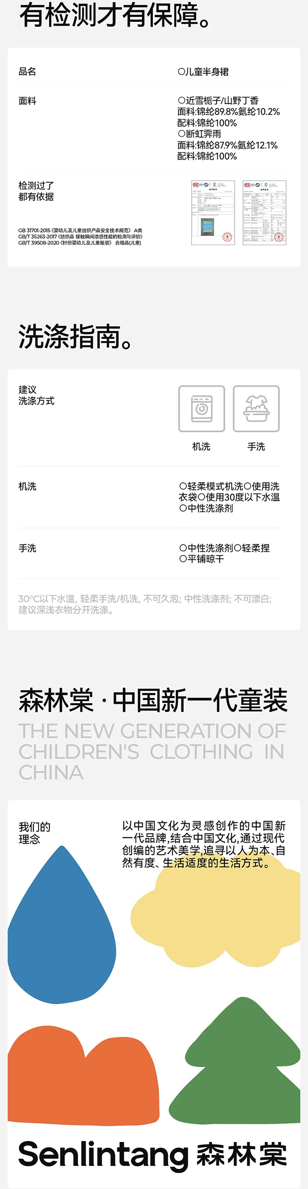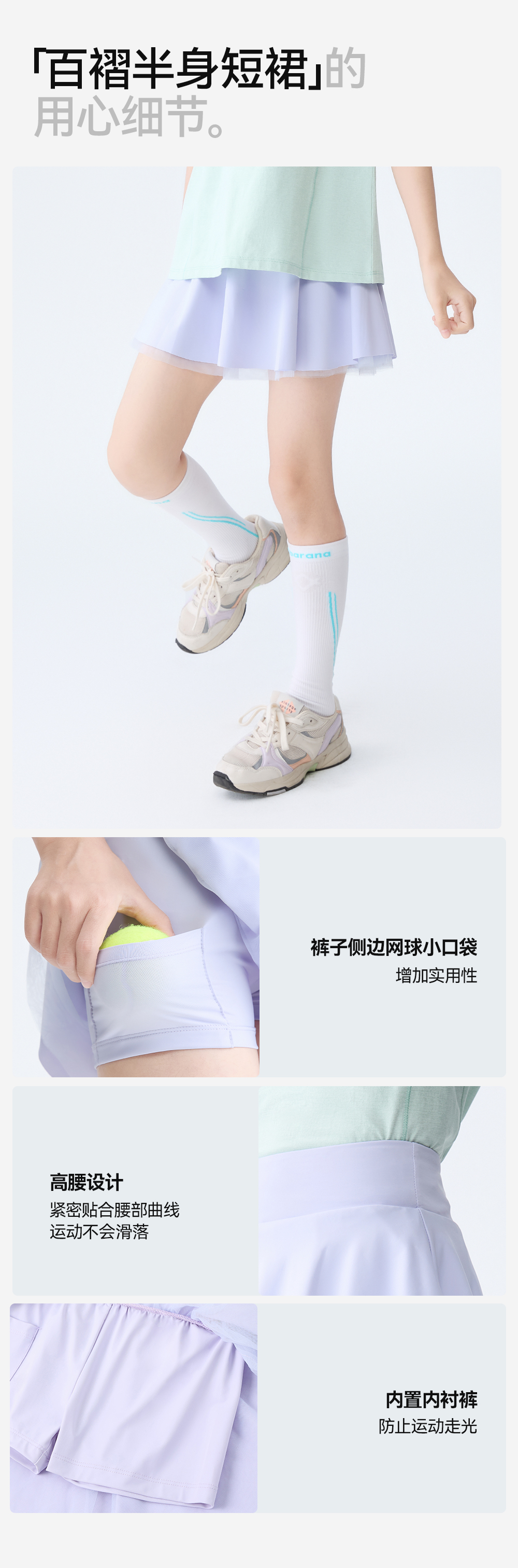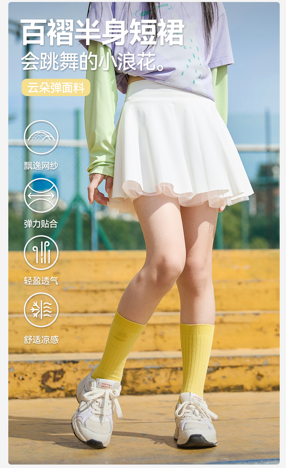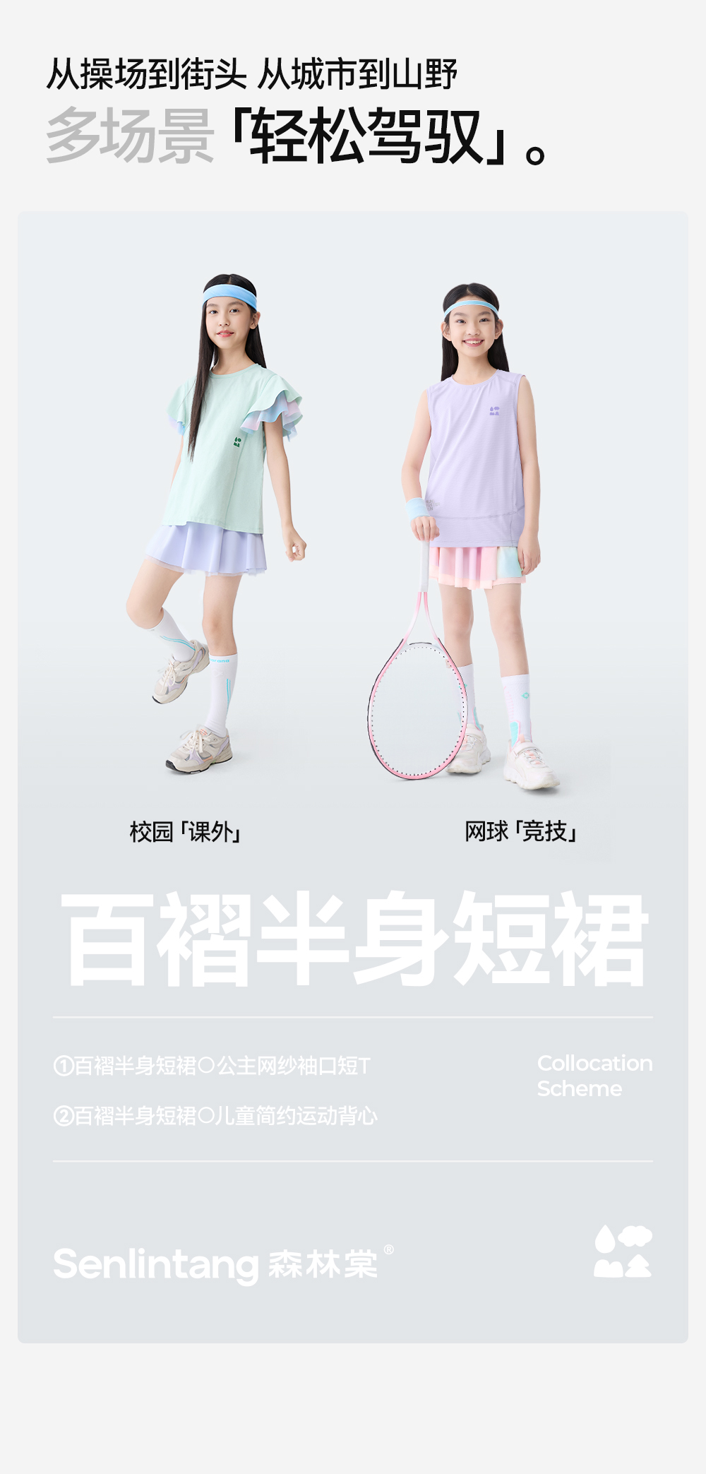 【百褶半身短裙】森林棠26夏款女童防走光内衬运动半身裙A字裙41122407