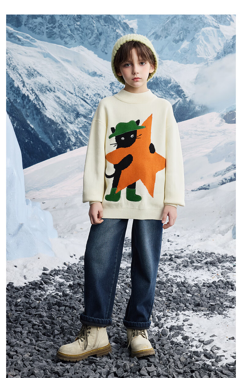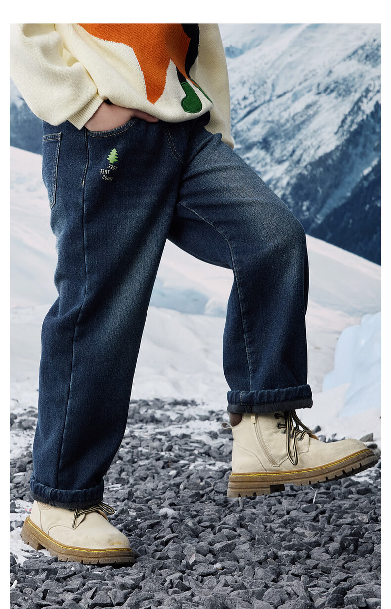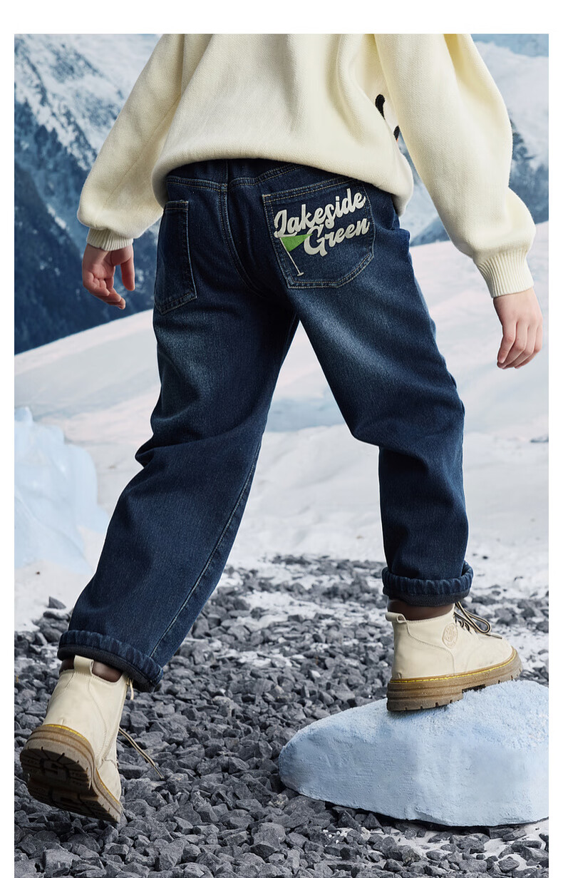 【MQD】冬季男大童学院风潮酷休闲百搭加绒牛仔裤