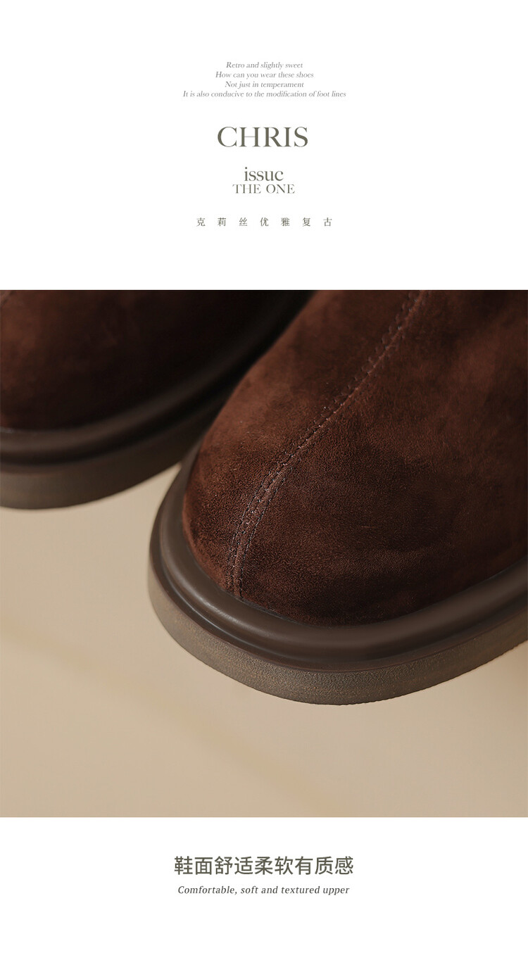 【预售5天】巨软法式复古羊皮乐福鞋女粗中跟一脚蹬通勤百搭单鞋山茶花小皮鞋SY&8710