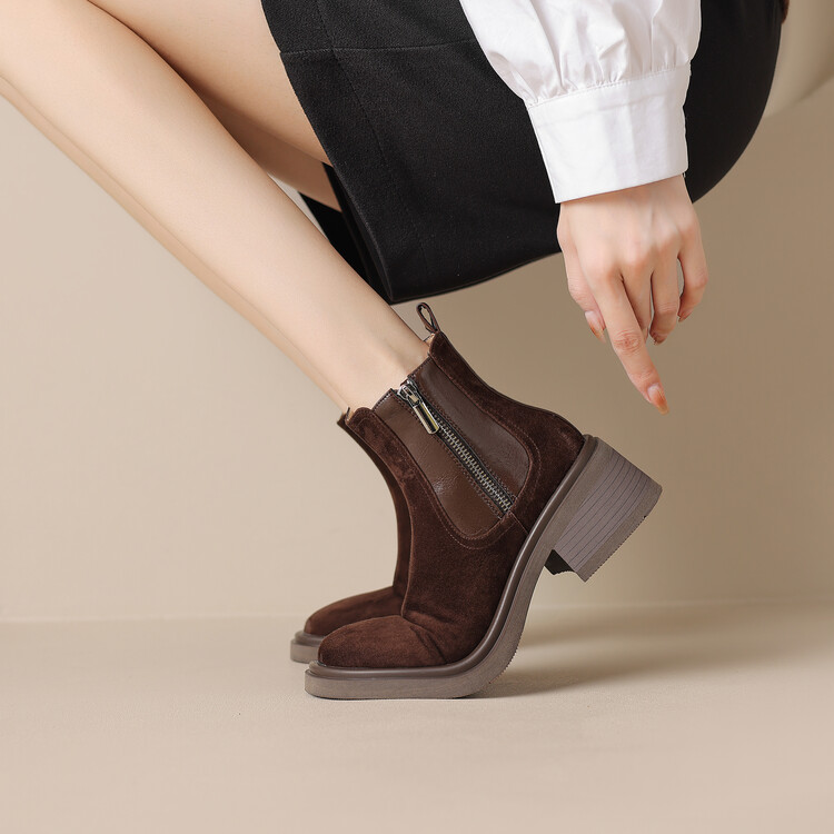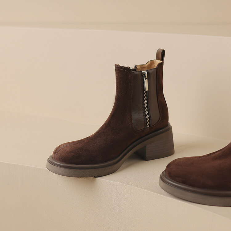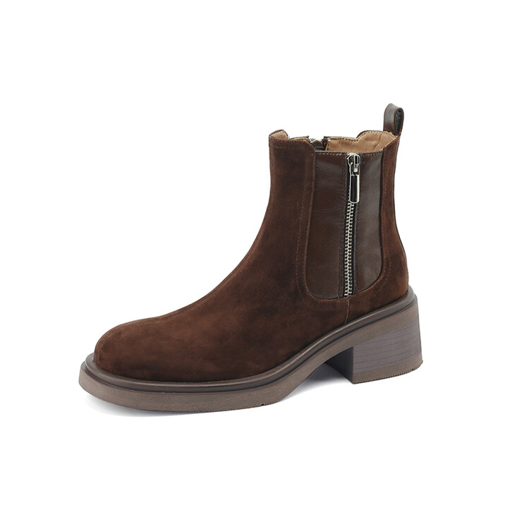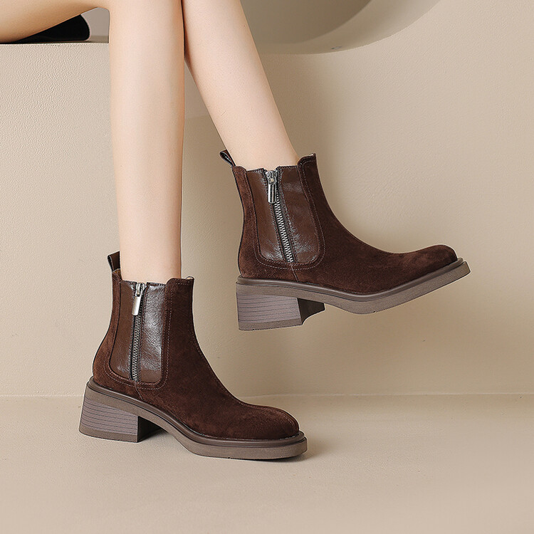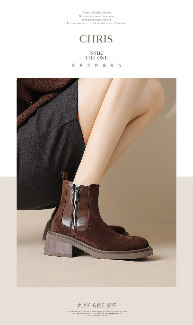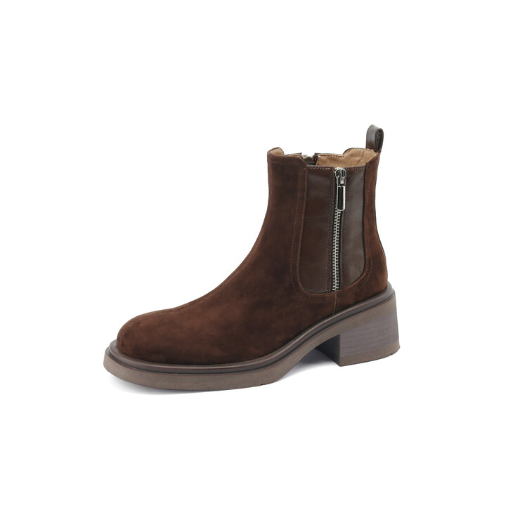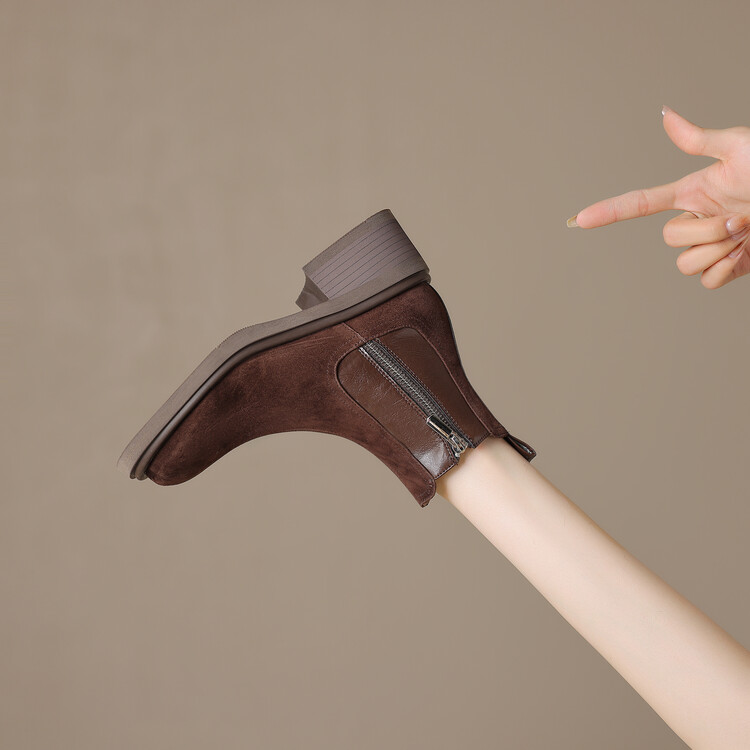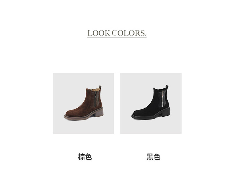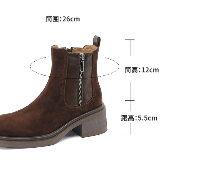 舒适百搭,里外全皮美拉德色系粗跟短靴WC-M7543