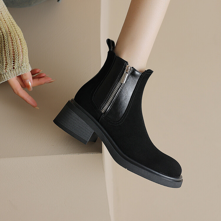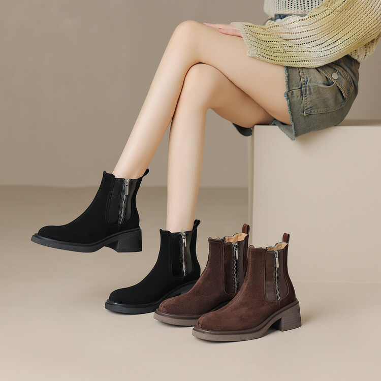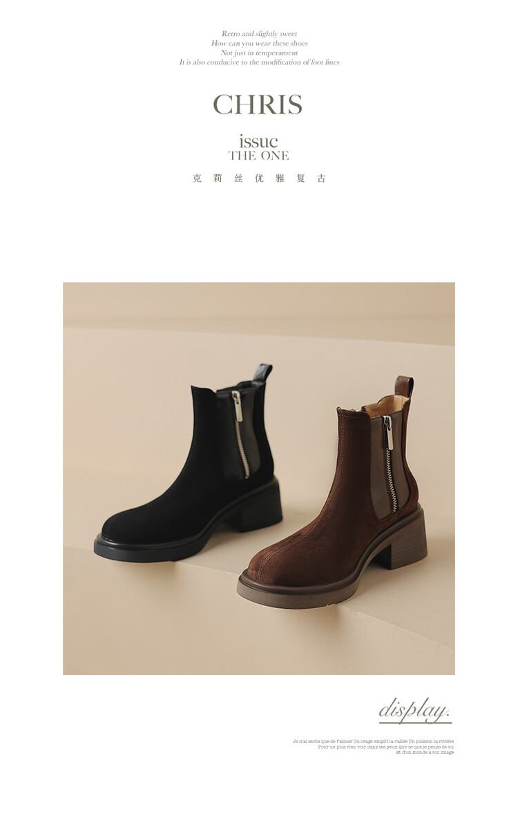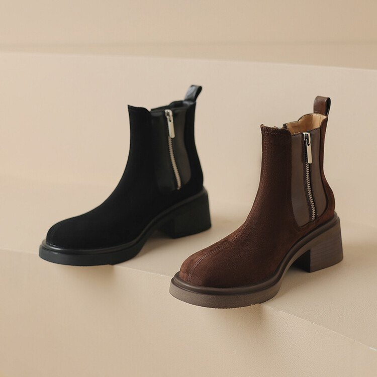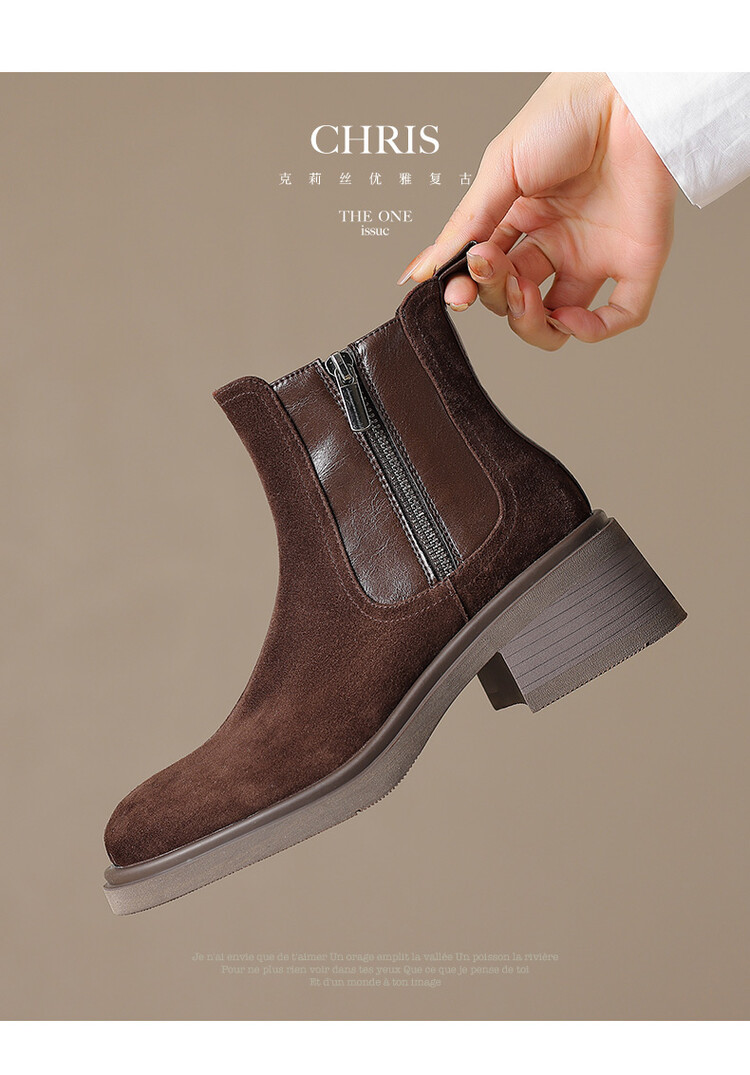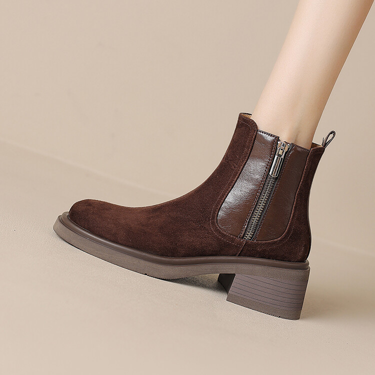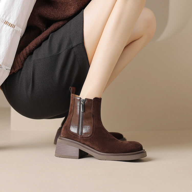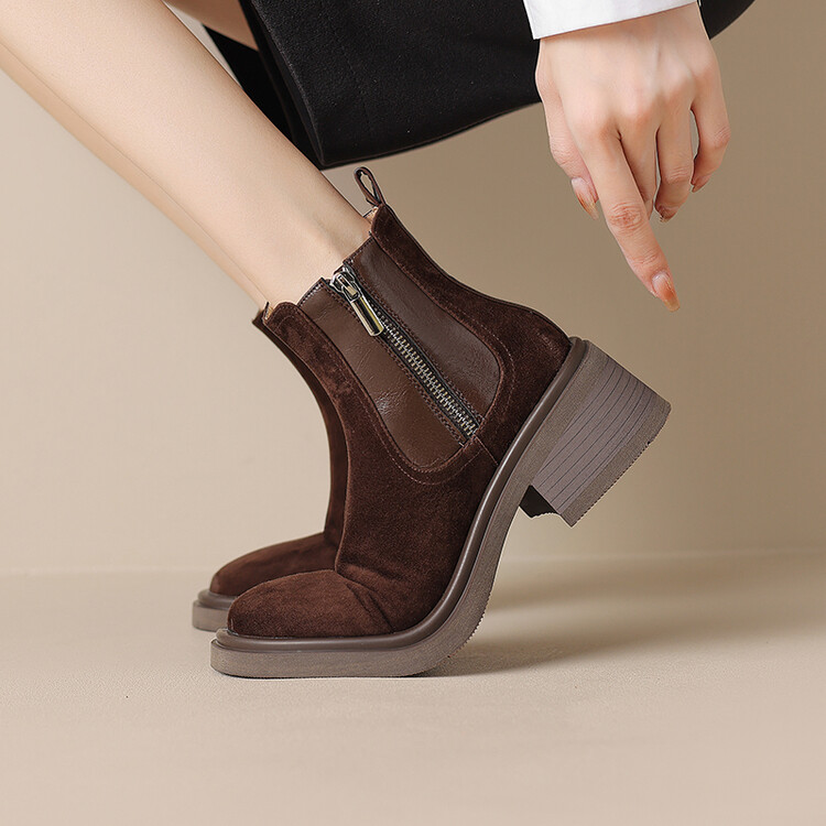 舒适百搭,里外全皮美拉德色系粗跟短靴WC-M7543