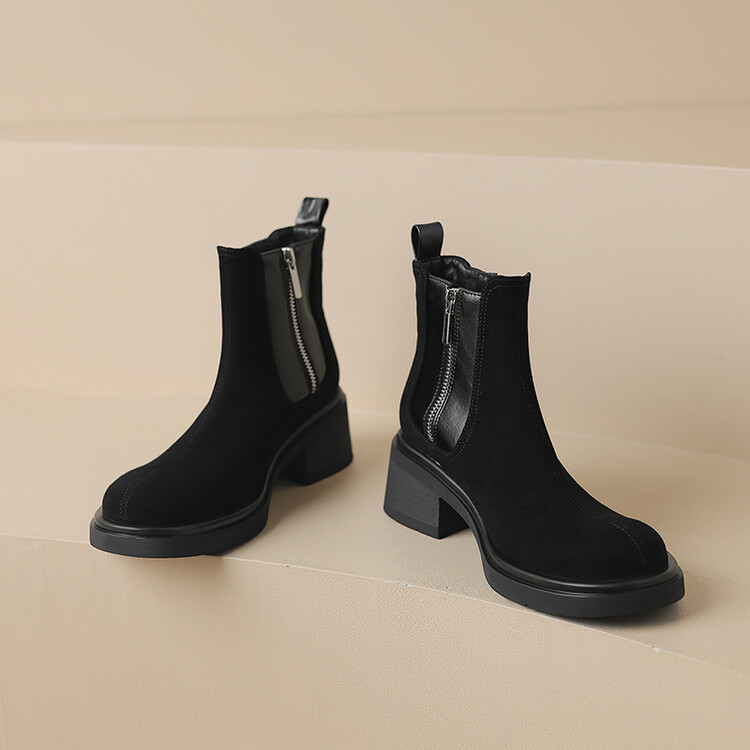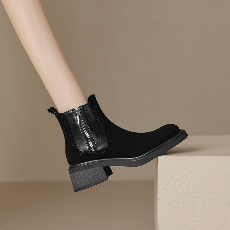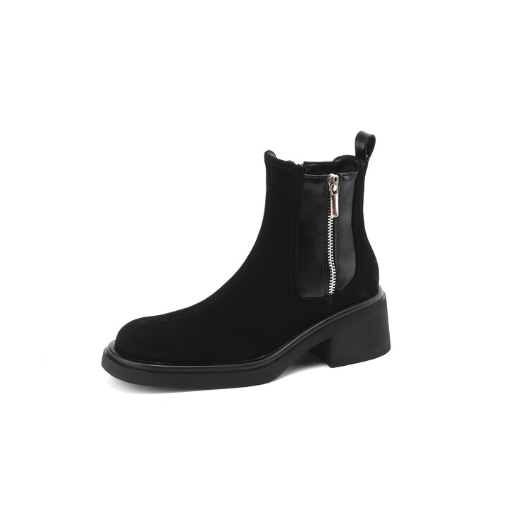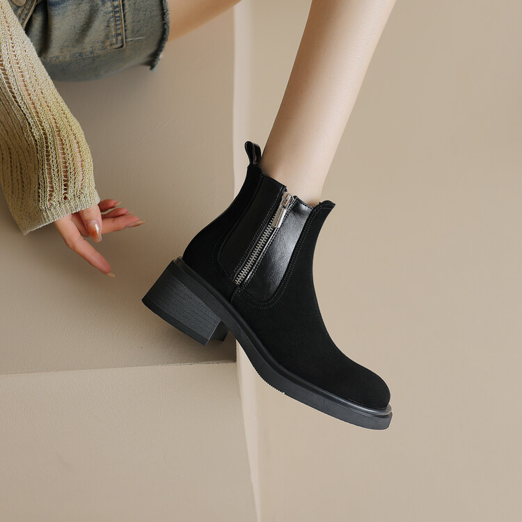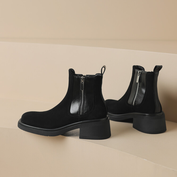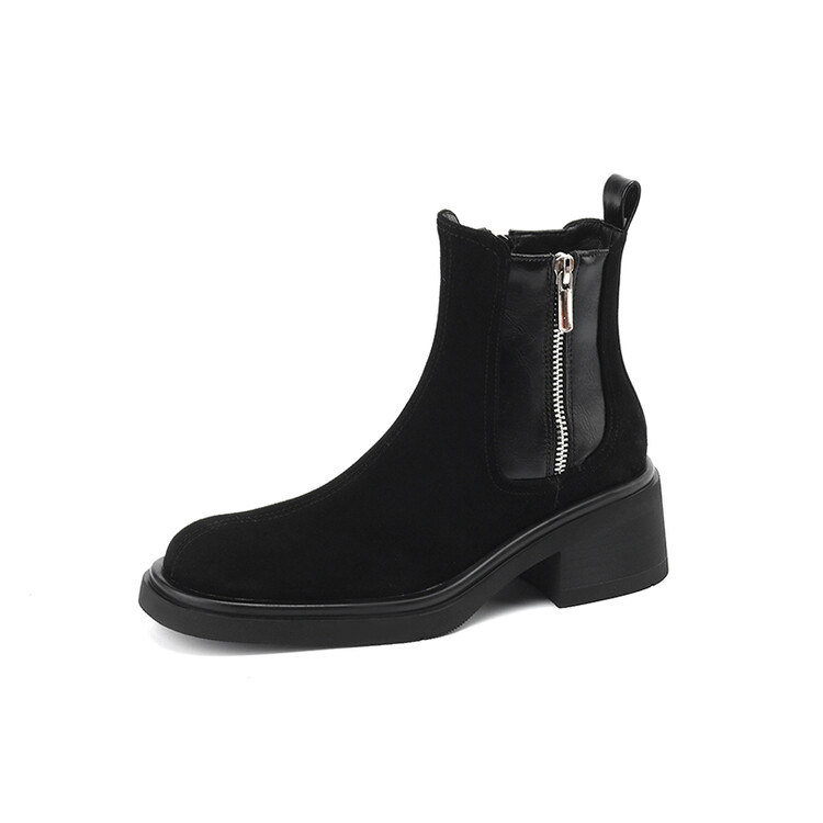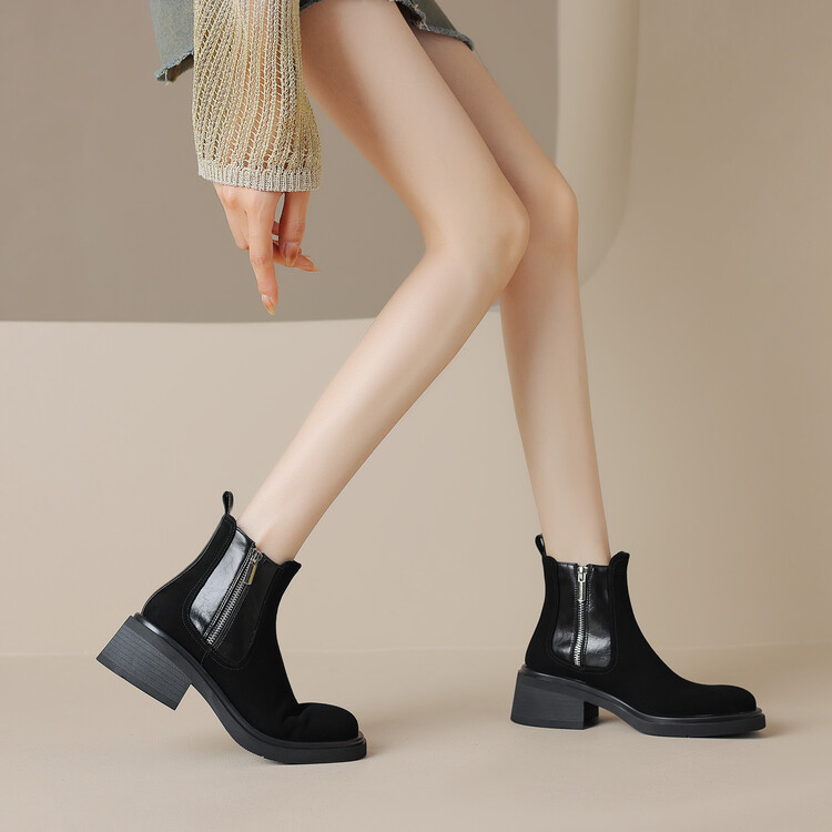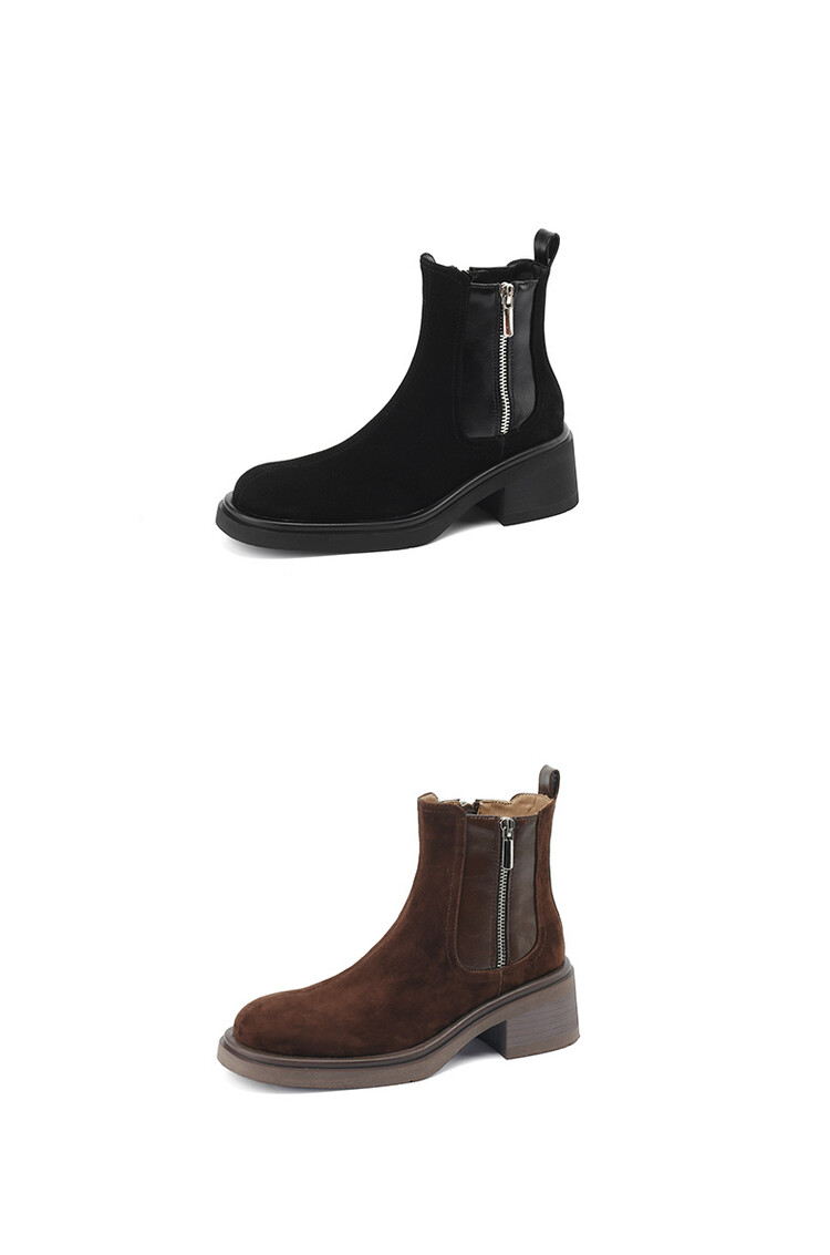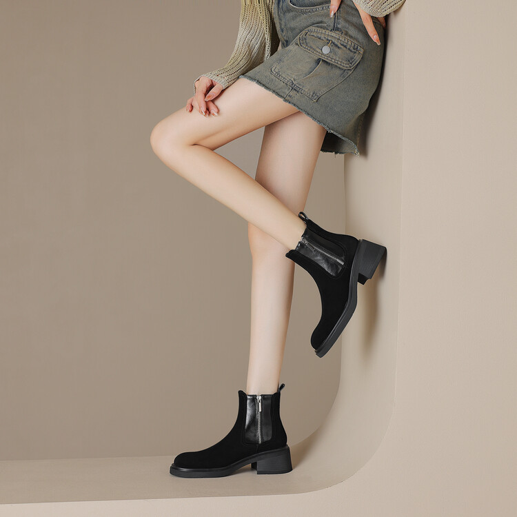 舒适百搭,里外全皮美拉德色系粗跟短靴WC-M7543