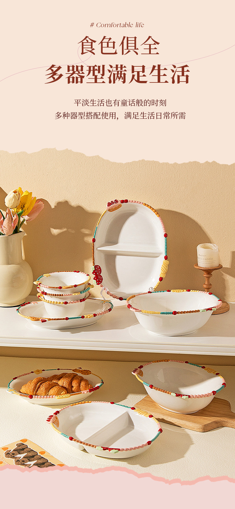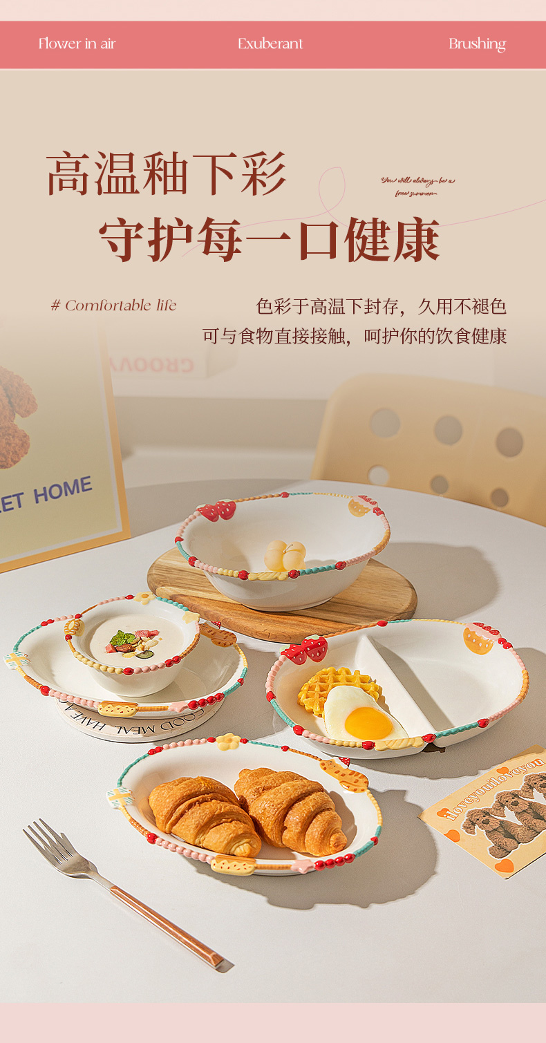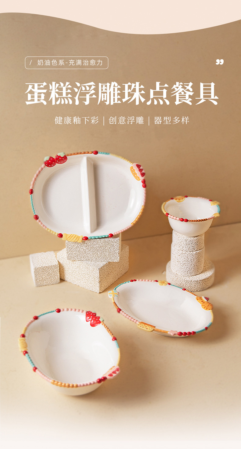 摩登主妇浮雕珠点饭碗家用2025新款高颜值餐具碗具汤碗盘子酸奶碗