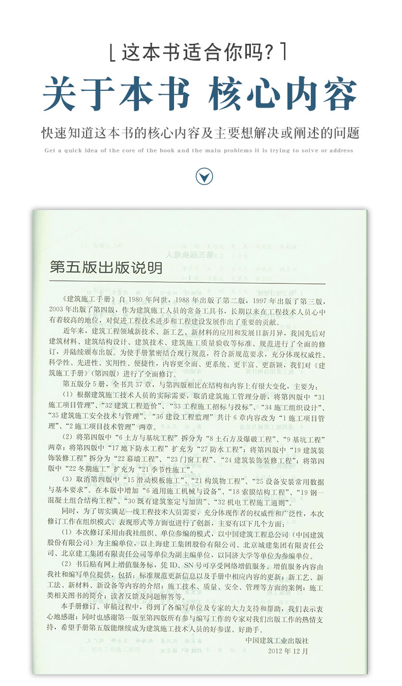近年来,我国先后对建筑材料、建筑结构设计、建筑技术、建筑施工质量验收等标准、规范进行了全面的修订、并新颁布了多项规范和标准,本书修订紧密结合现行规范,符合新规范要求;对近年来发展较快的施工技术内容作了大量的补充,反映了住房和城乡建设部重点推广的新材料、新技术、新工艺、充分体现权威性、科学性、先进性、实用性、便捷性,内容更全面、更系统、更丰富、更新颖、是建筑施工技术人员的好参谋、好助手。