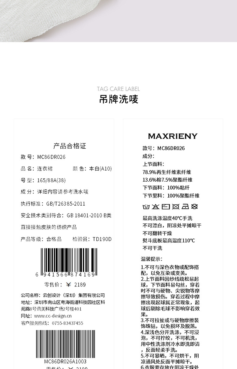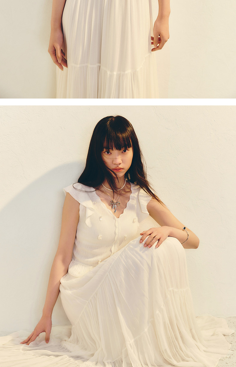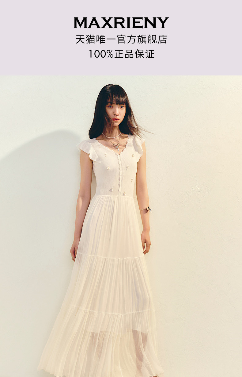 【商场同款】MAXRIENY优雅度假风收腰散摆连衣裙甜美长裙小白裙夏(货号:MC86DR026)